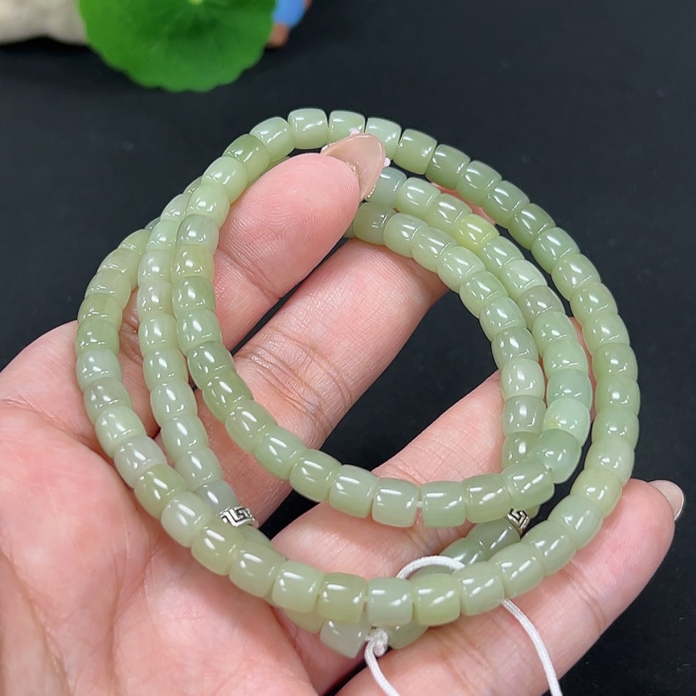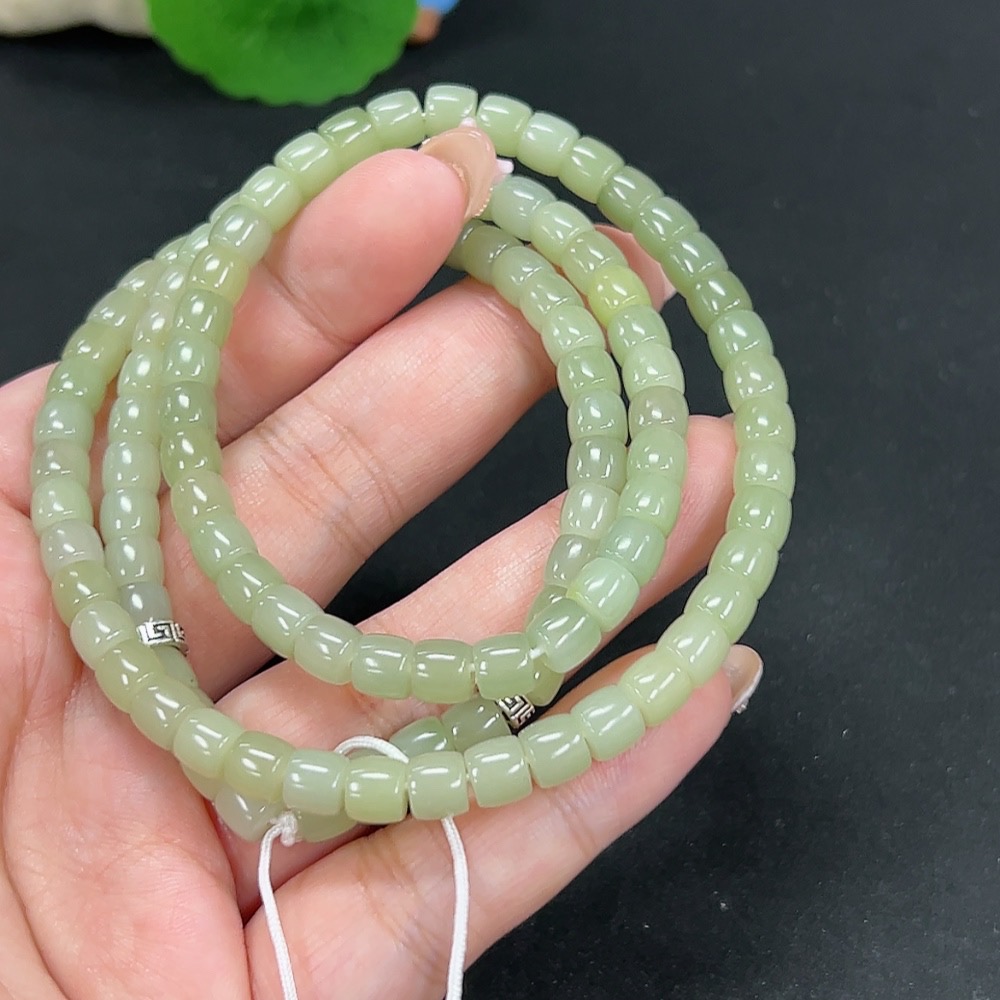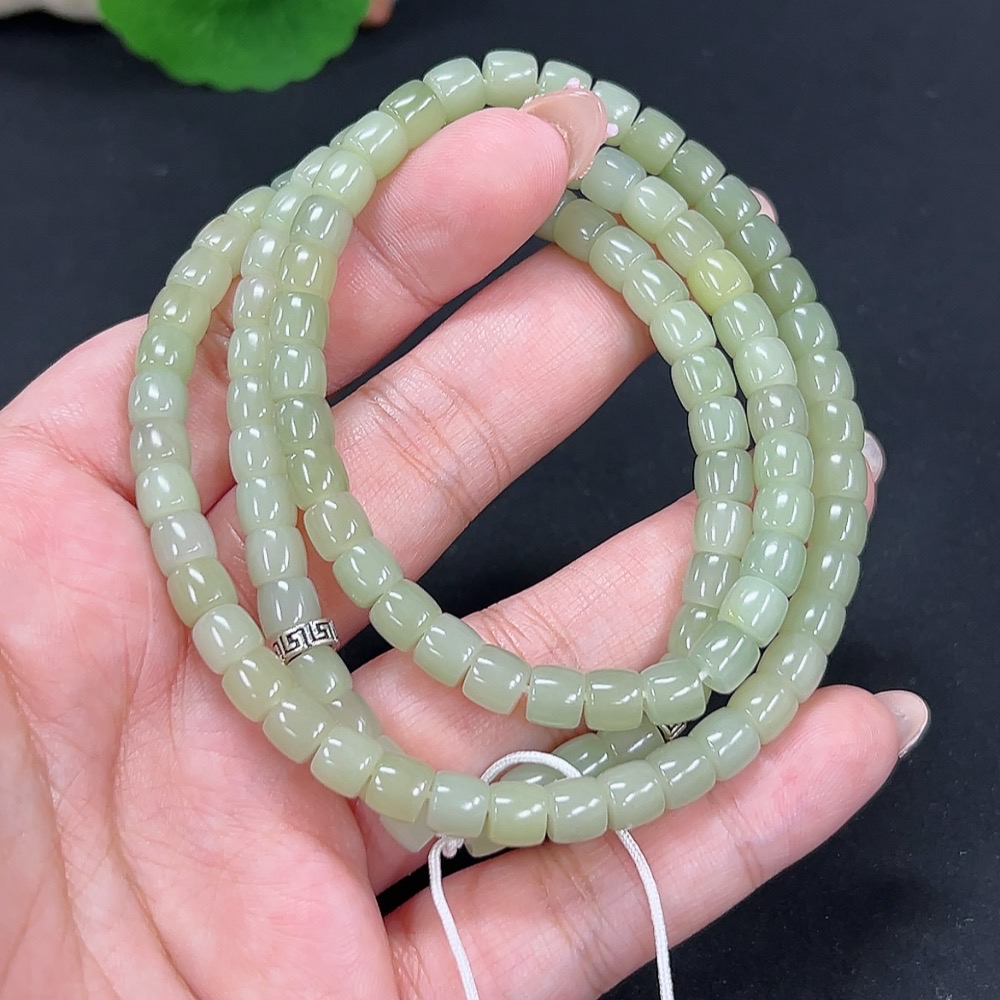 Hetian Jade Bead Necklace Approx. 5.9mm Total Weight About 43.6g Non-Gold