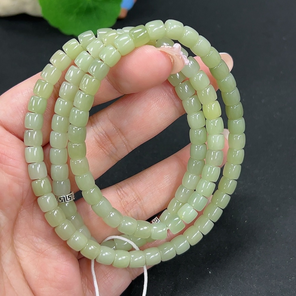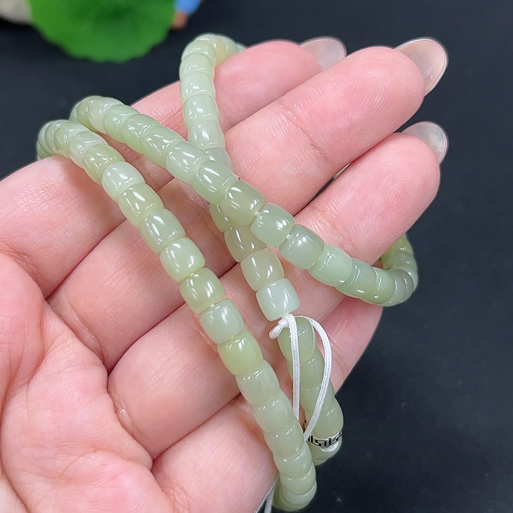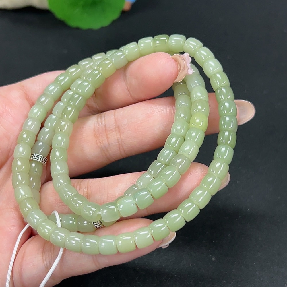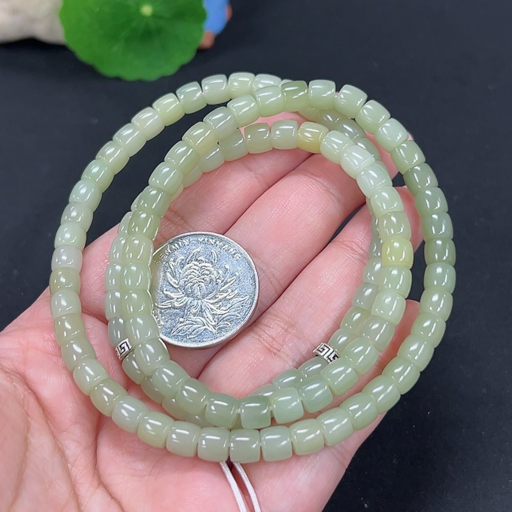 Hetian Jade Bead Necklace Approx. 5.9mm Total Weight About 43.6g Non-Gold