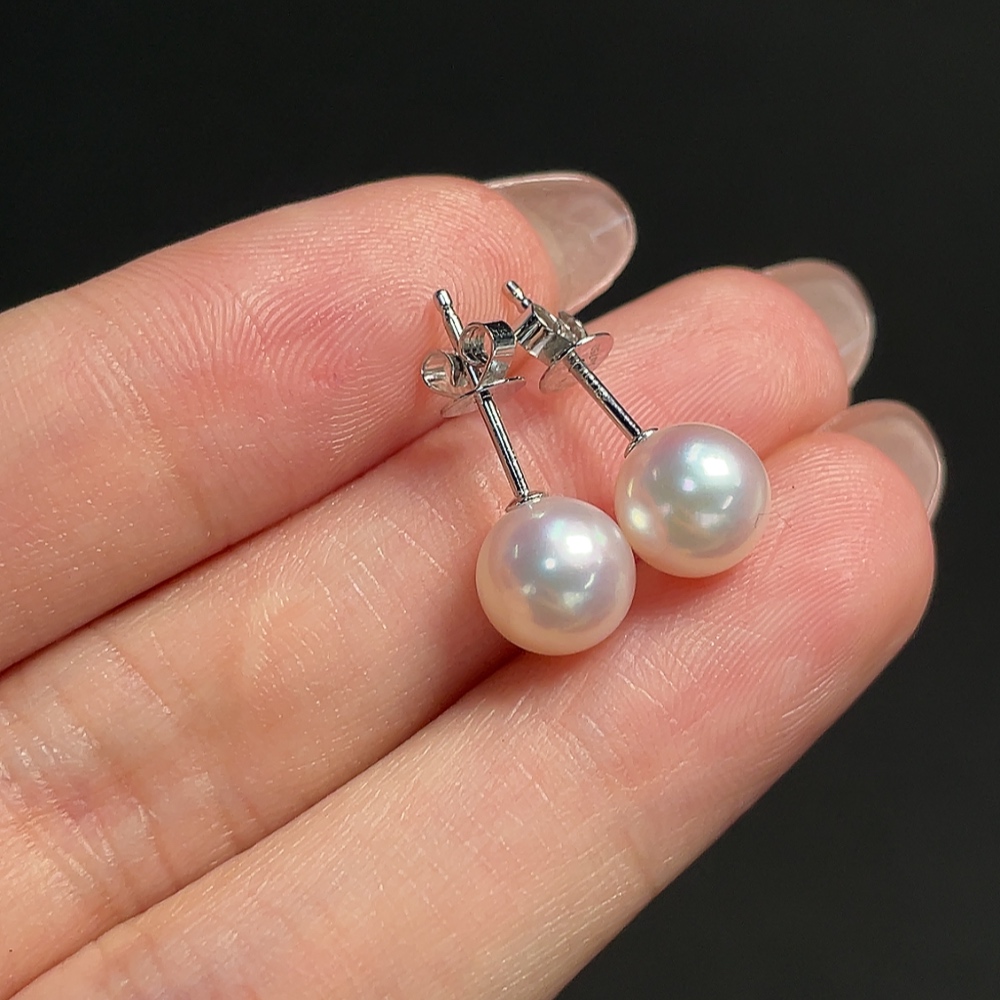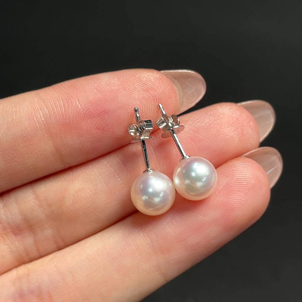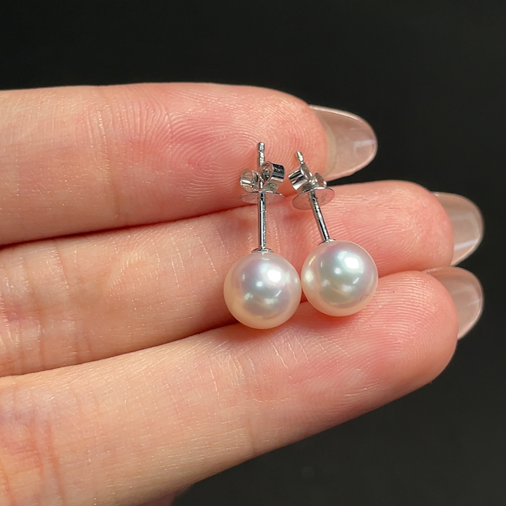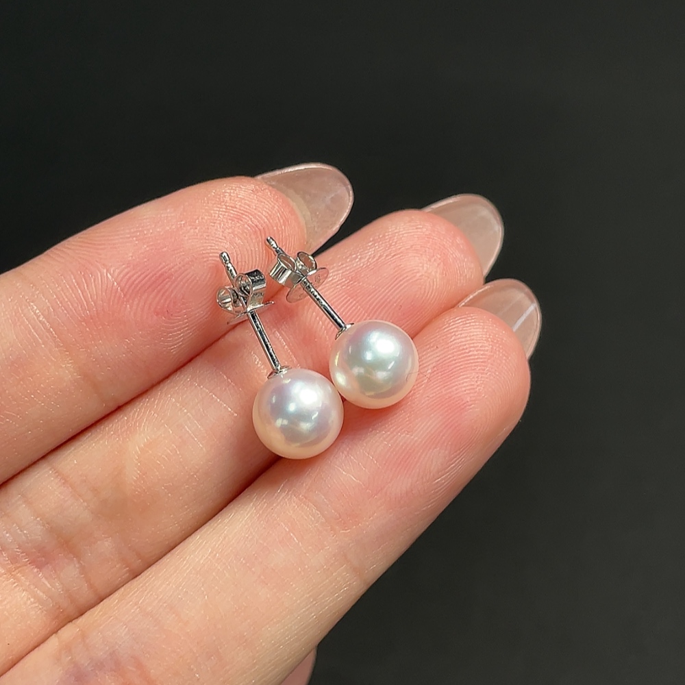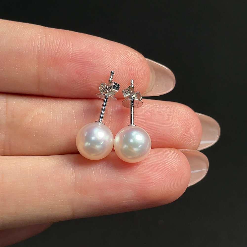 18K Saltwater Pearl Earrings, Total Weight Approx. 1.84g, Size 7.6mm