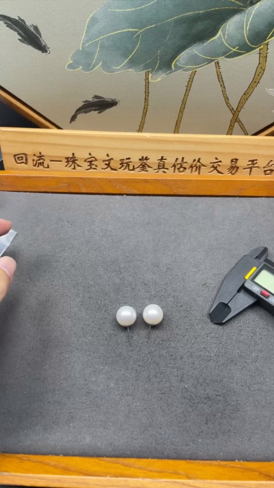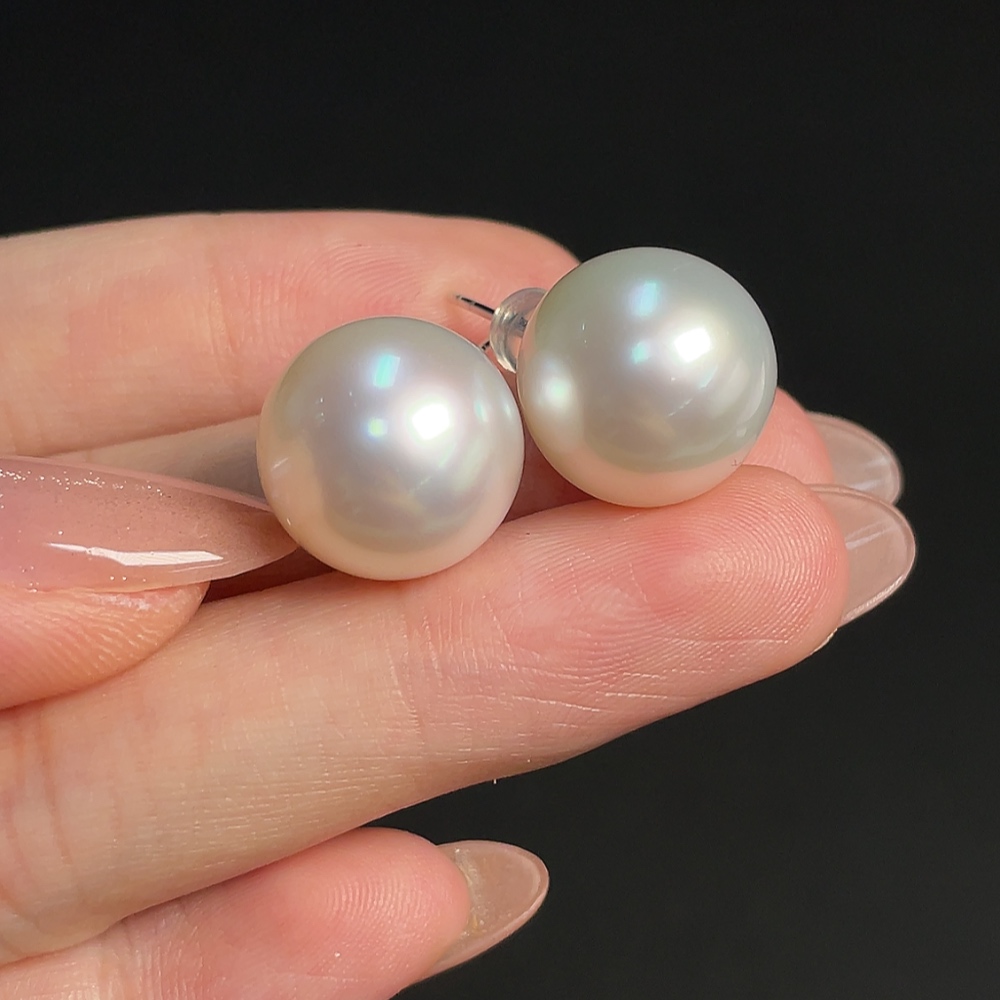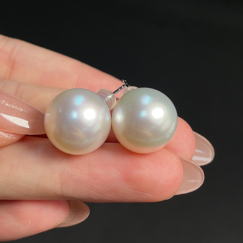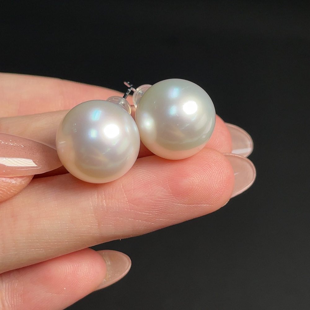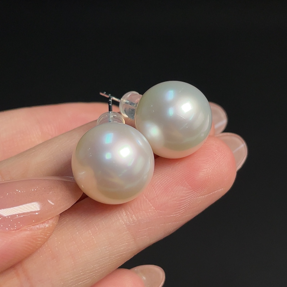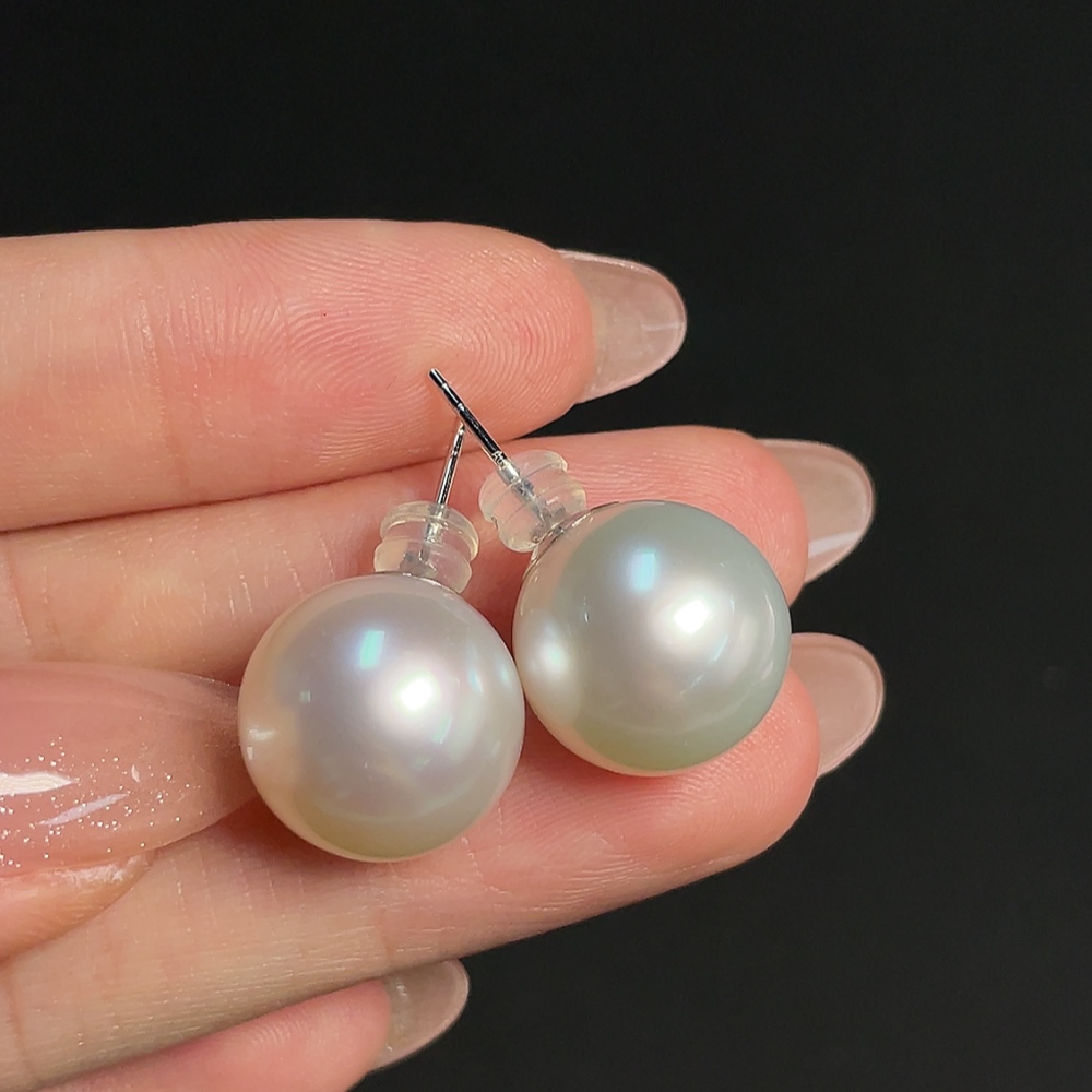 18k seawater pearl earrings, total weight approximately 8.35g, size about 14mm