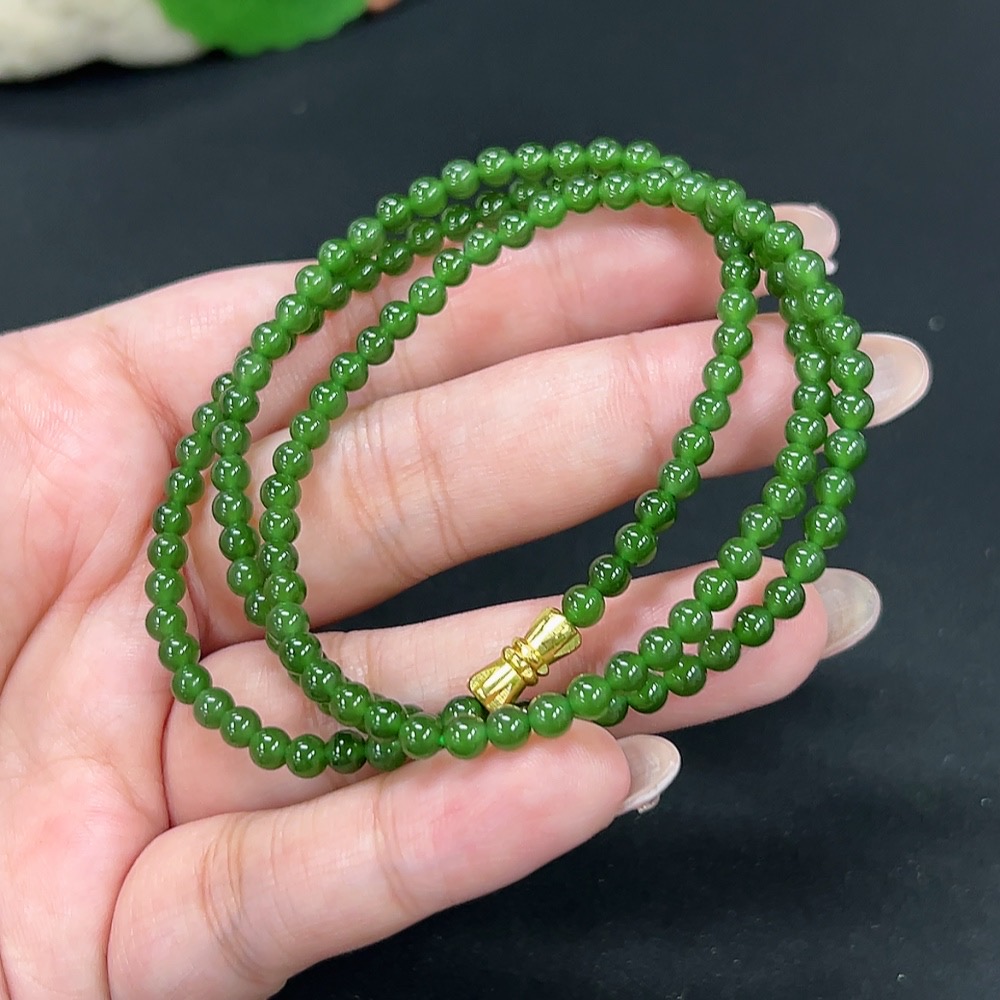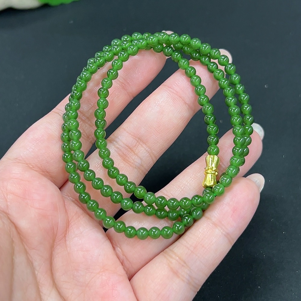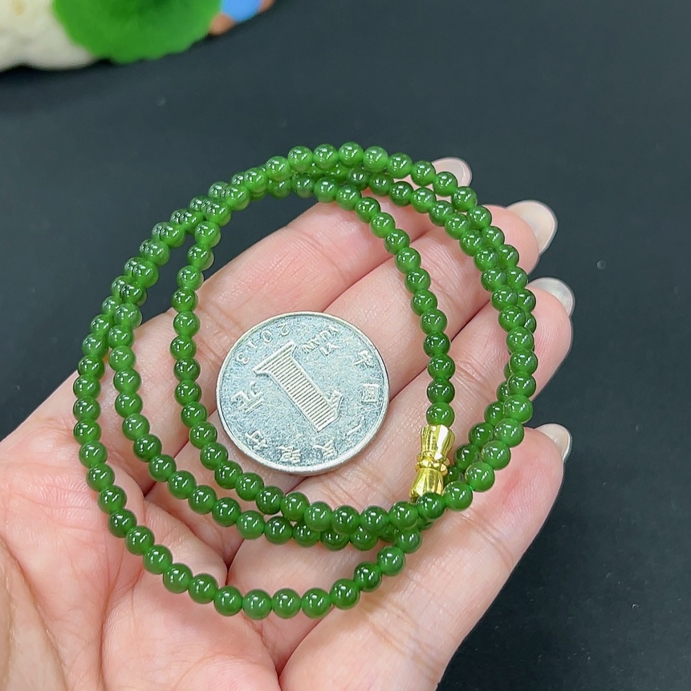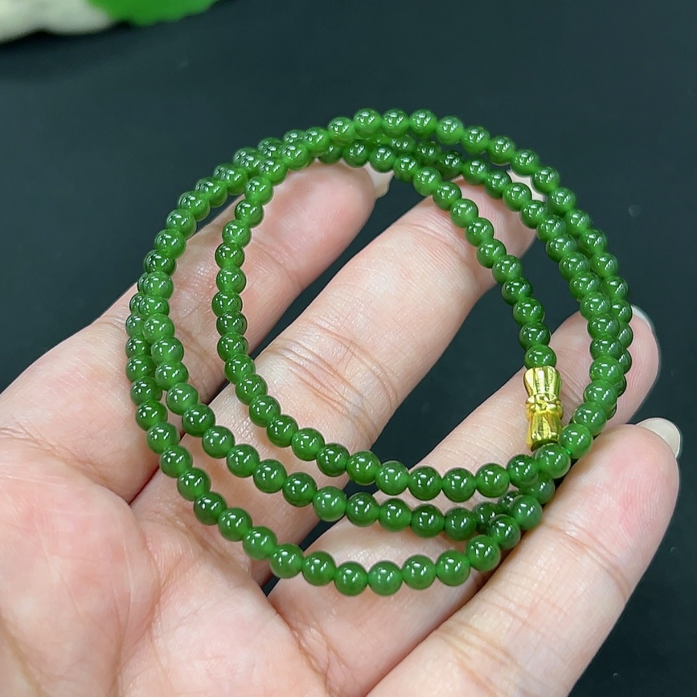 Hetian Jade Jasper Bead Necklace, Approx. 3.9mm, Total Weight Approx. 14.8g, Non-Gold