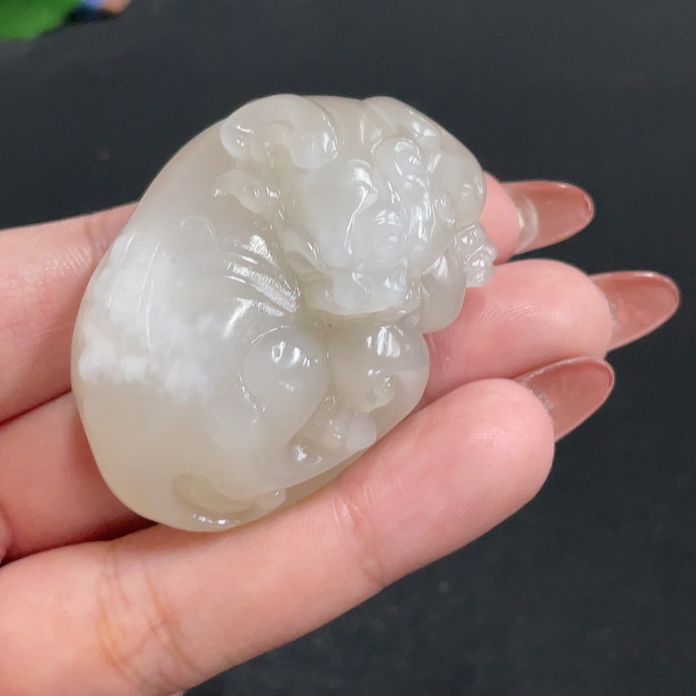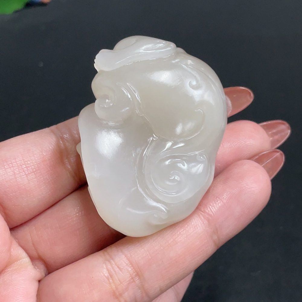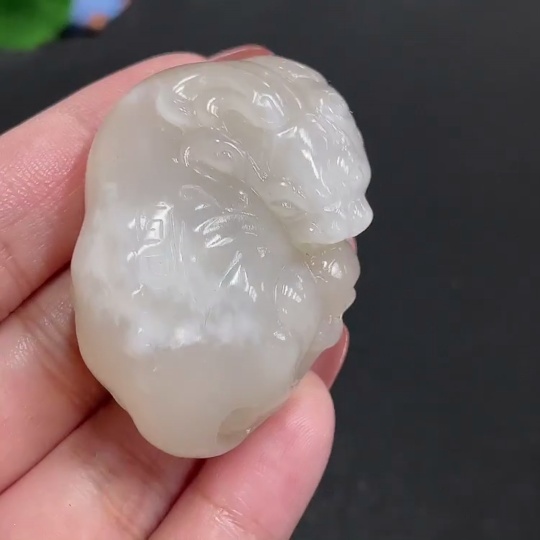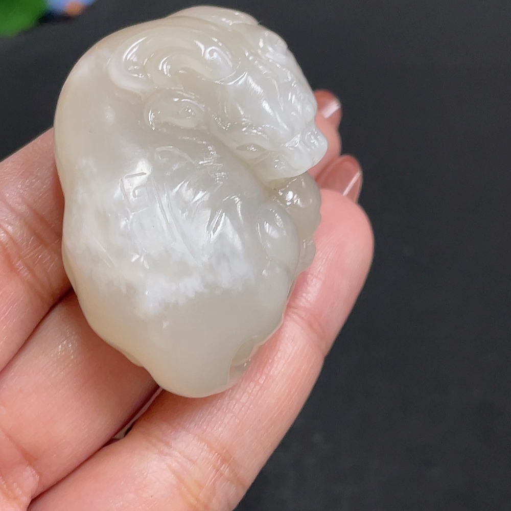 Hetian Jade Pendant, Auspicious Beast, Total Weight Approx. 56.3g, Surface with Glue