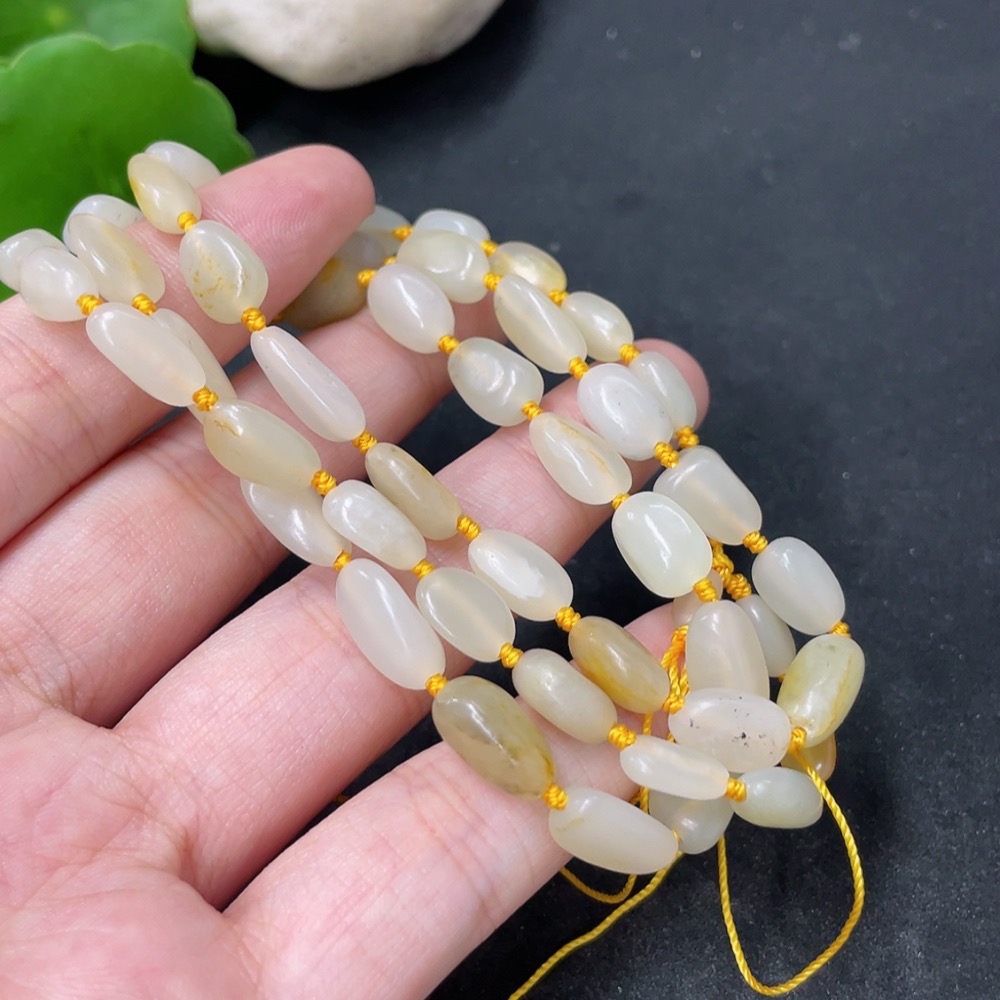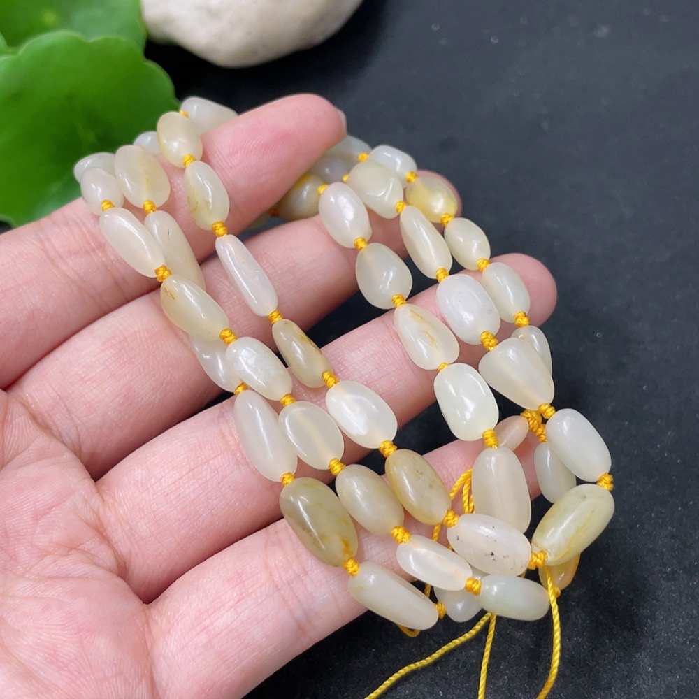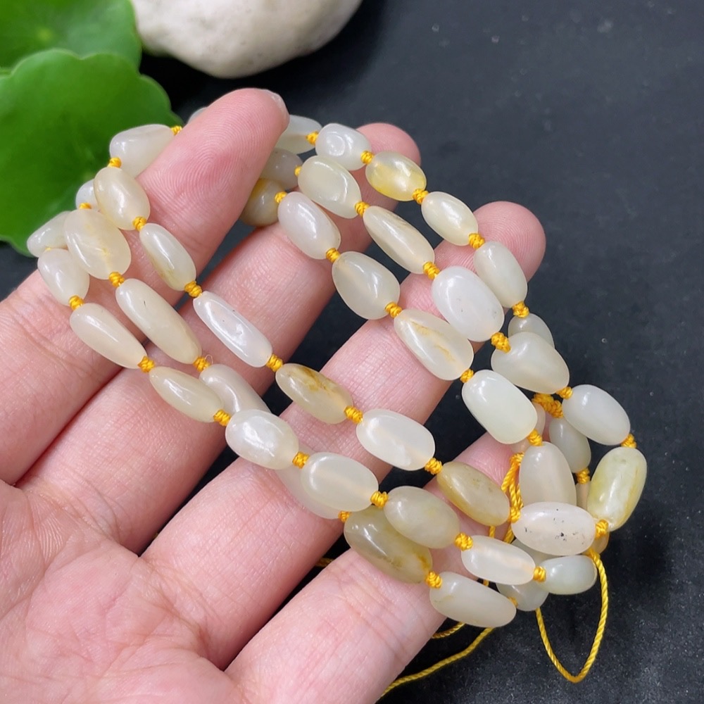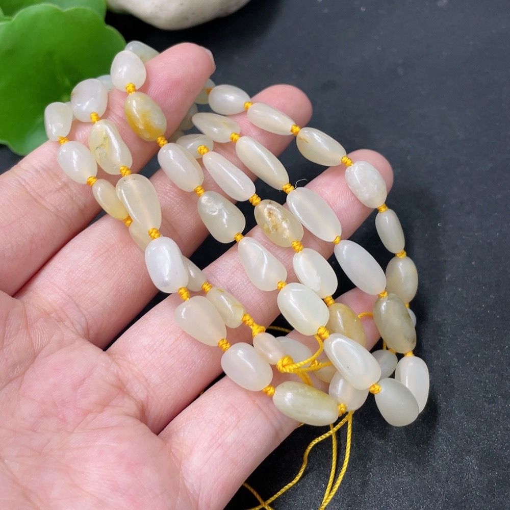 Hetian Jade Bead Necklace, Undetermined Skin Color Origin, Total Weight Approximately 28g