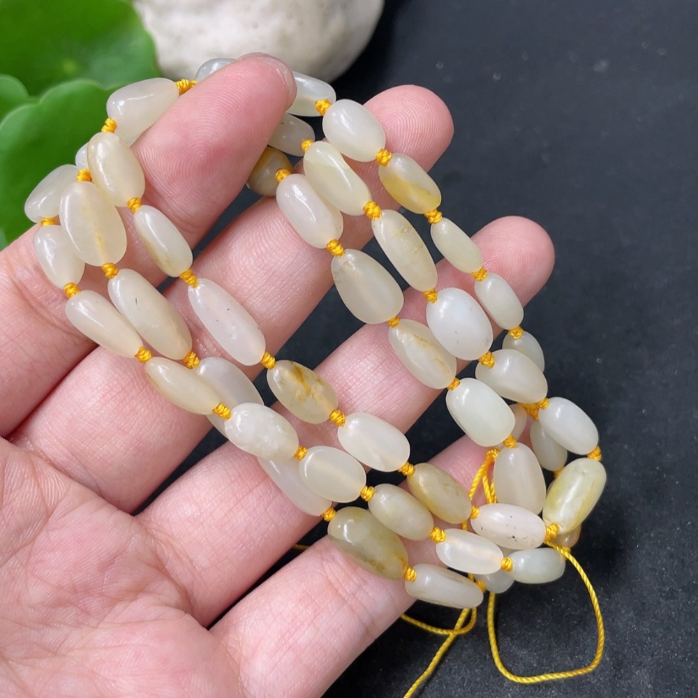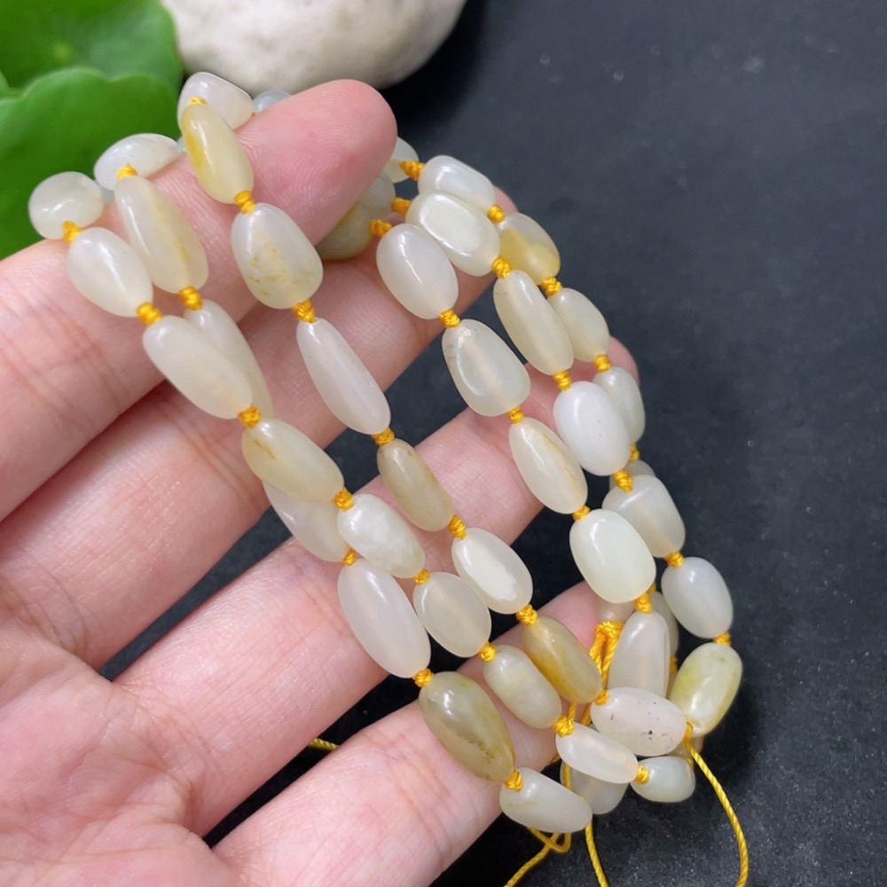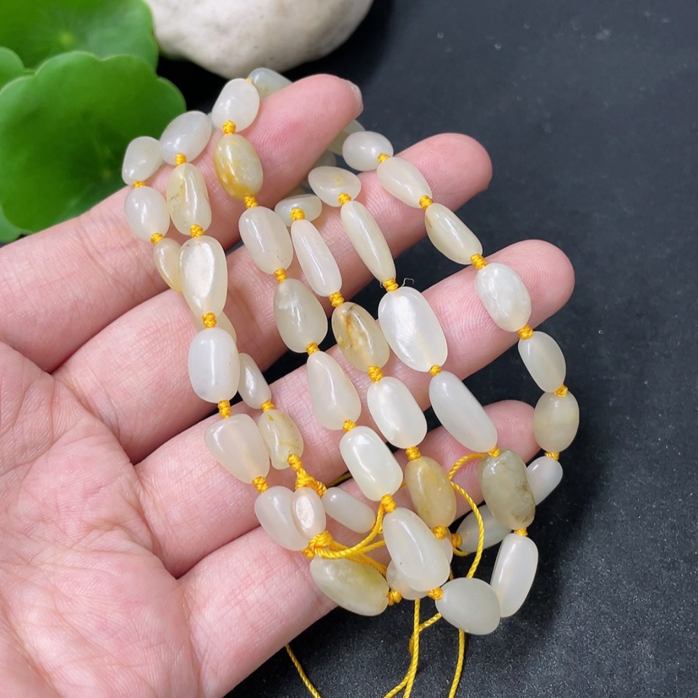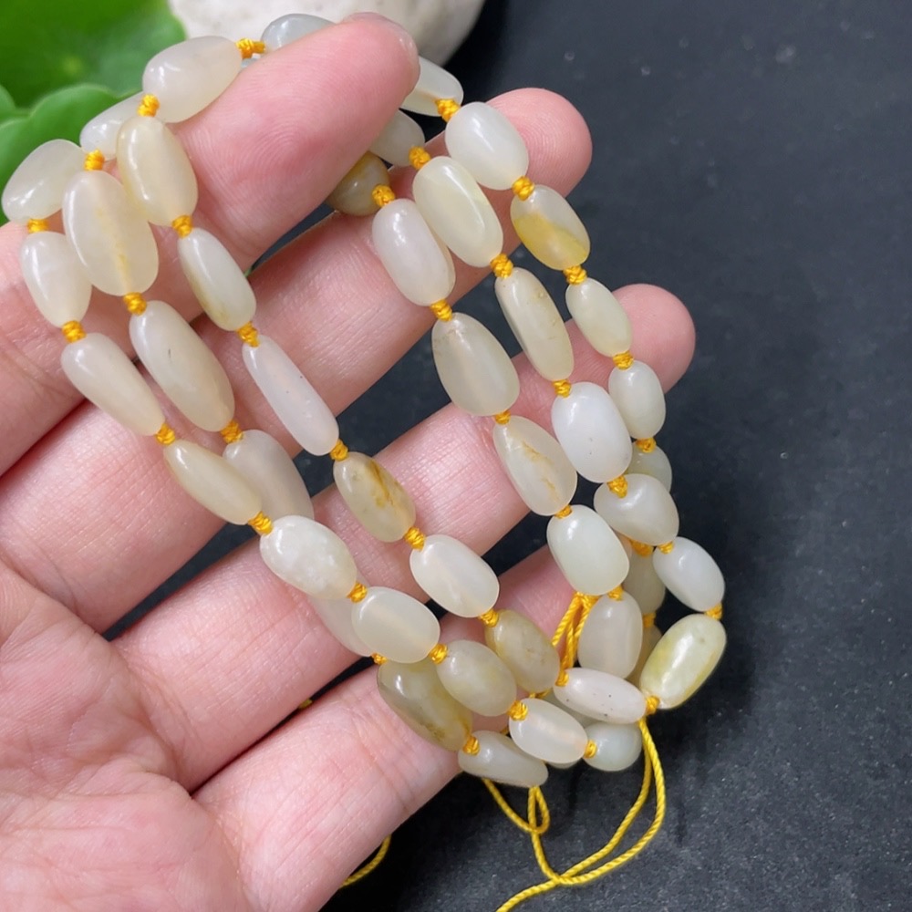 Hetian Jade Bead Necklace, Undetermined Skin Color Origin, Total Weight Approximately 28g