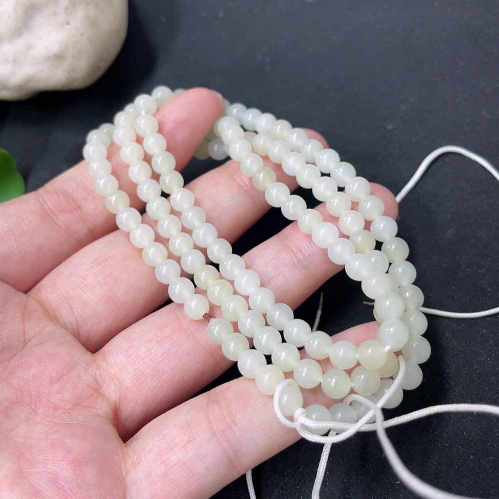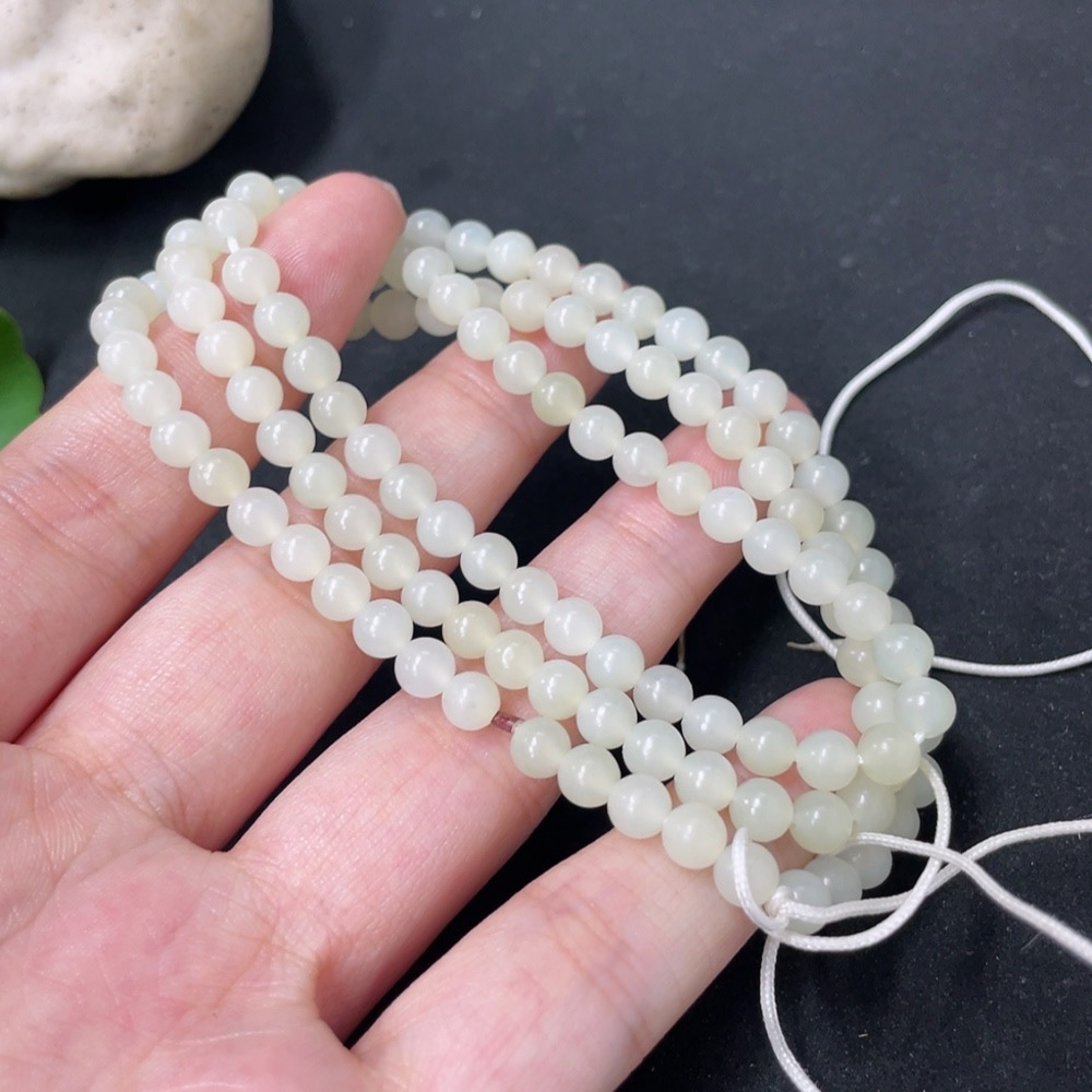 Hetian Jade Bead Necklace, Approx. 4.8mm, Total Weight Approx. 22.1g