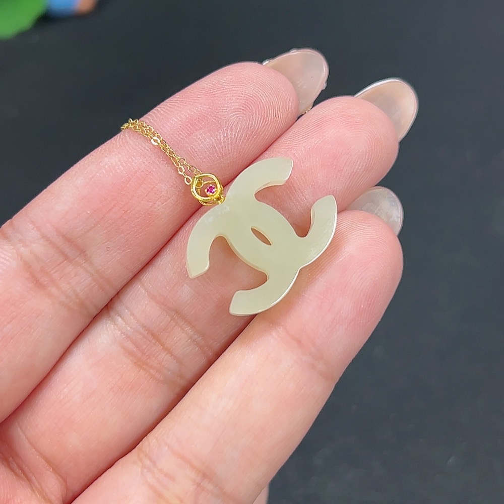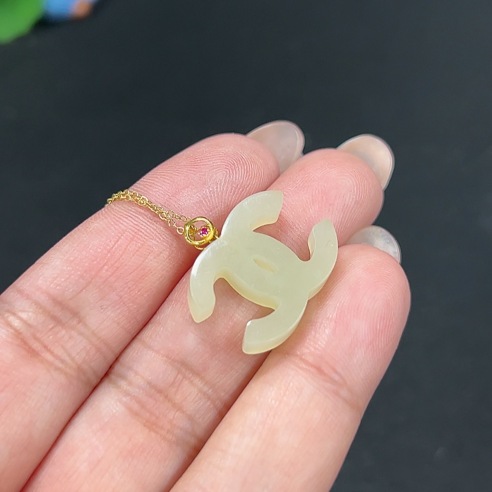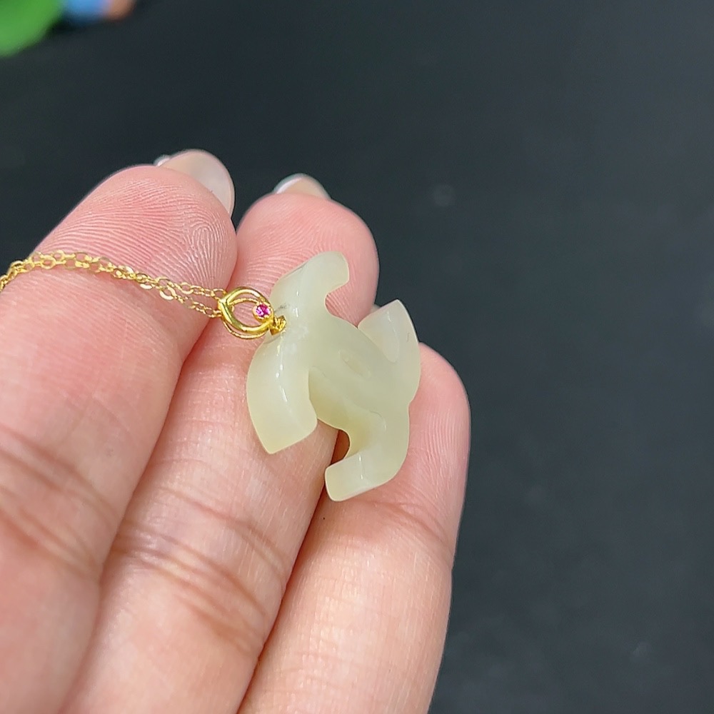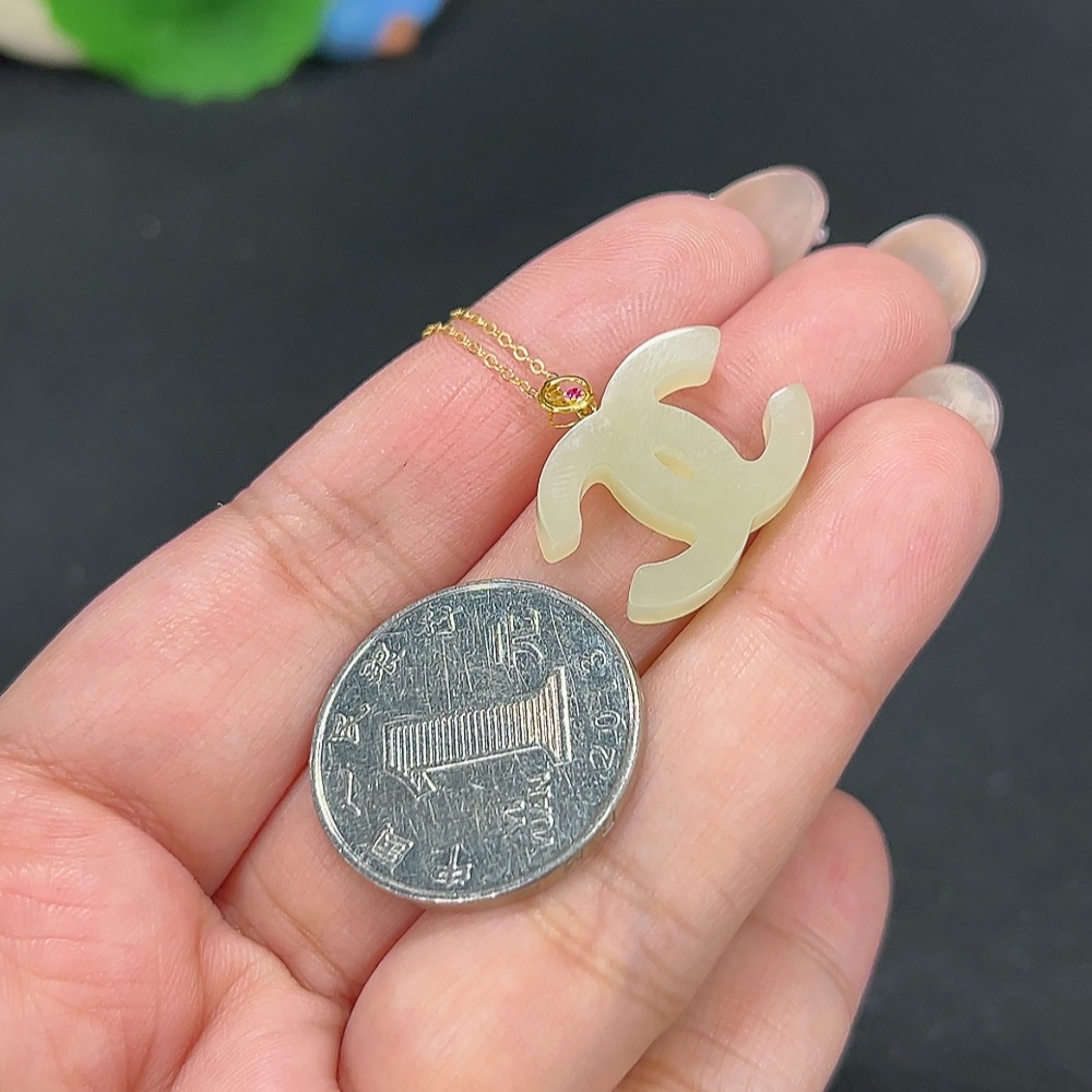 Hetian Jade Inlaid Pendant with 18k Clasp, Non-Gold Chain, Total Weight Approx. 2.8g
