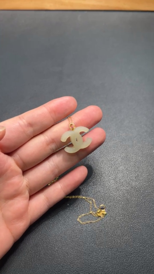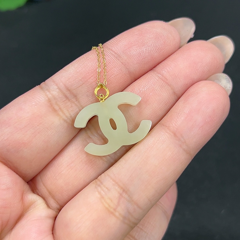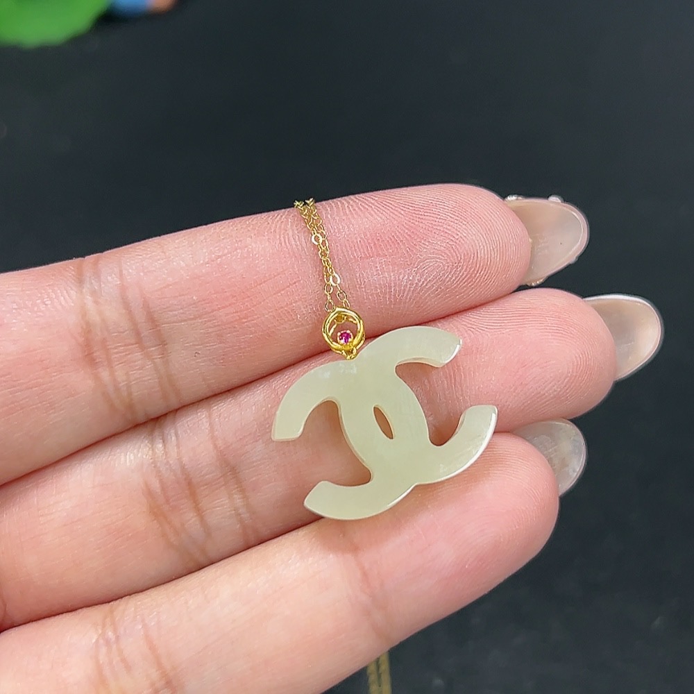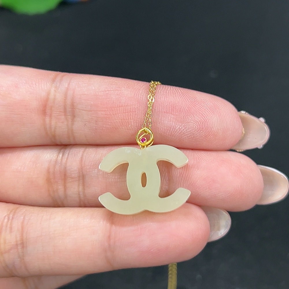 Hetian Jade Inlaid Pendant with 18k Clasp, Non-Gold Chain, Total Weight Approx. 2.8g