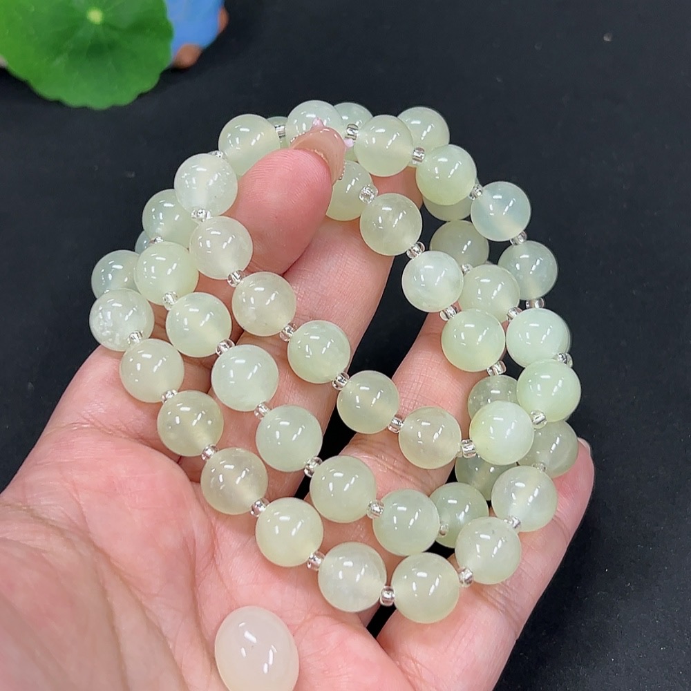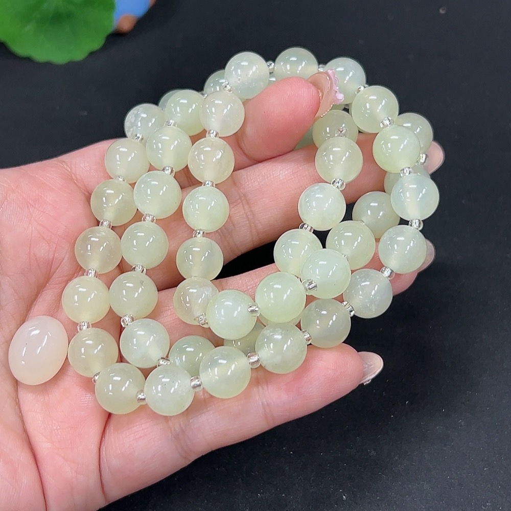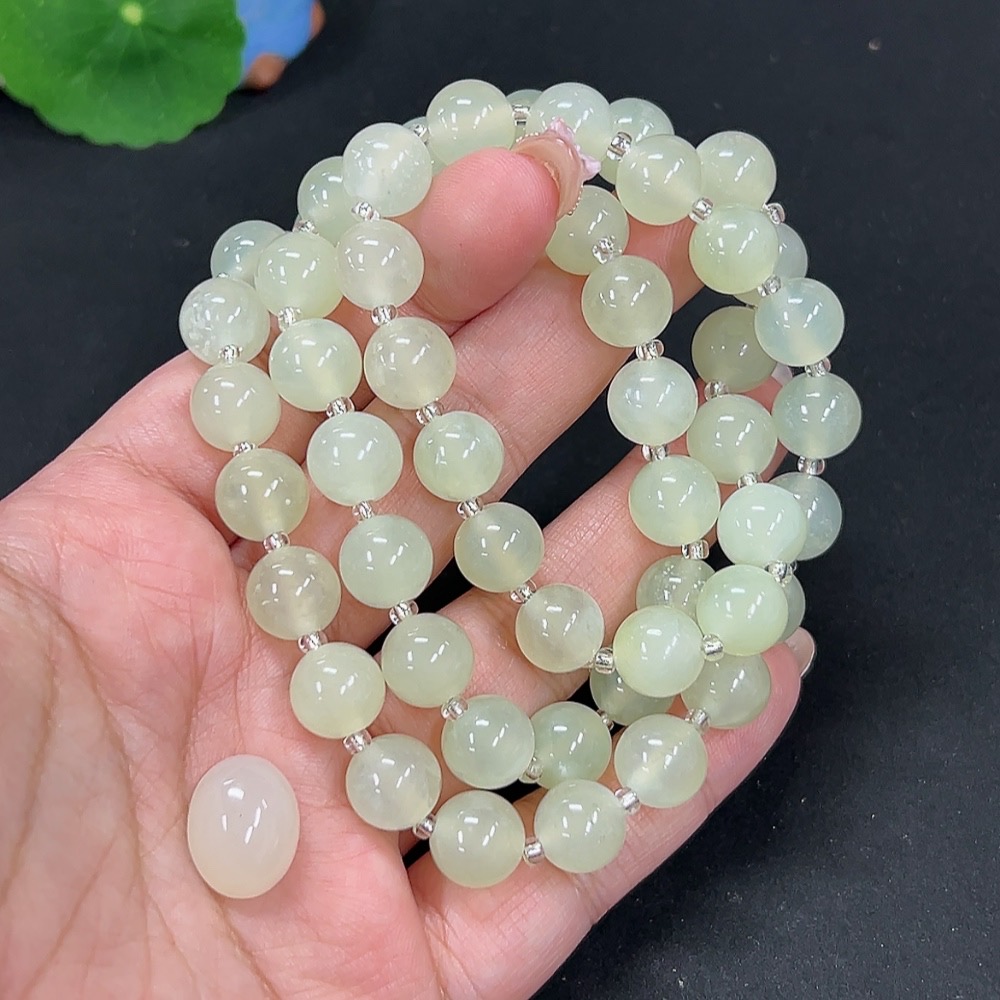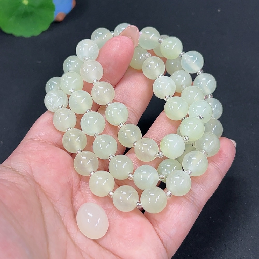 Xiuyan jade (serpentine jade) bead chain + cabochon