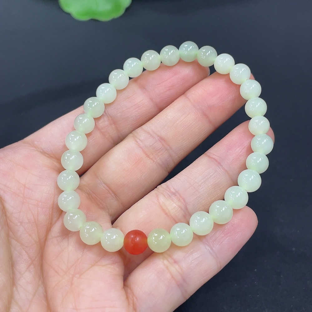 Hetian Jade Bracelet Approx.5.9mm Total Weight Approx.9.7g Beads Not Hetian Jade