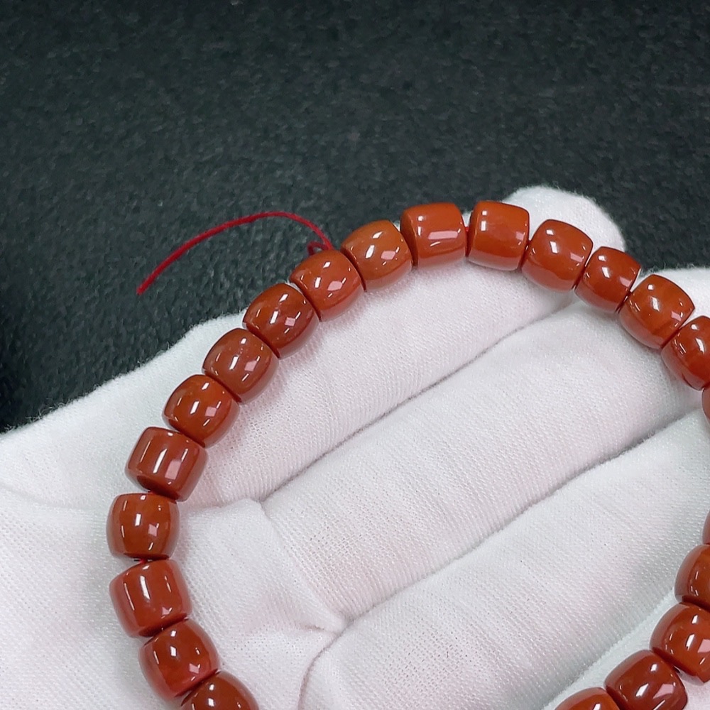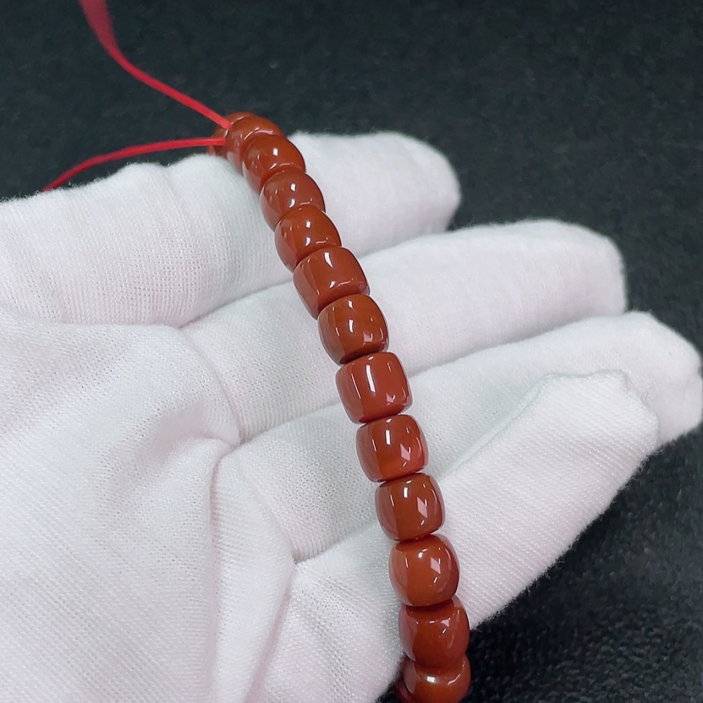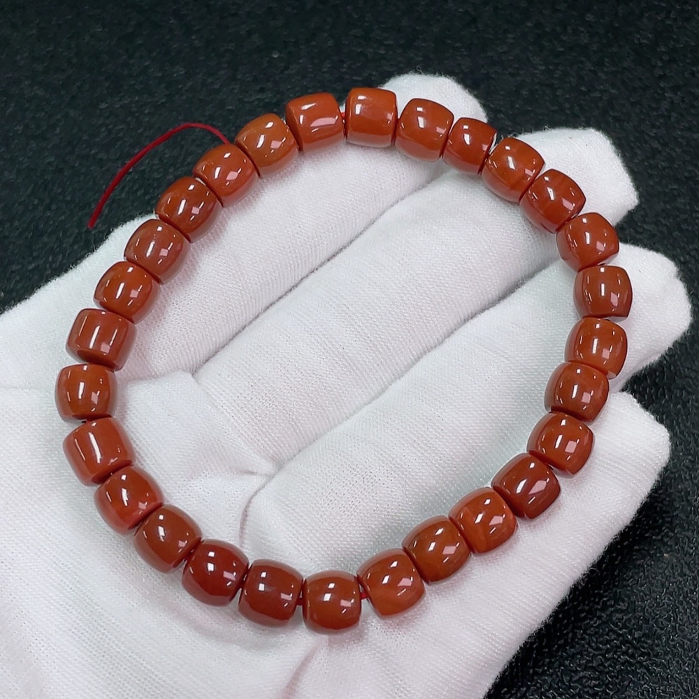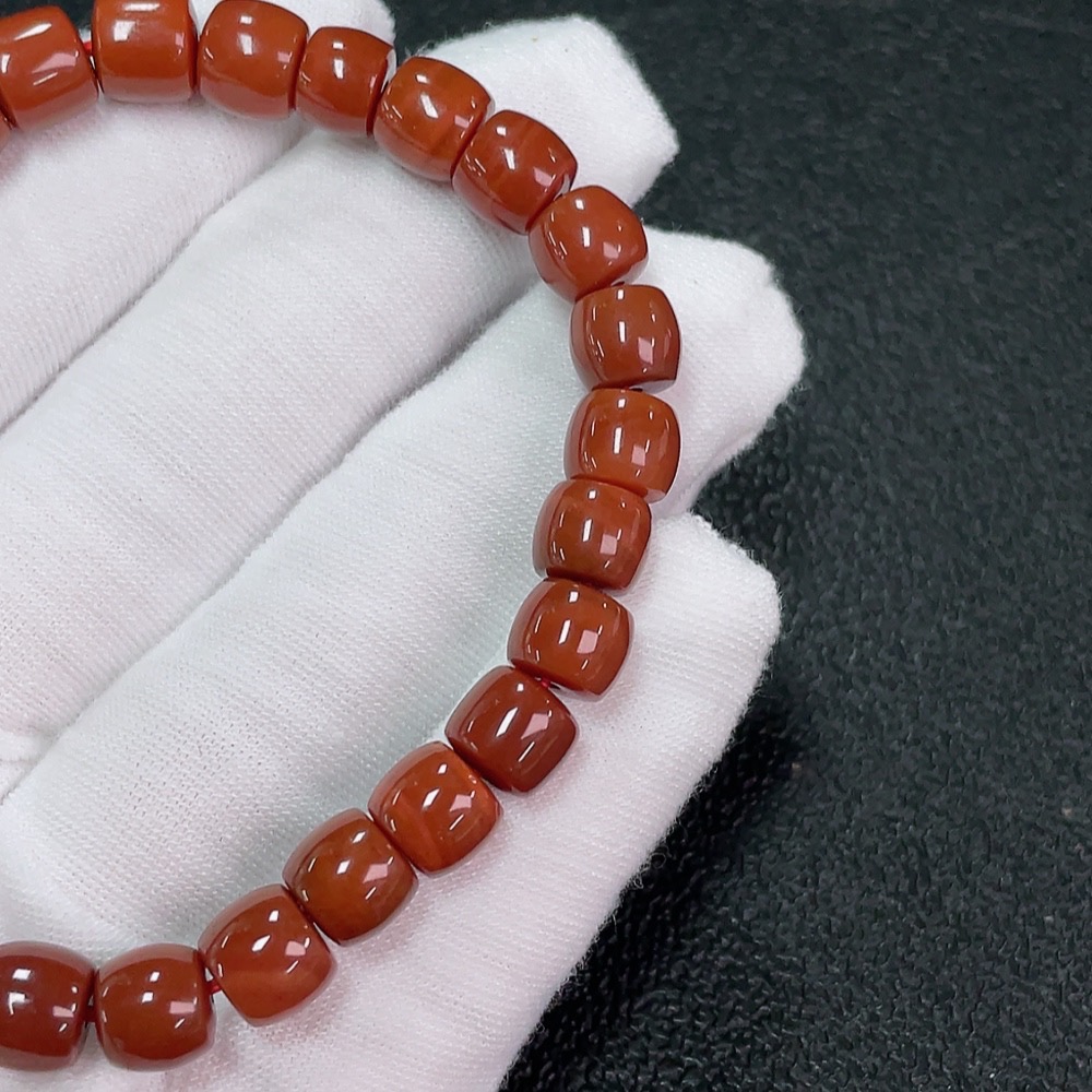South Red Agate Bracelet, approx. 7.5mm, total weight about 18g, organic matter visible