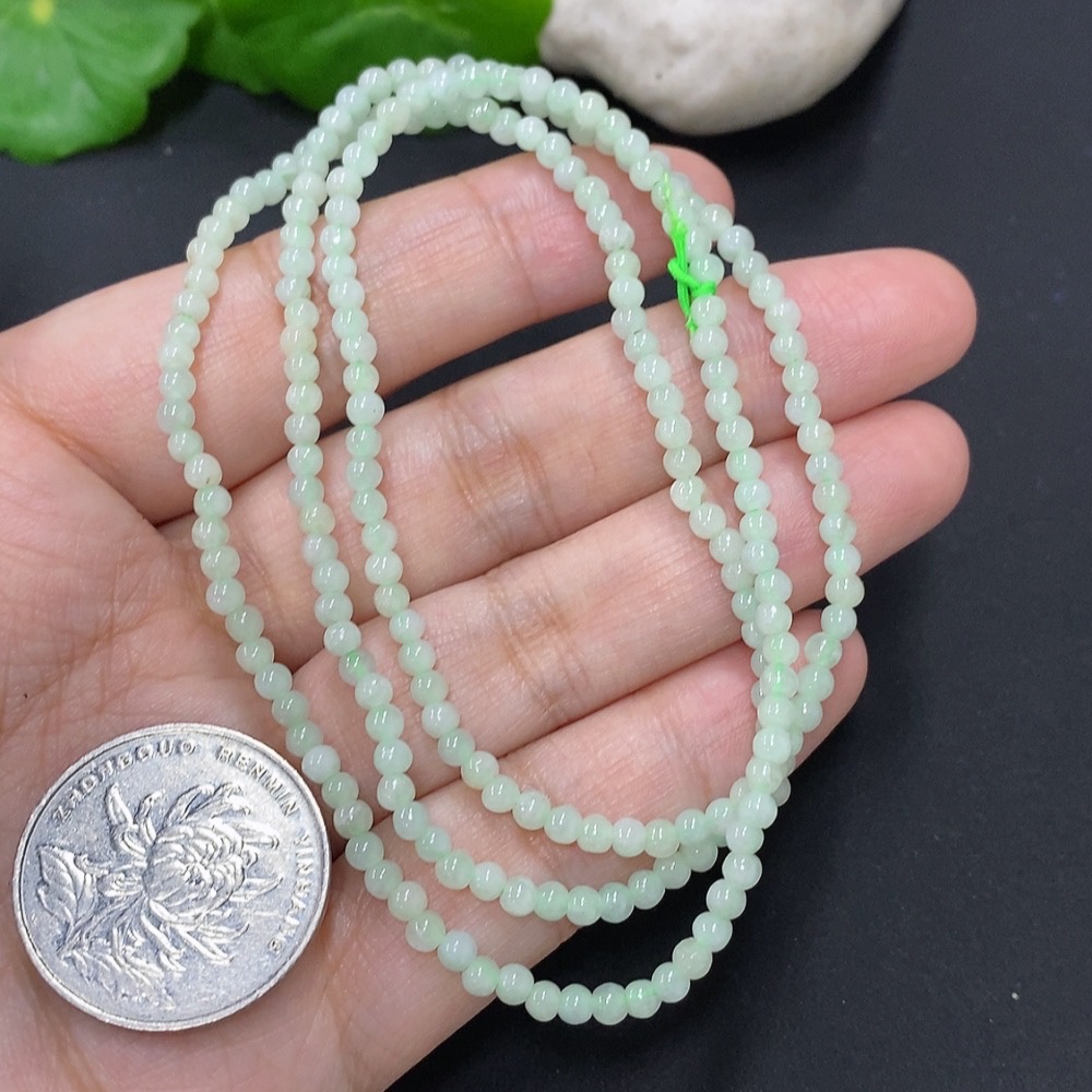 Jadeite Bead Necklace Total Weight Approximately 9.7g Size About 2.9mm