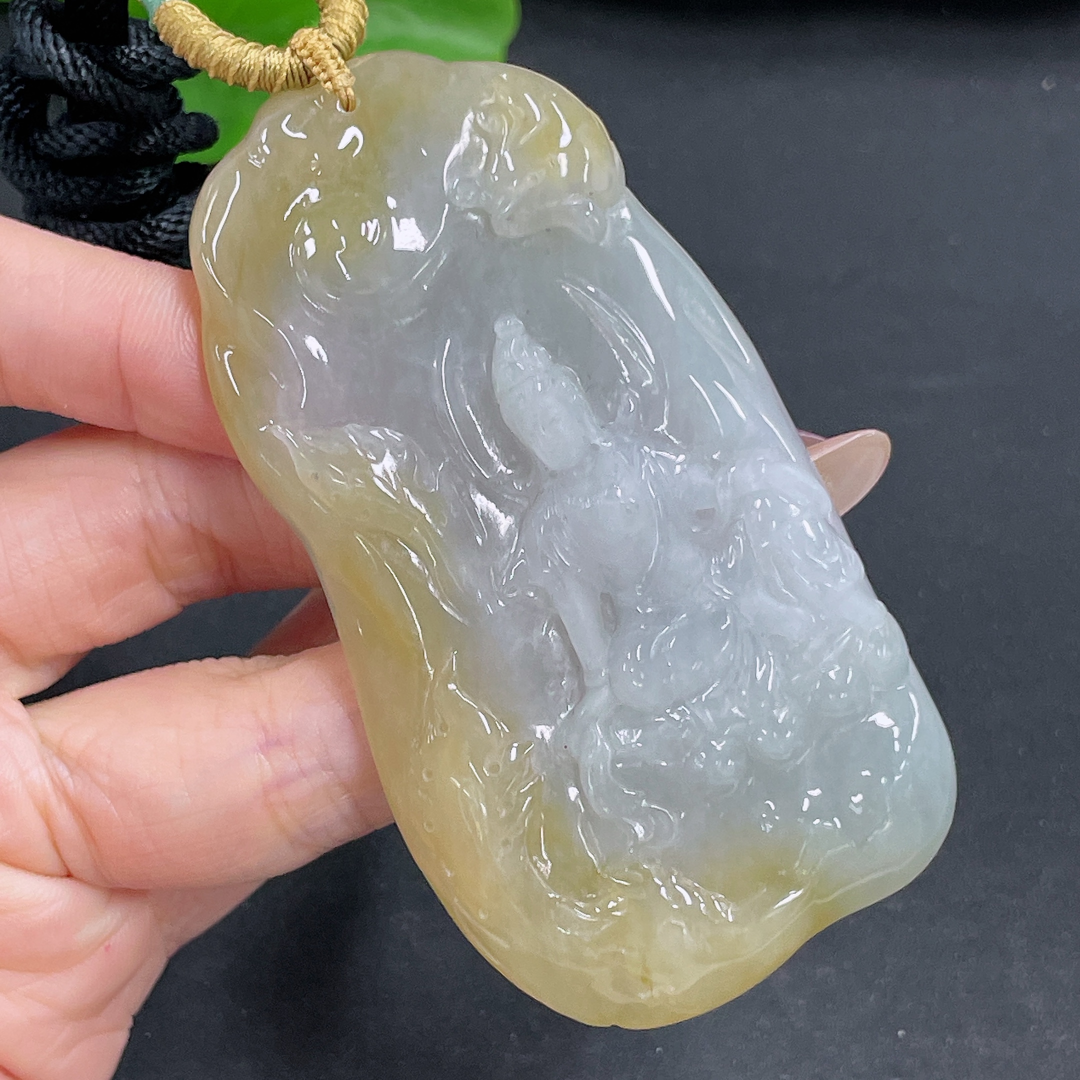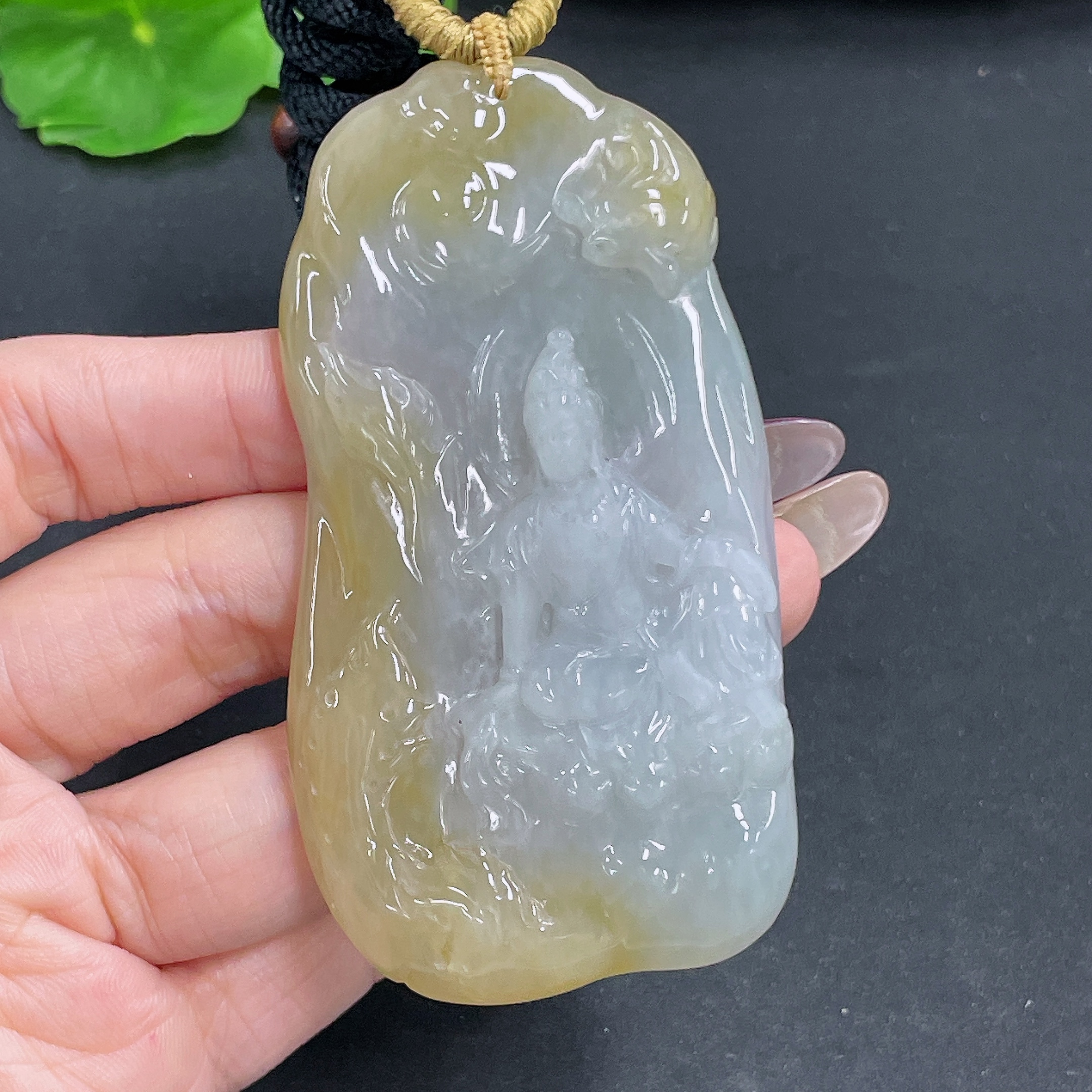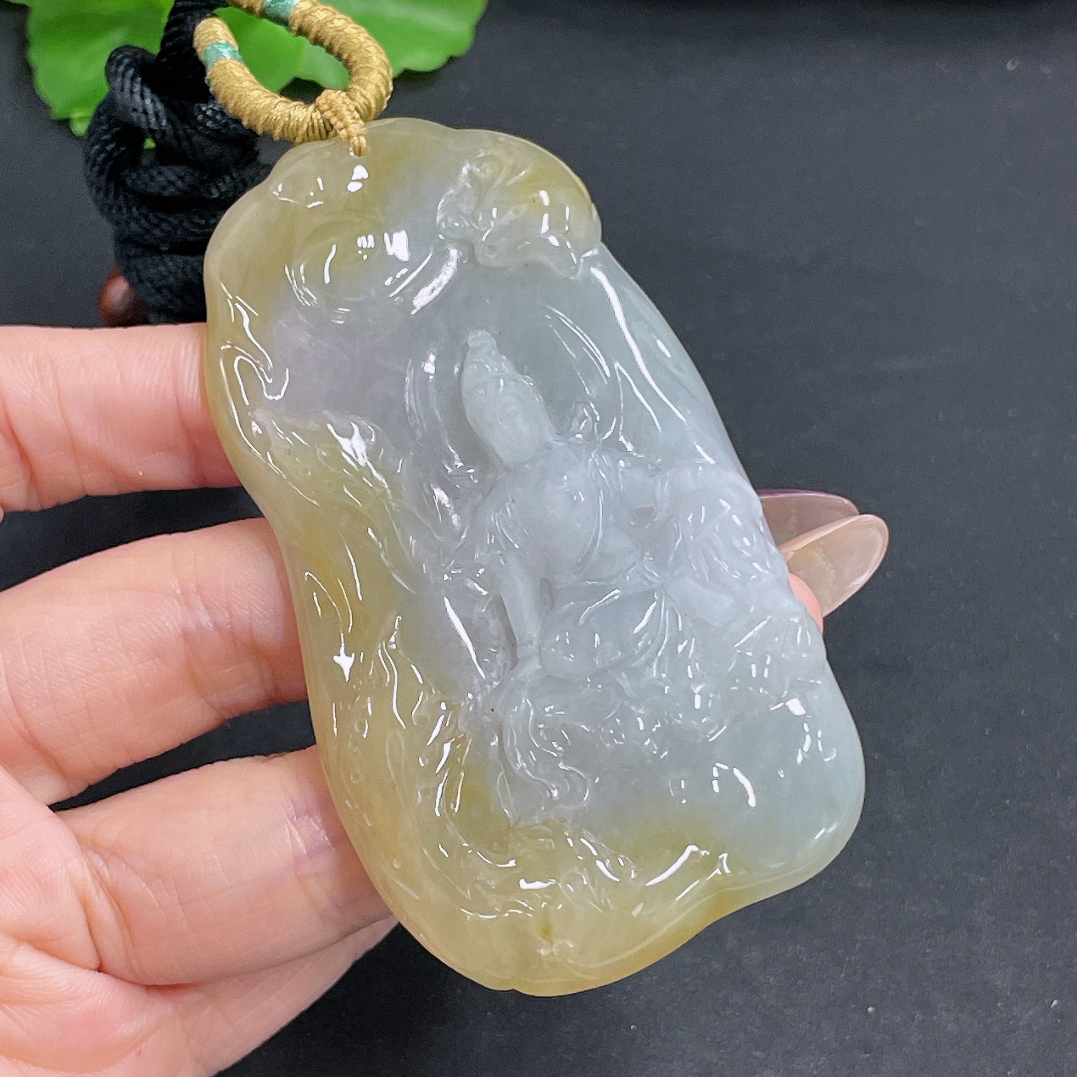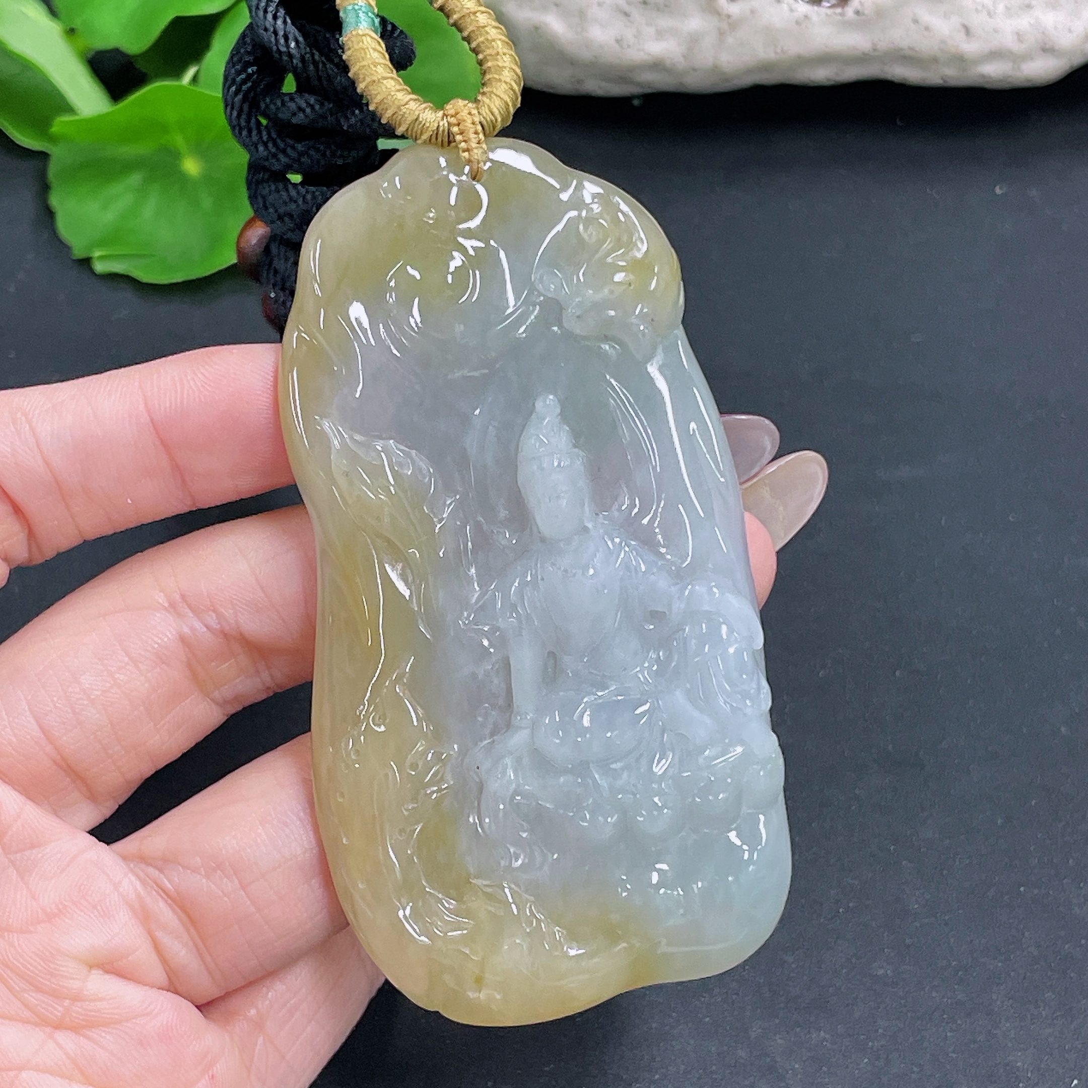 Jadeite Pendant Guanyin with Non-A Beads Including Rope Total Weight Approx. 66.04g