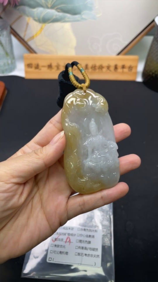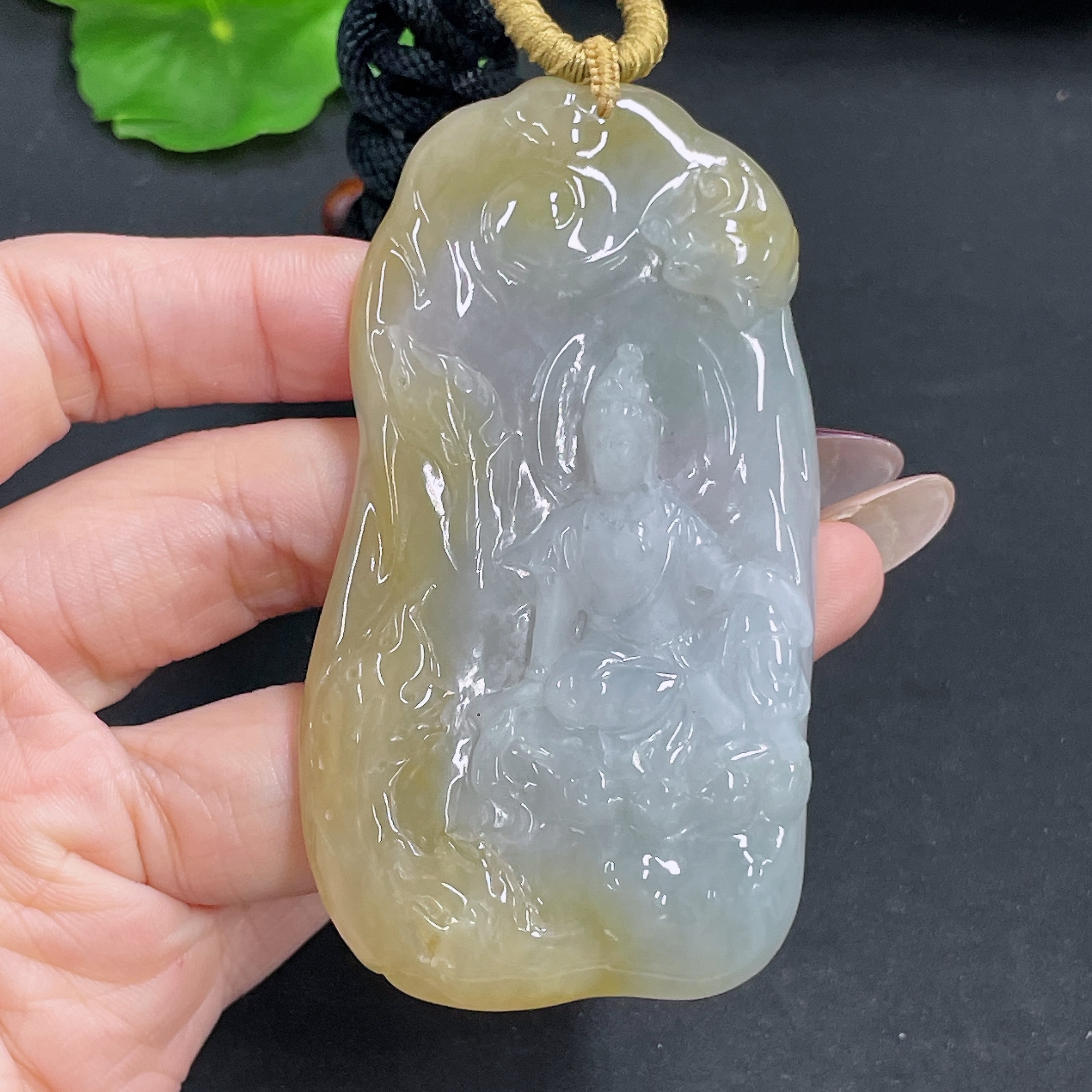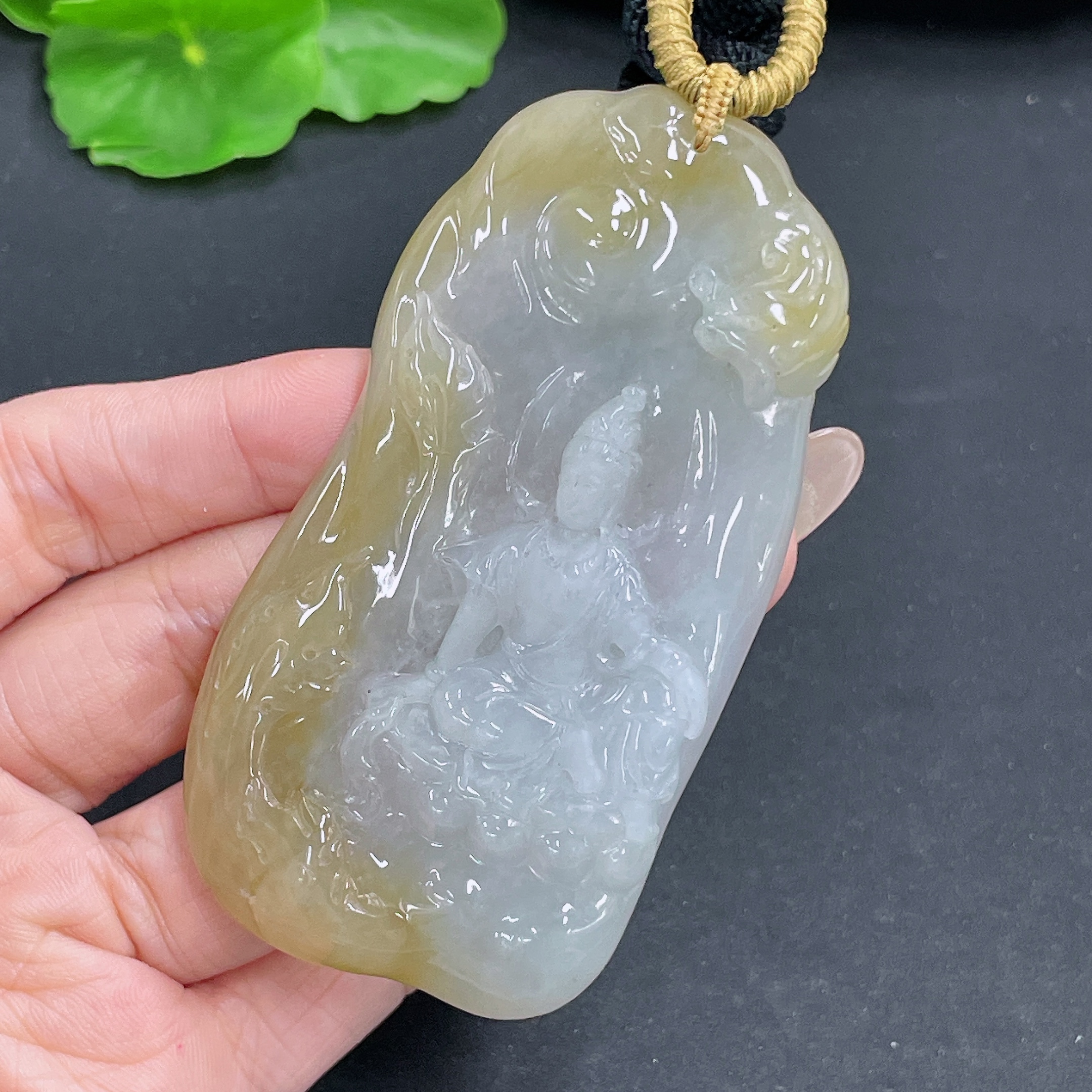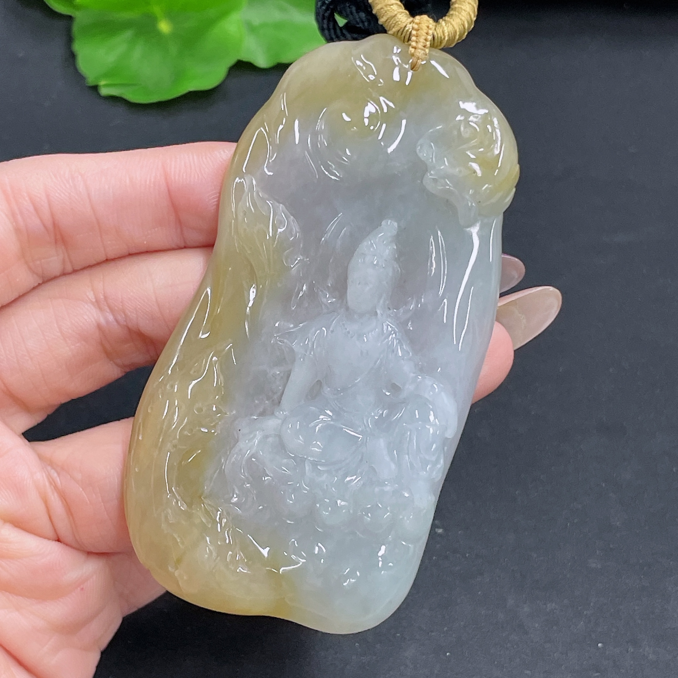 Jadeite Pendant Guanyin with Non-A Beads Including Rope Total Weight Approx. 66.04g
