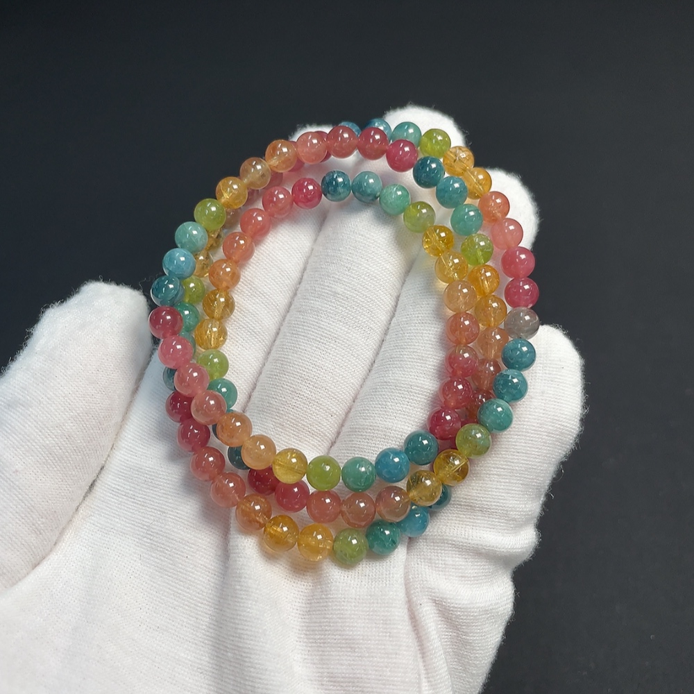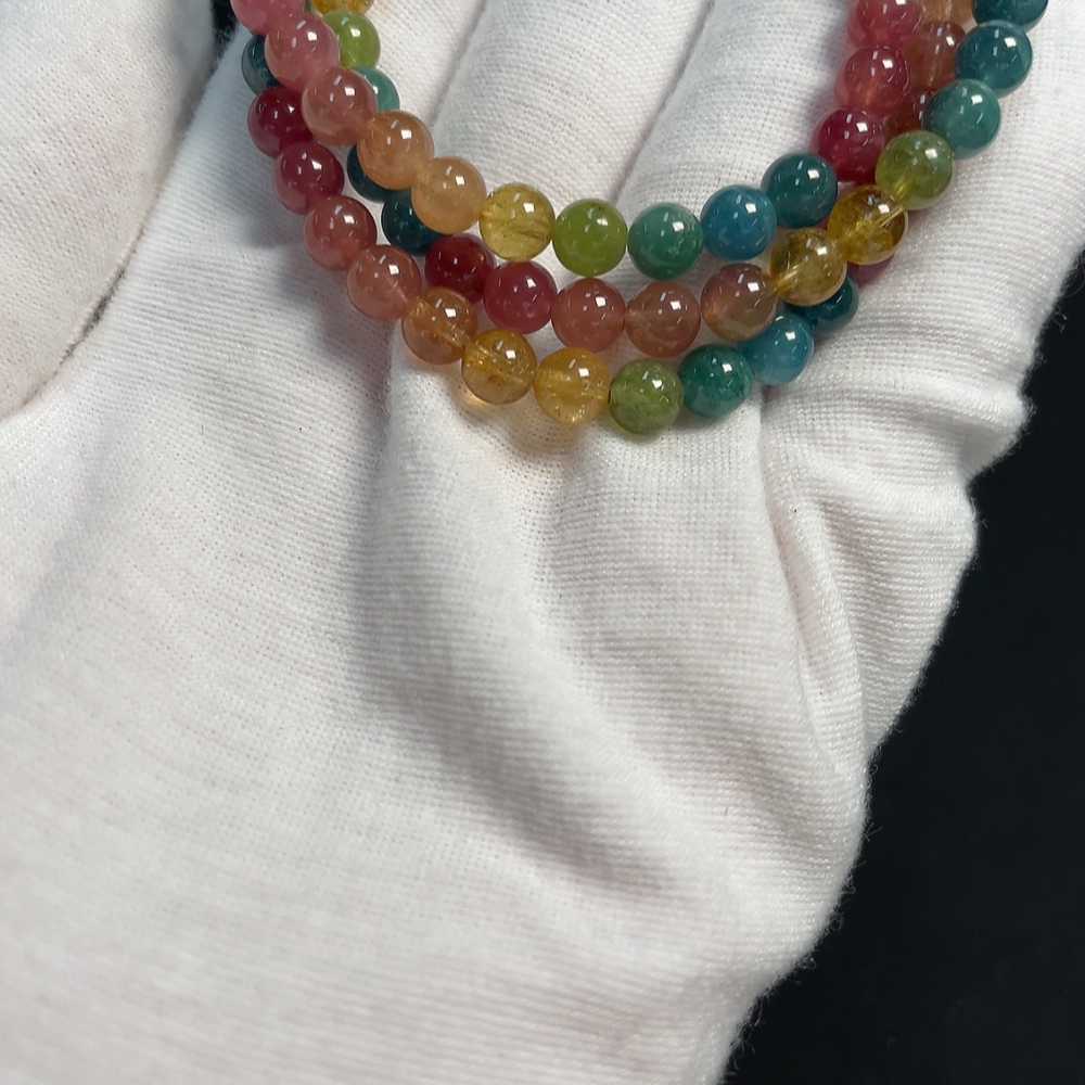 Tourmaline Bracelet with Visible Organic Inclusions, Total Weight Approx. 29.71g, Size About 10.9mm