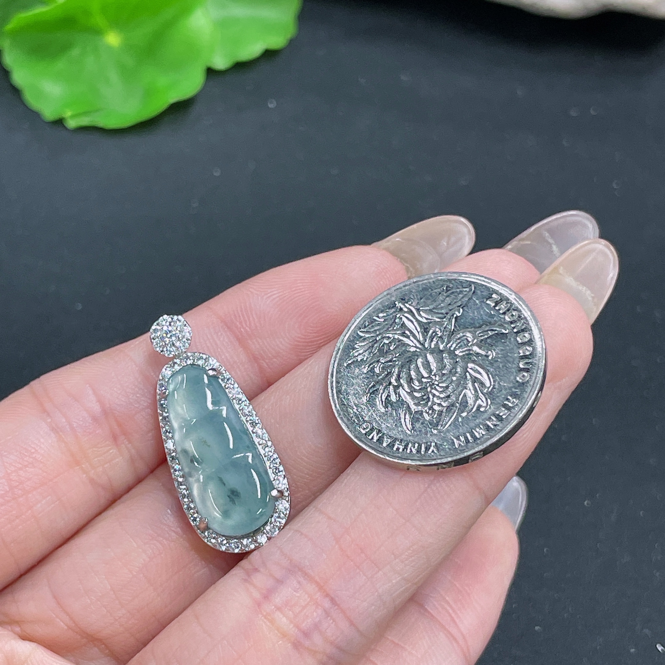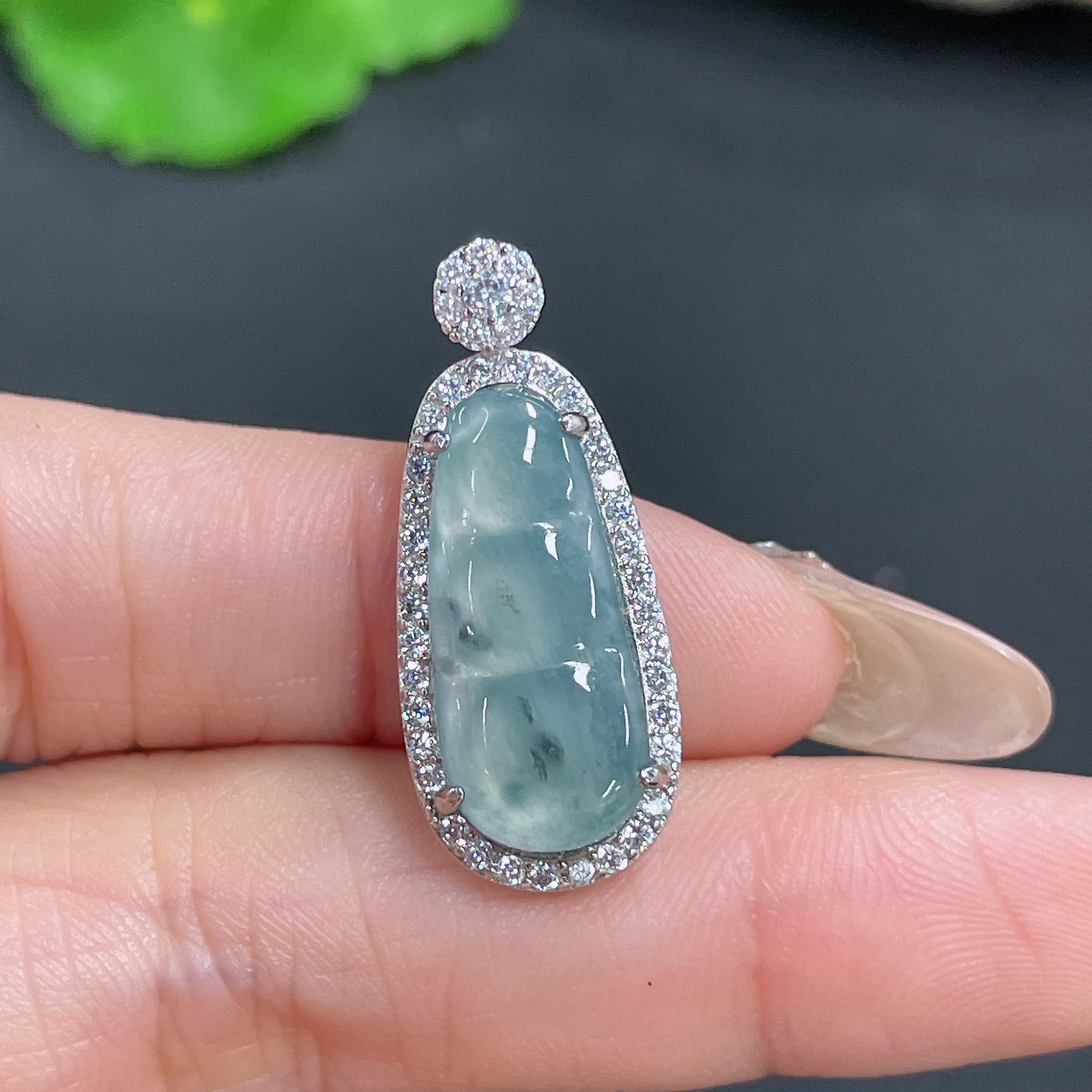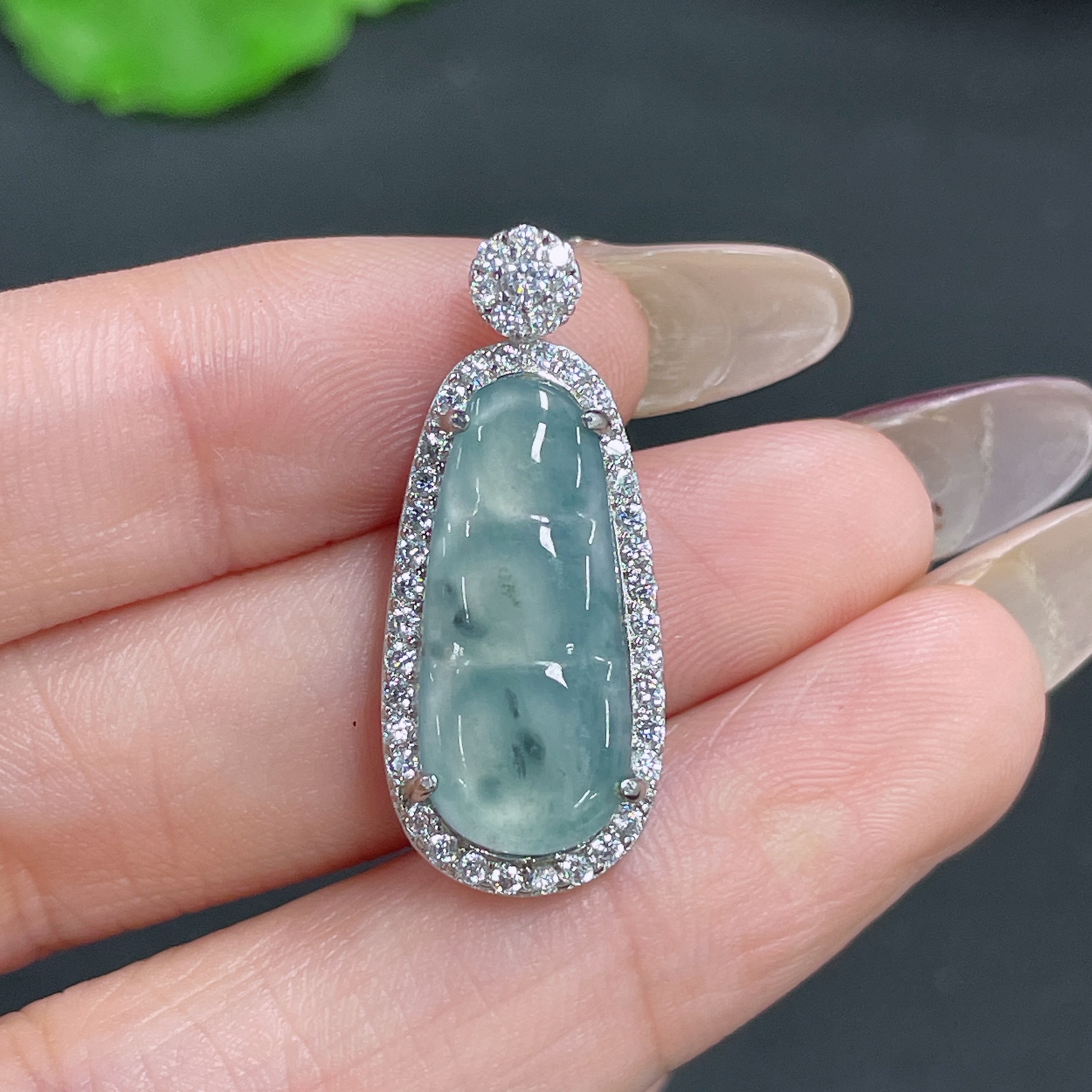 Jadeite Auspicious Bean Inlaid Pendant Non-Gold Total Weight Approx. 3.05g