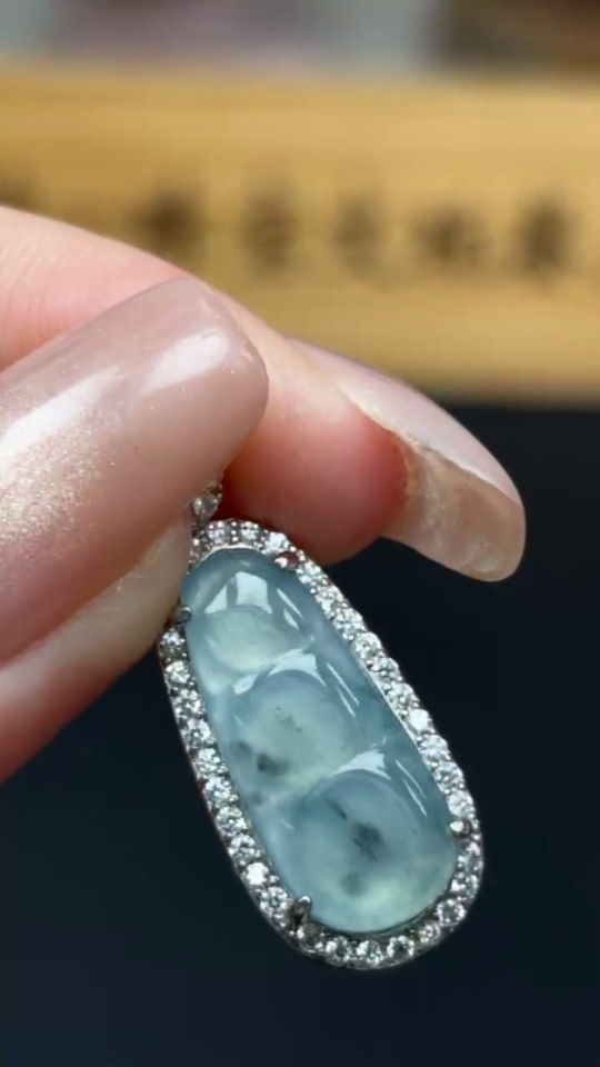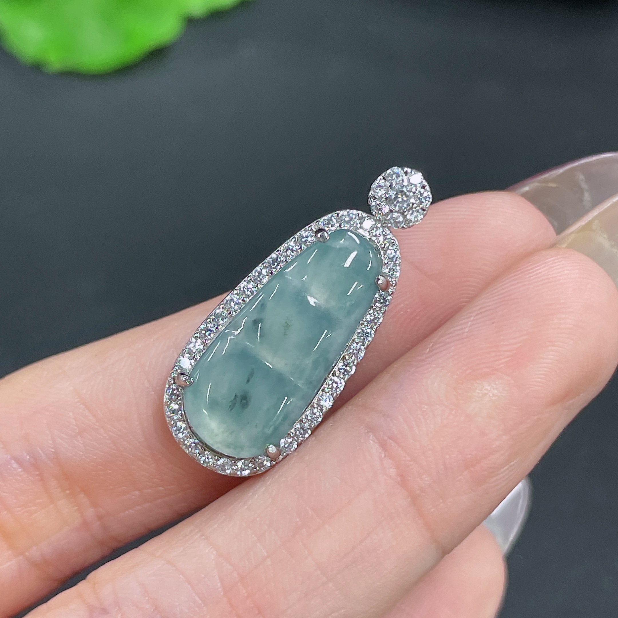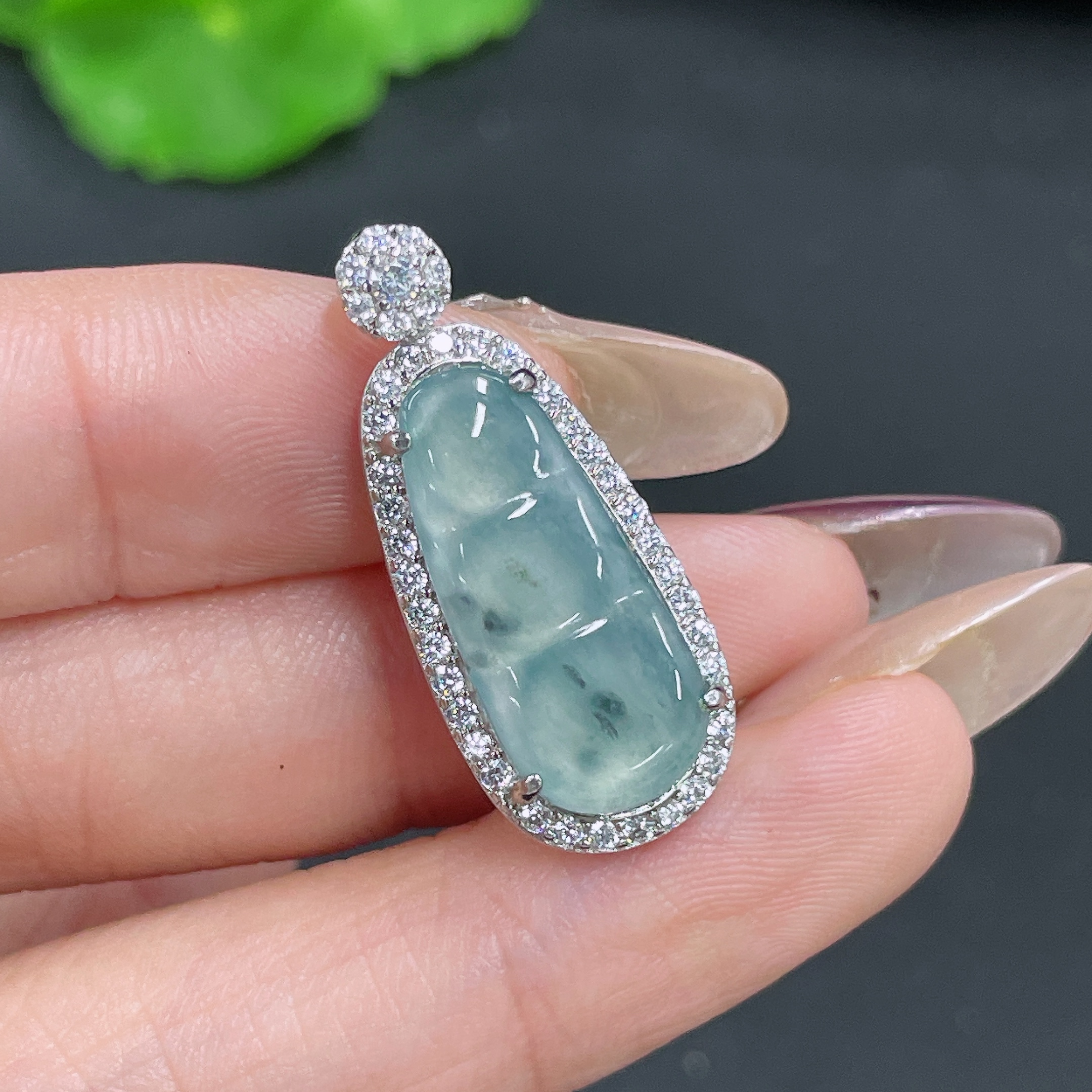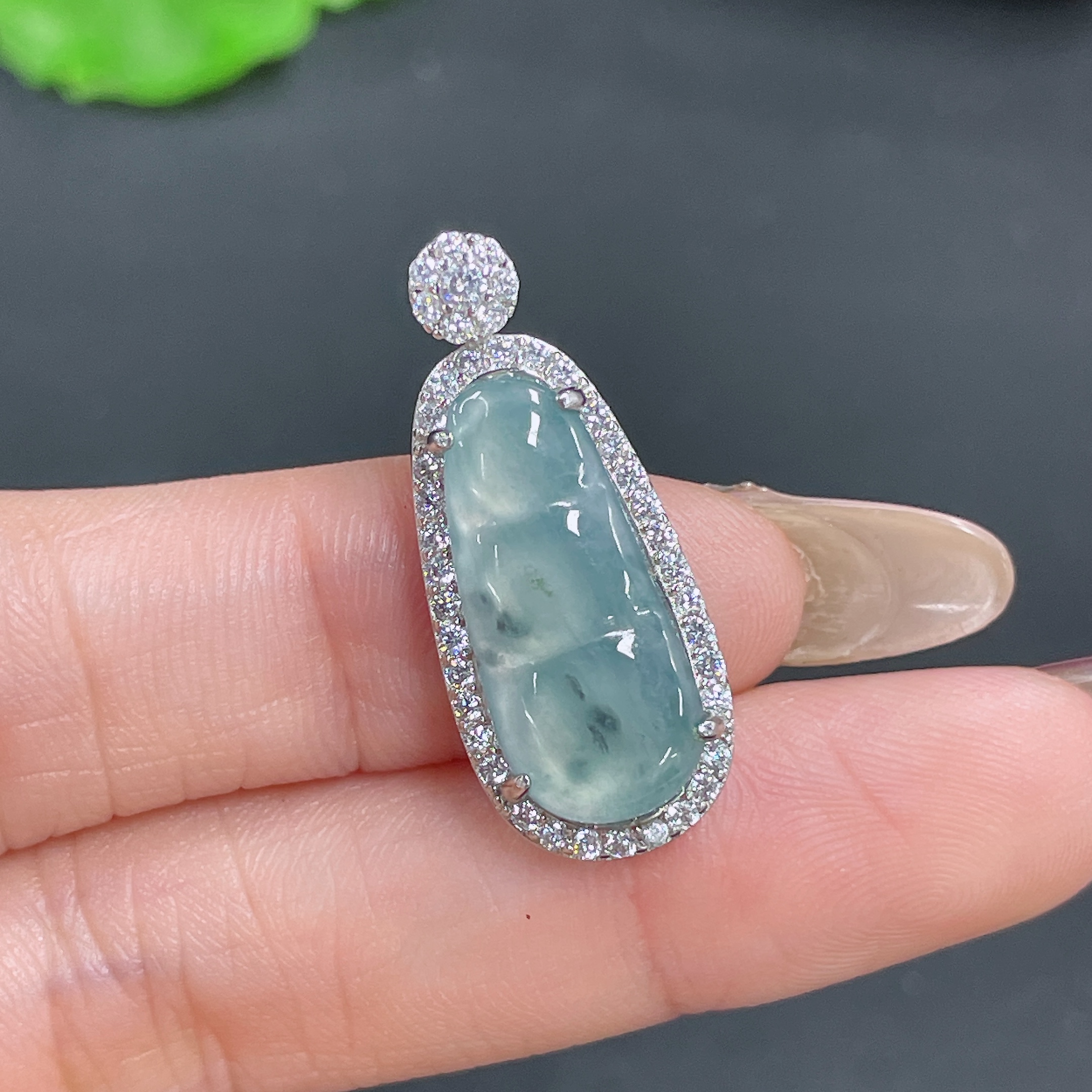 Jadeite Auspicious Bean Inlaid Pendant Non-Gold Total Weight Approx. 3.05g