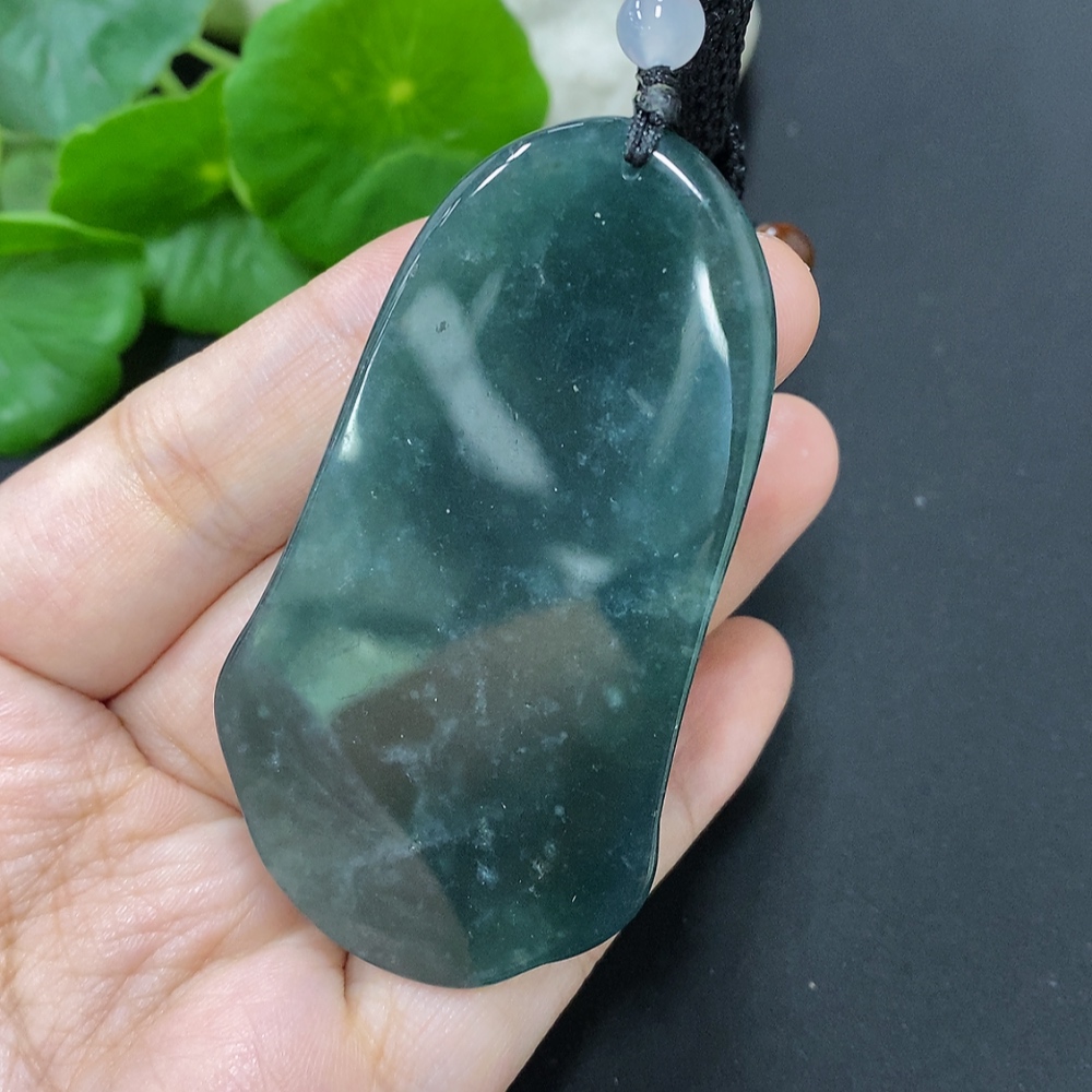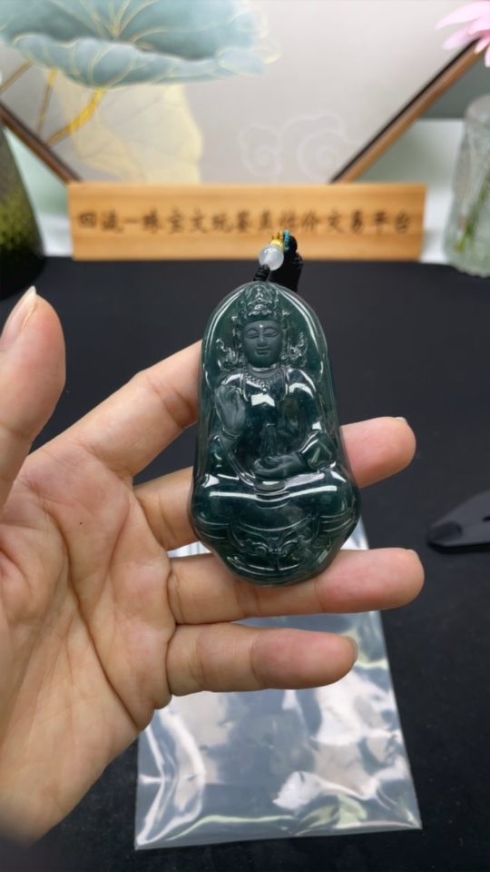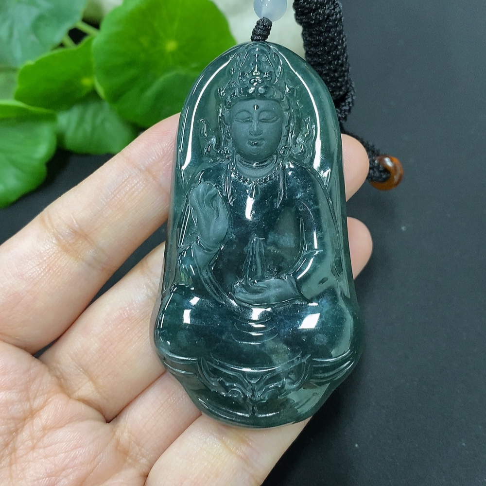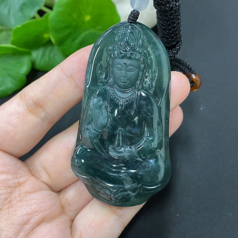 Jadeite Guanyin Pendant, Total Weight Including Rope Approximately 46g
