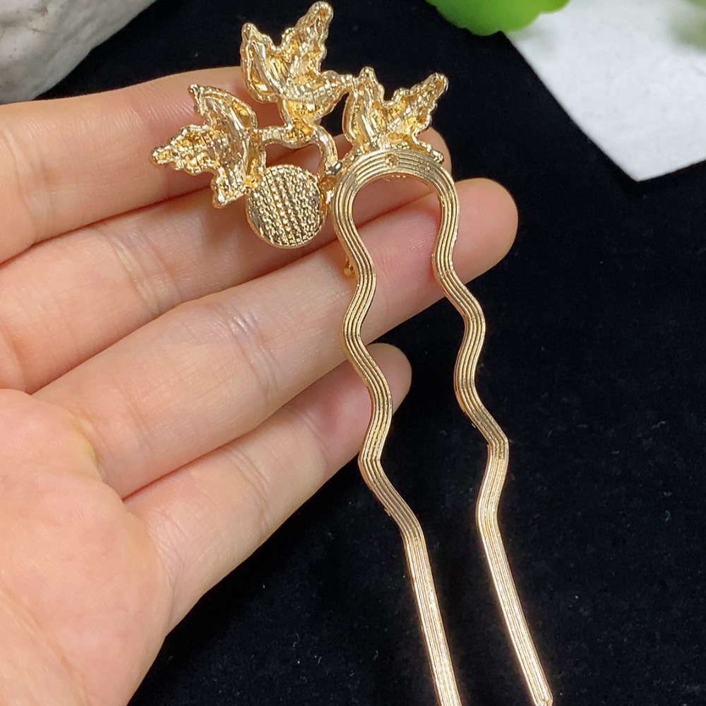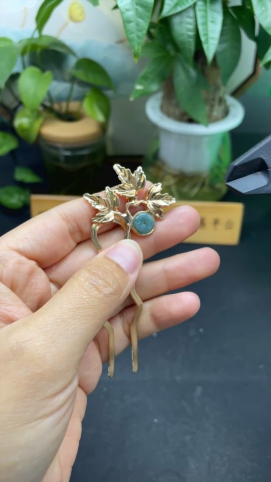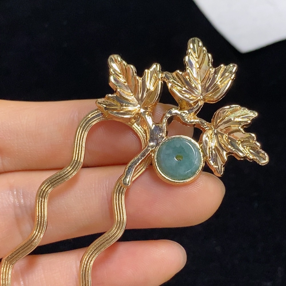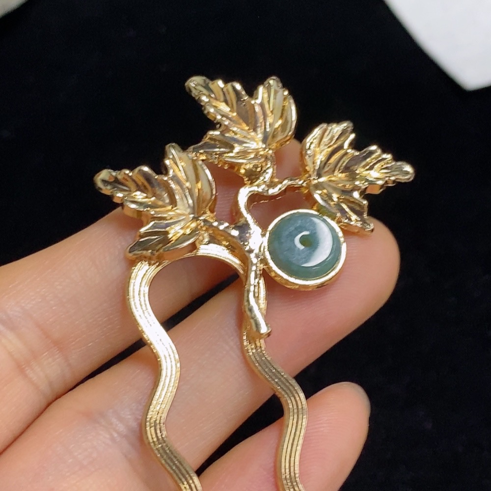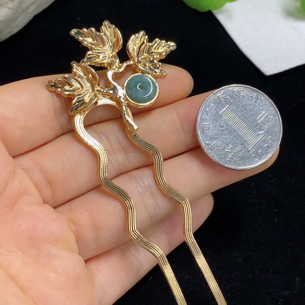 Jadeite Inlaid Hairpin Non-Gold Total Weight Approx. 7.82g
