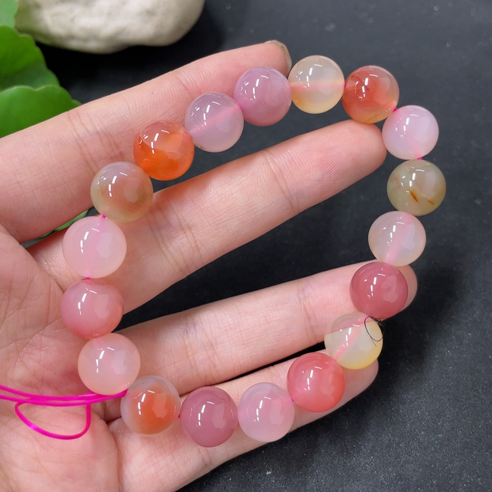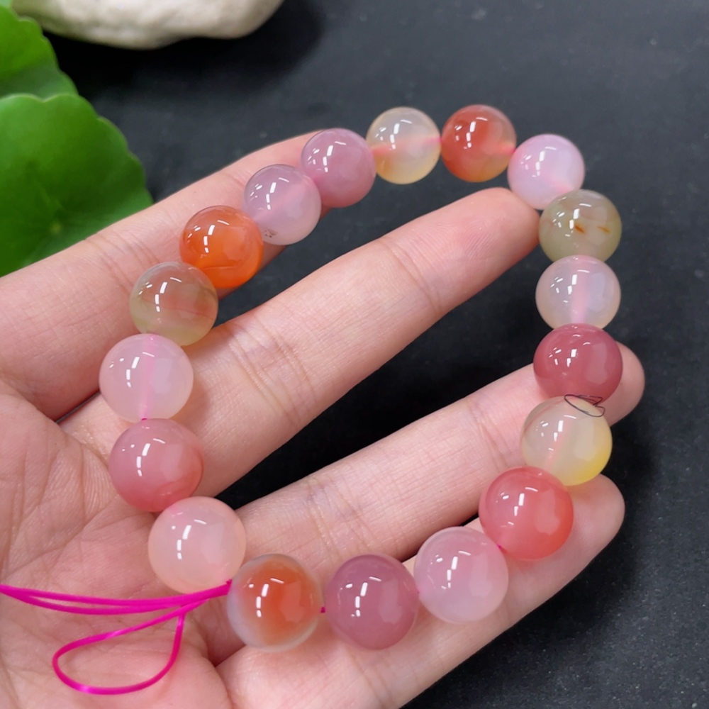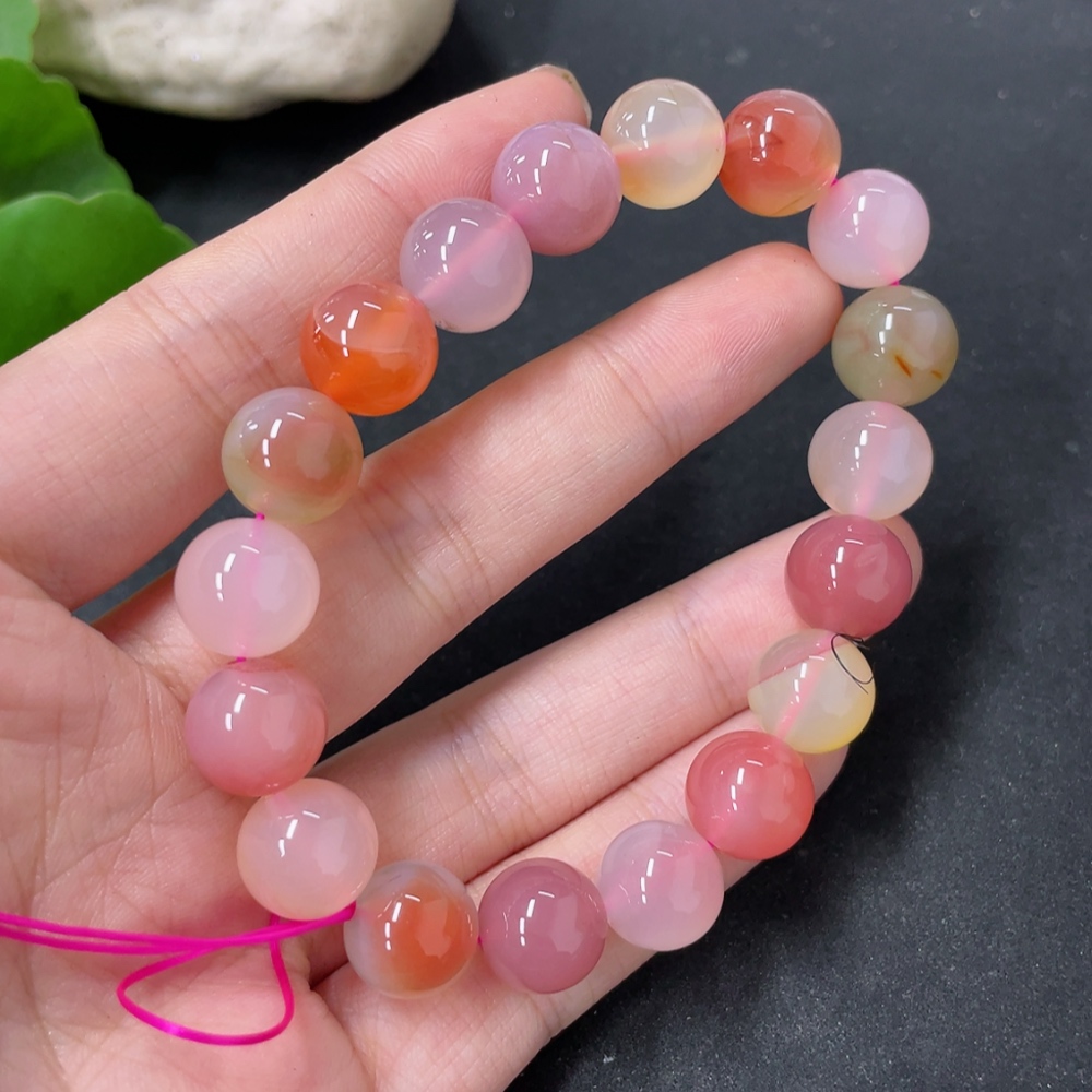 Yanyuan Agate Bracelet, approx. 11mm beads, total weight about 34.8g, contains other mineral components