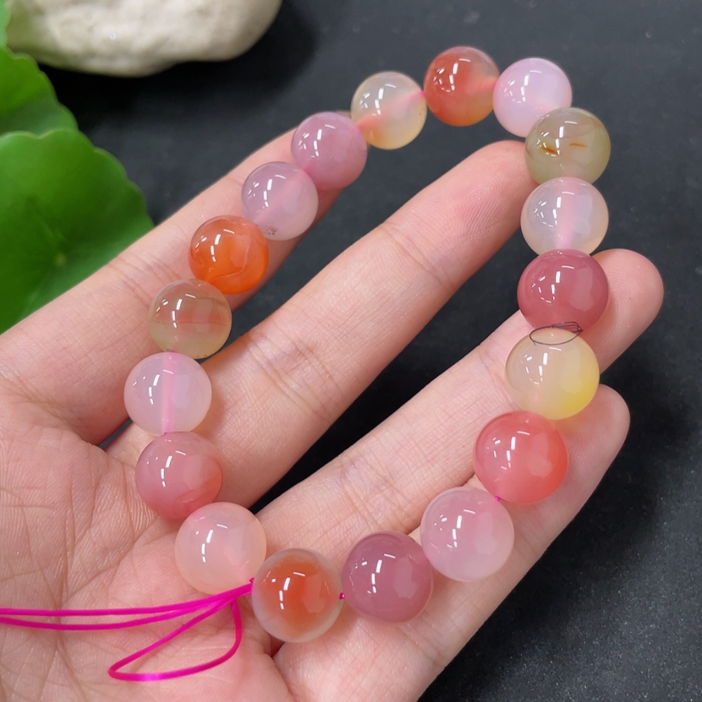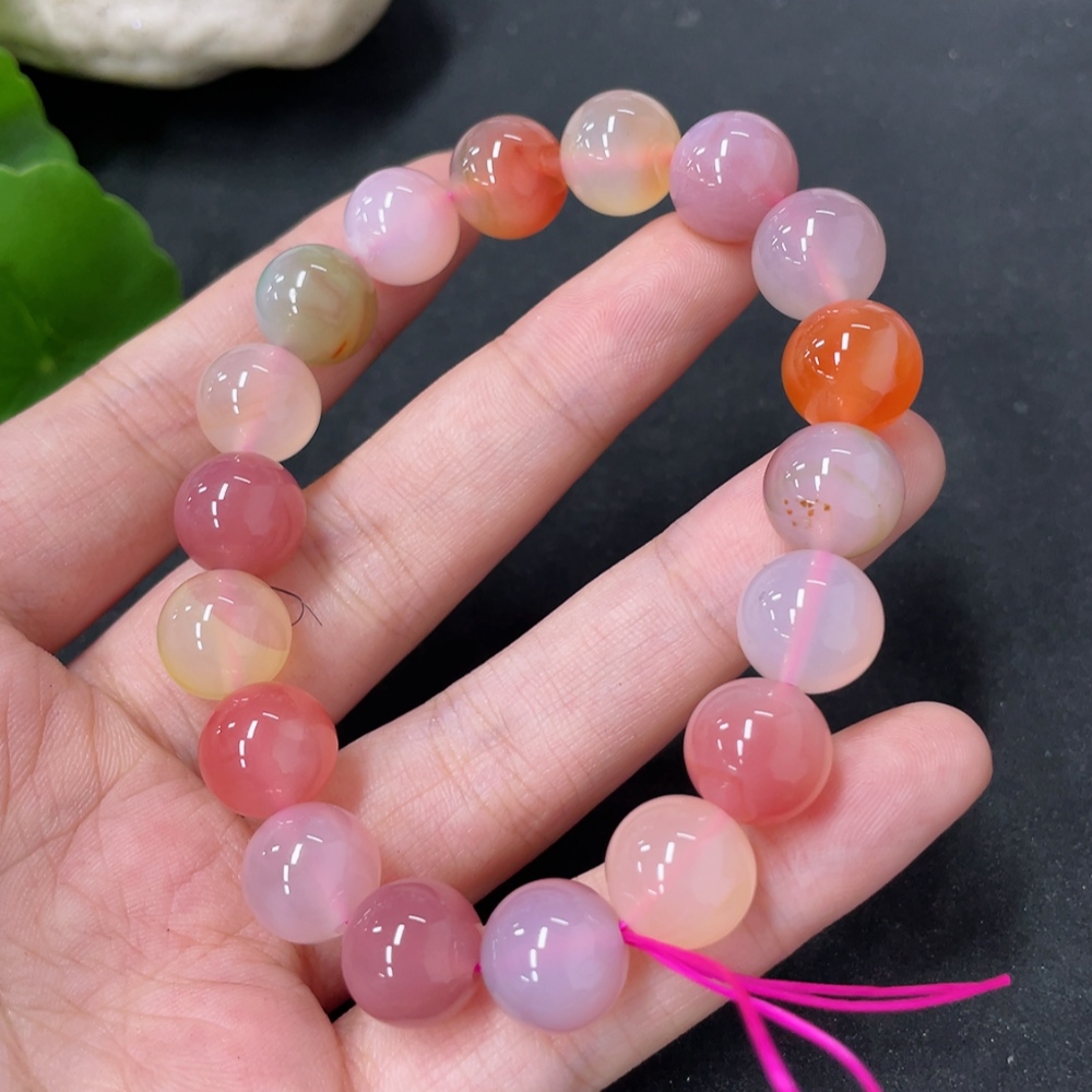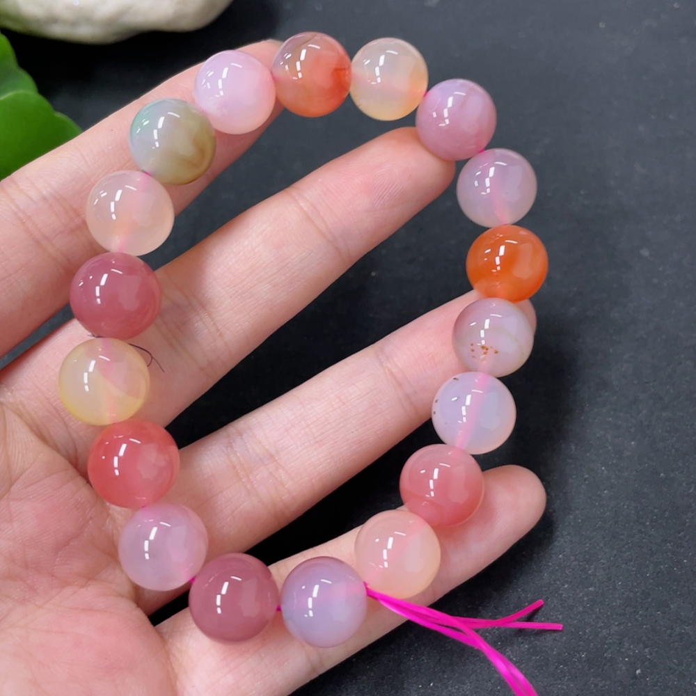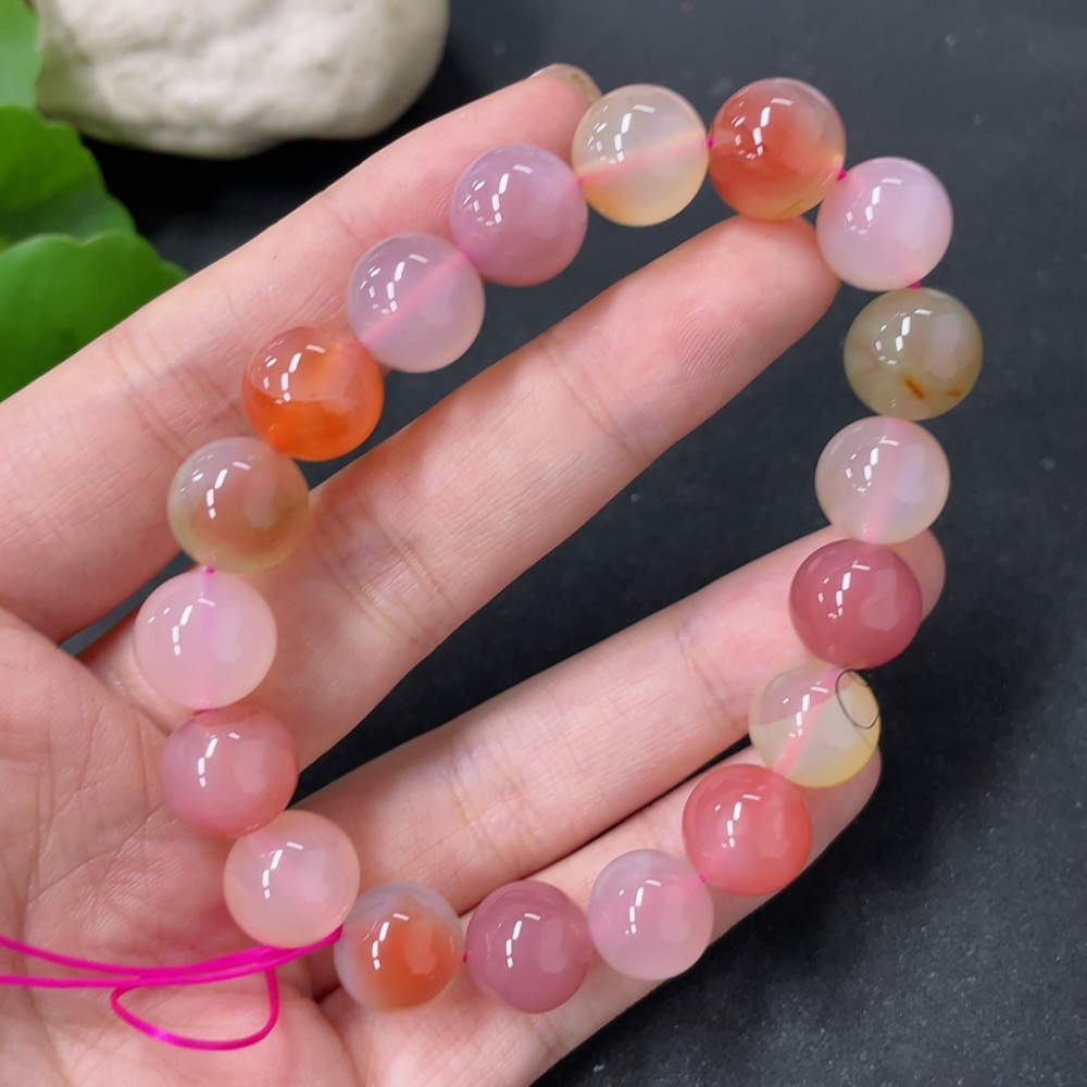 Yanyuan Agate Bracelet, approx. 11mm beads, total weight about 34.8g, contains other mineral components