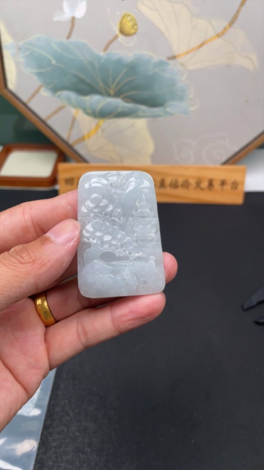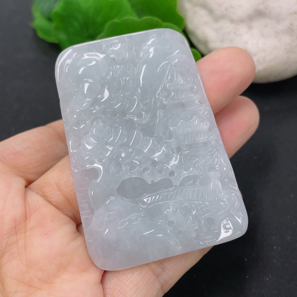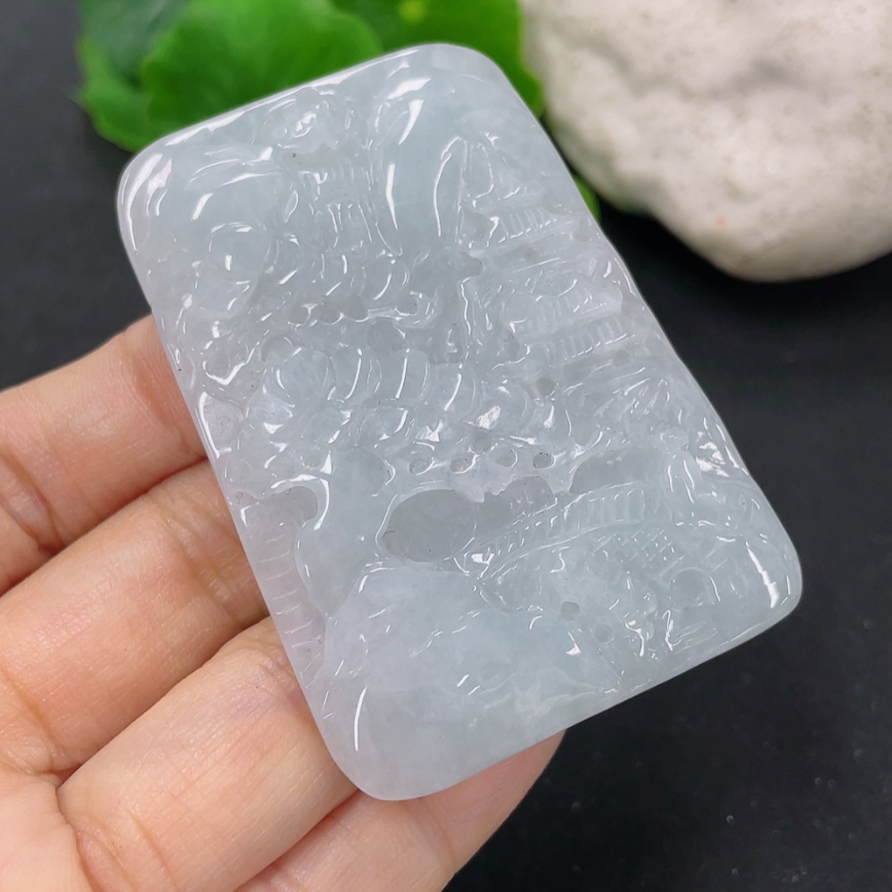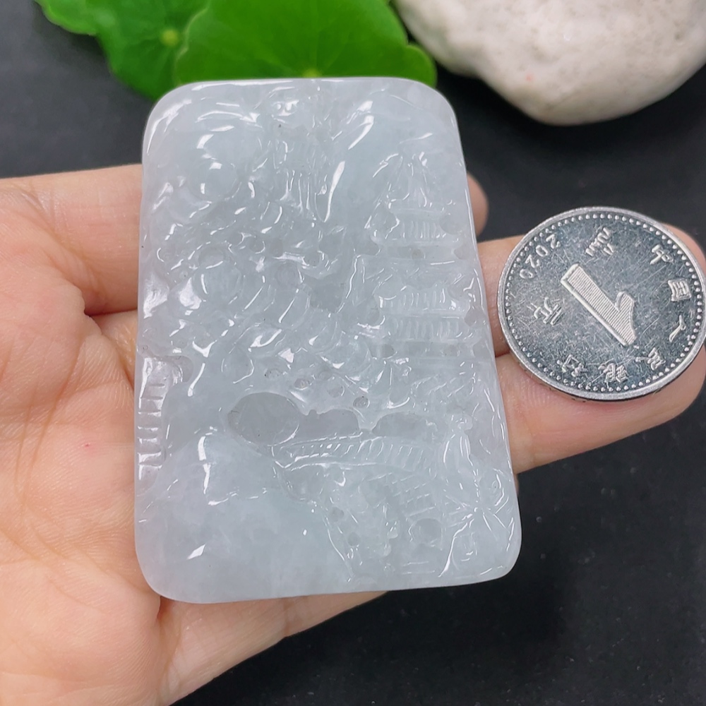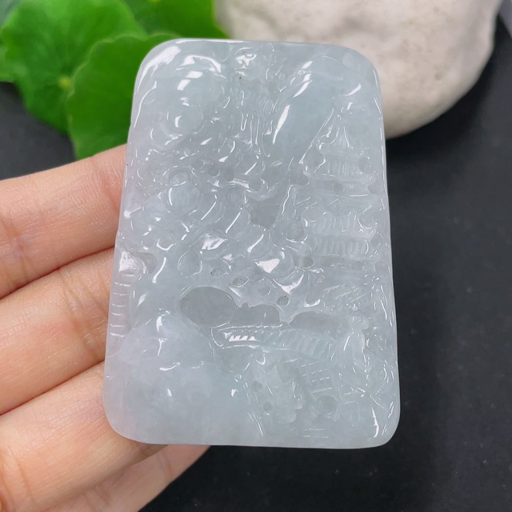 Jadeite Landscape Pendant, Total Weight Approximately 33.6g