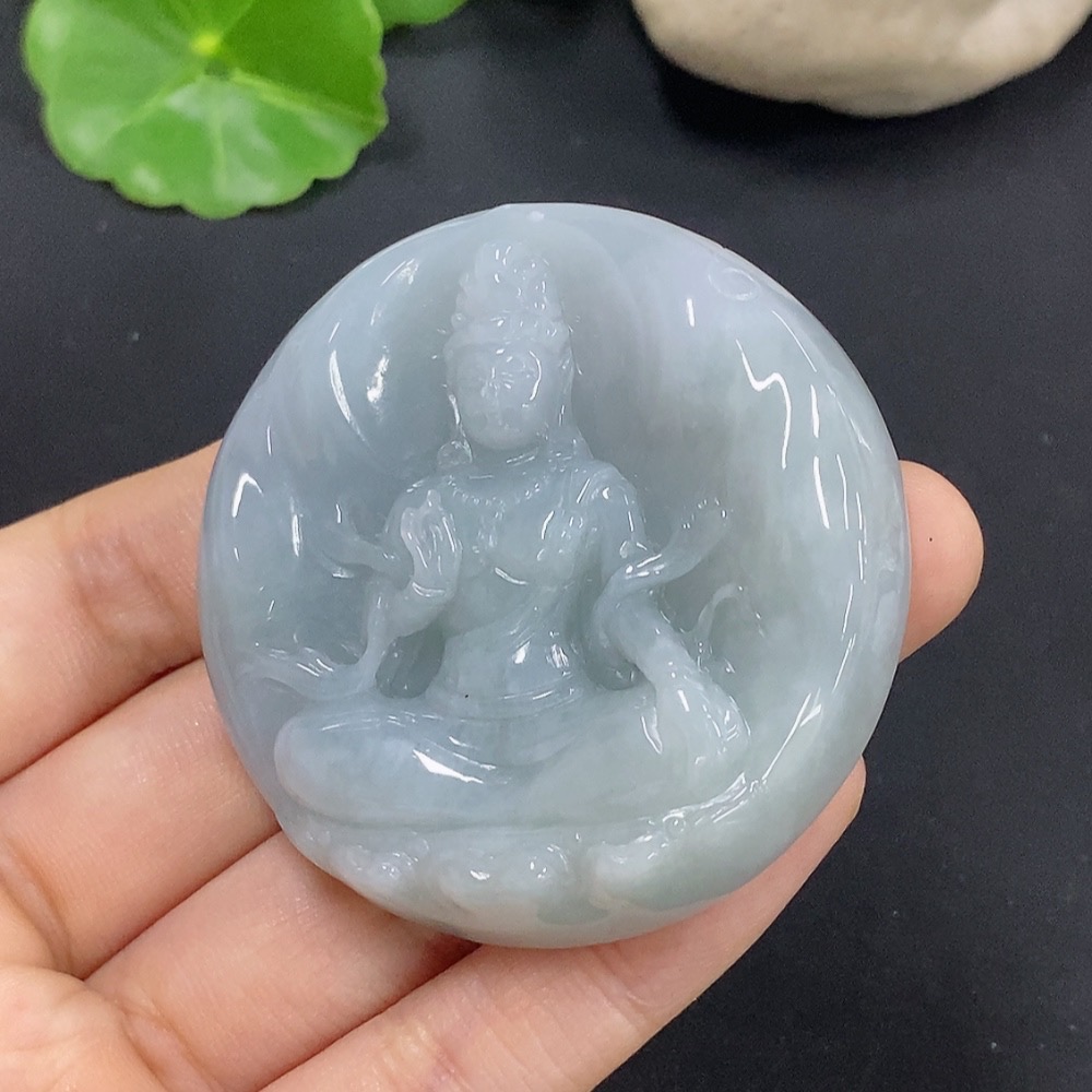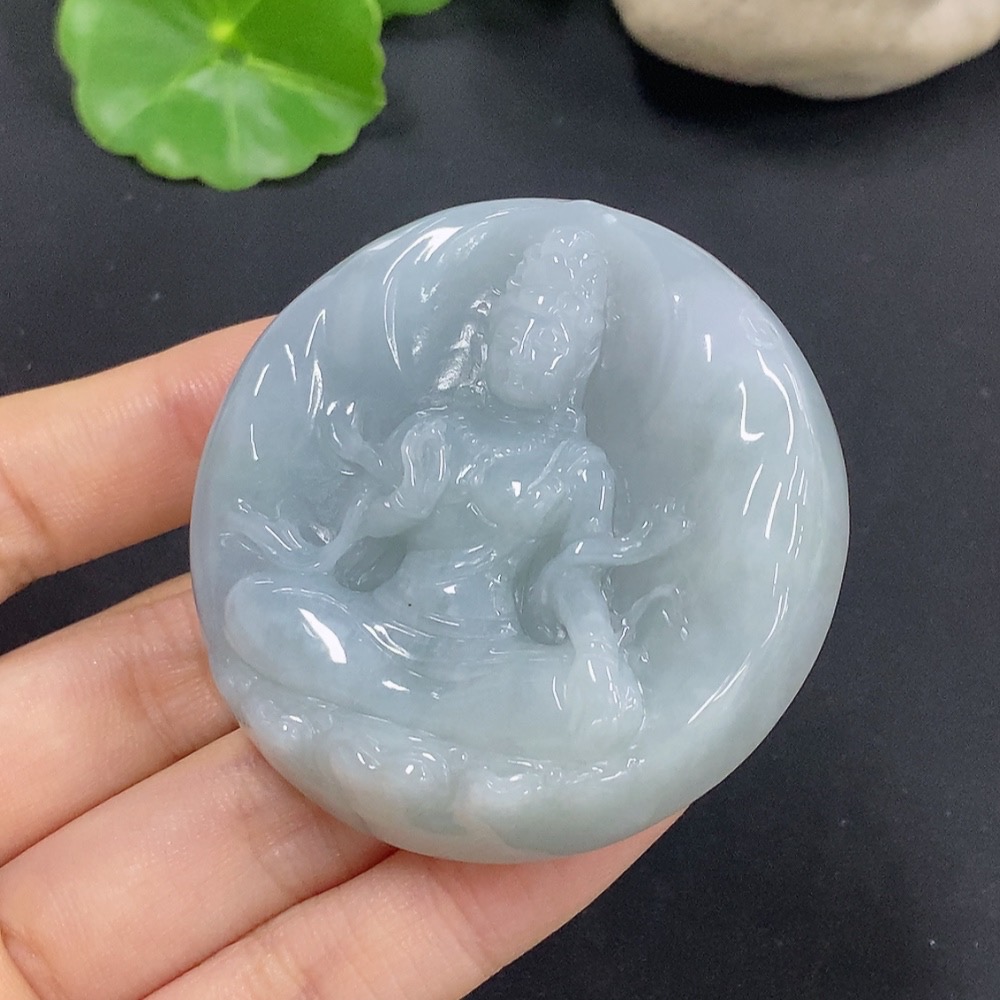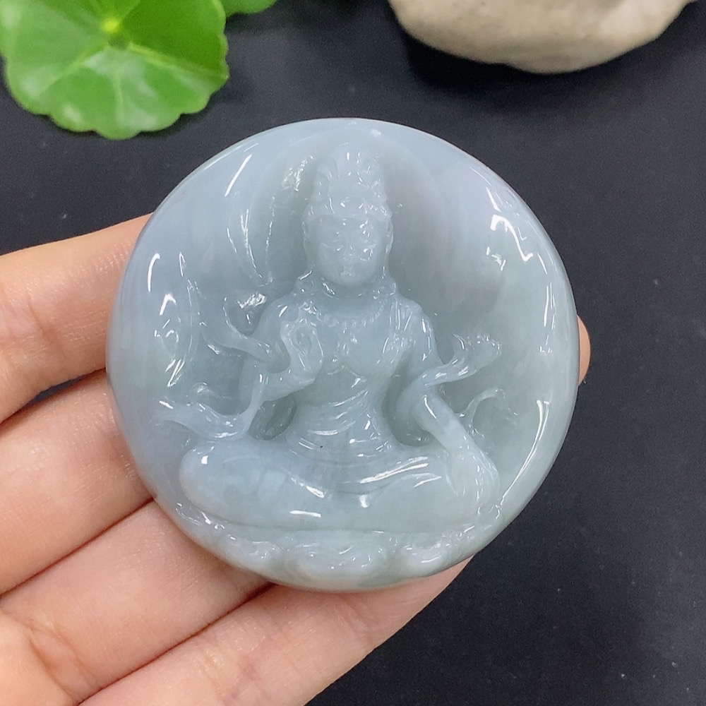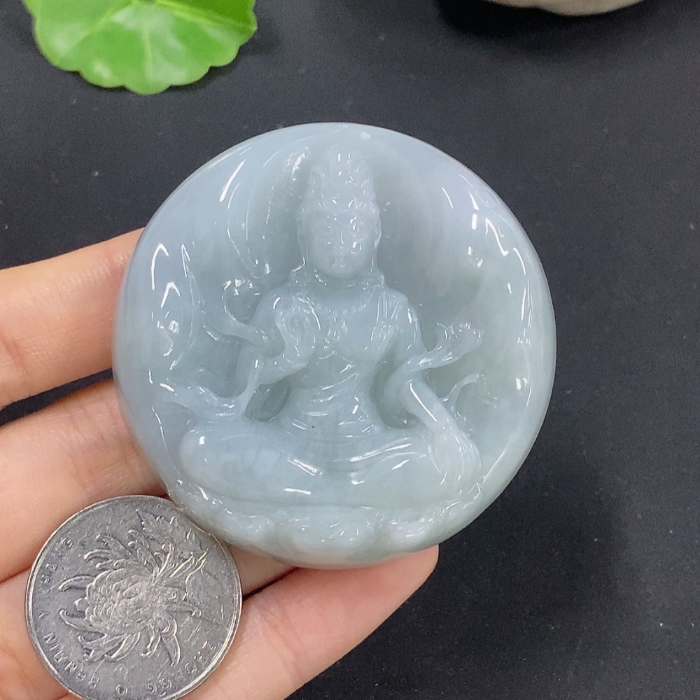 Jadeite Guanyin Pendant, Total Weight Approximately 65.5g