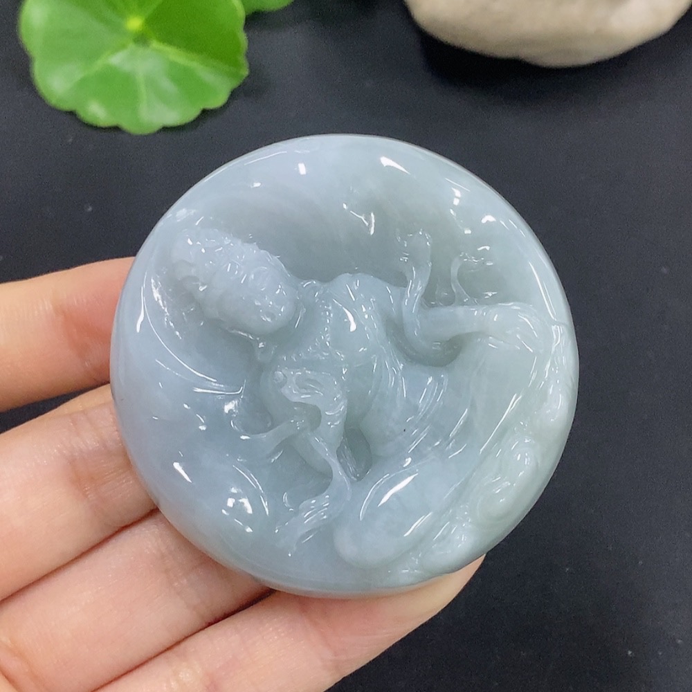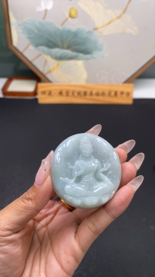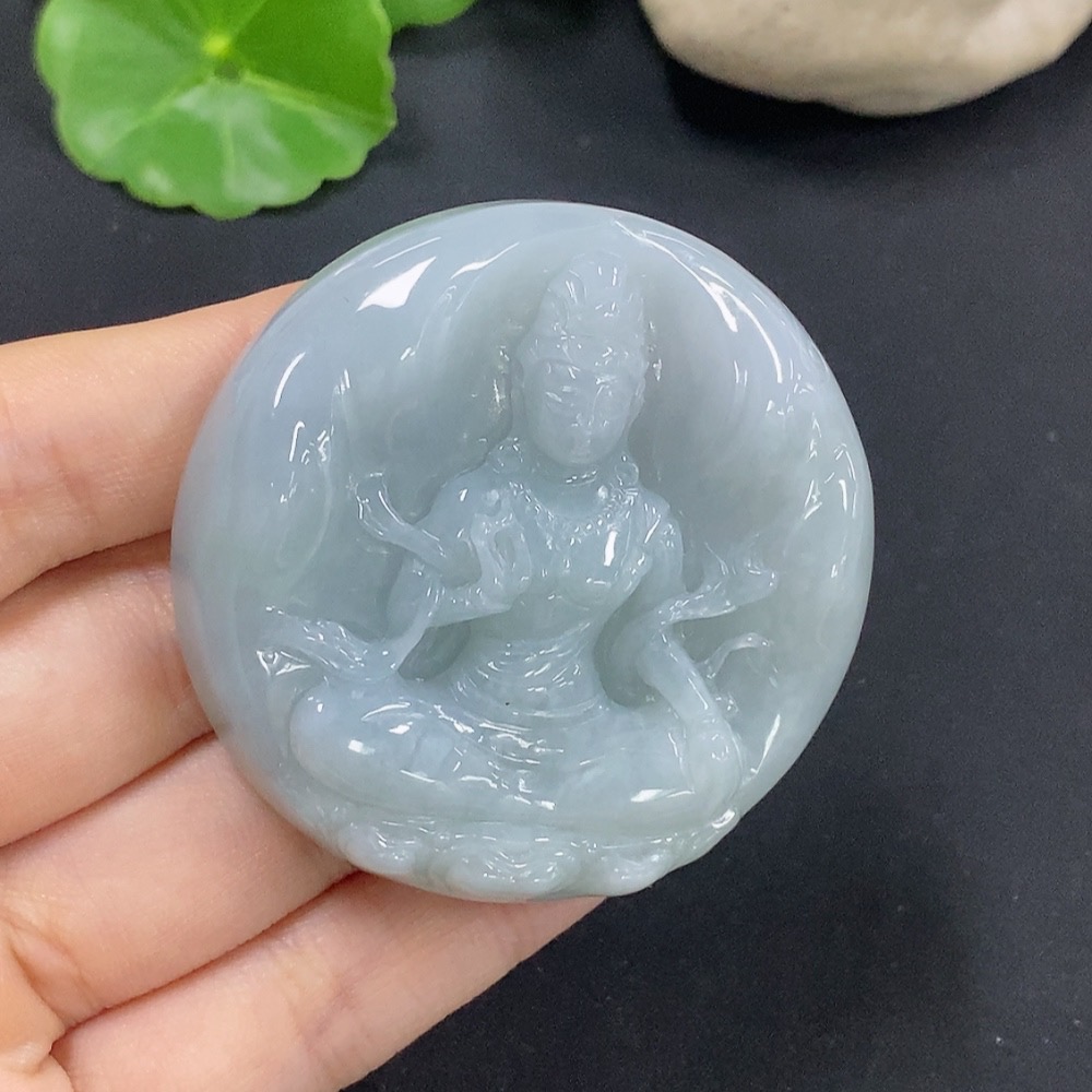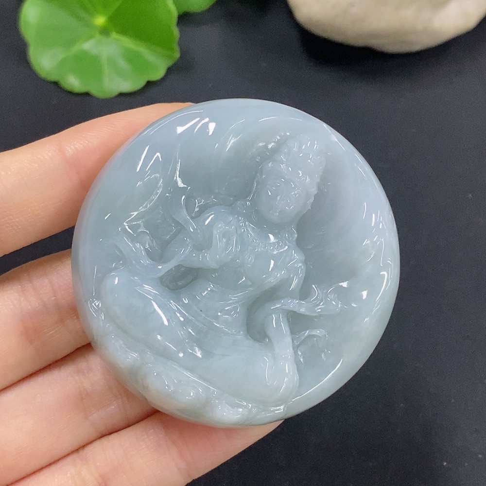 Jadeite Guanyin Pendant, Total Weight Approximately 65.5g