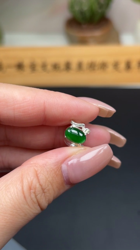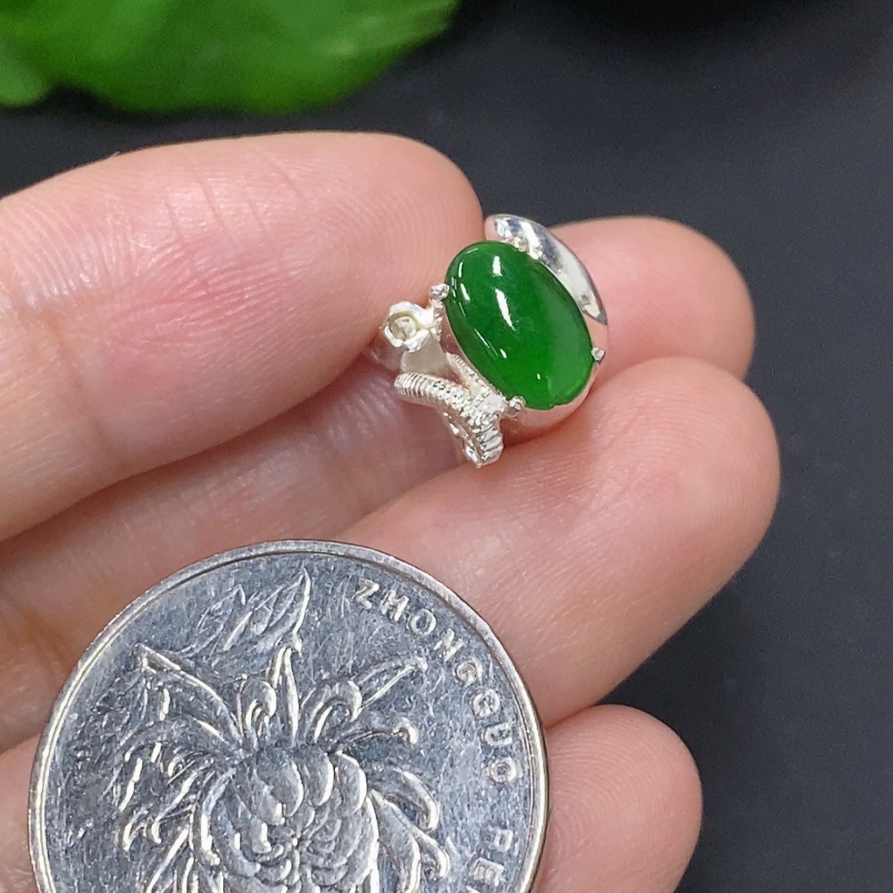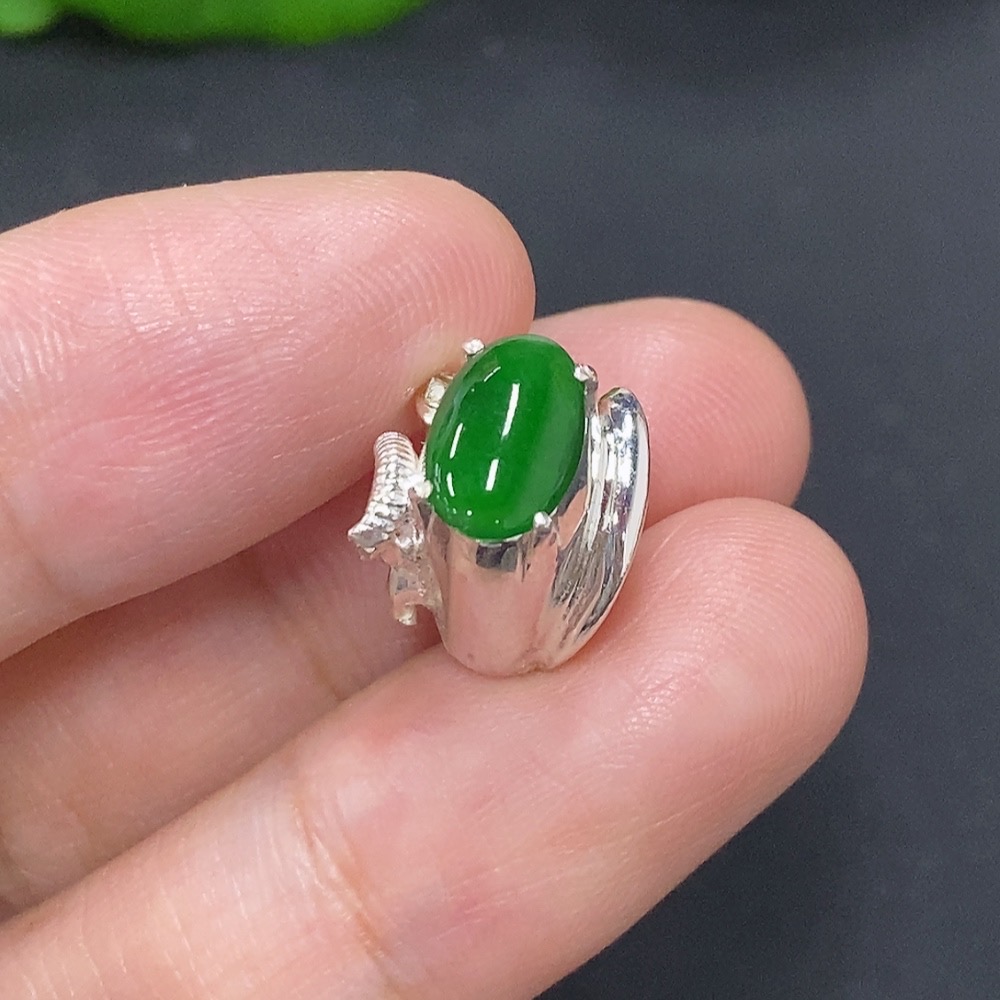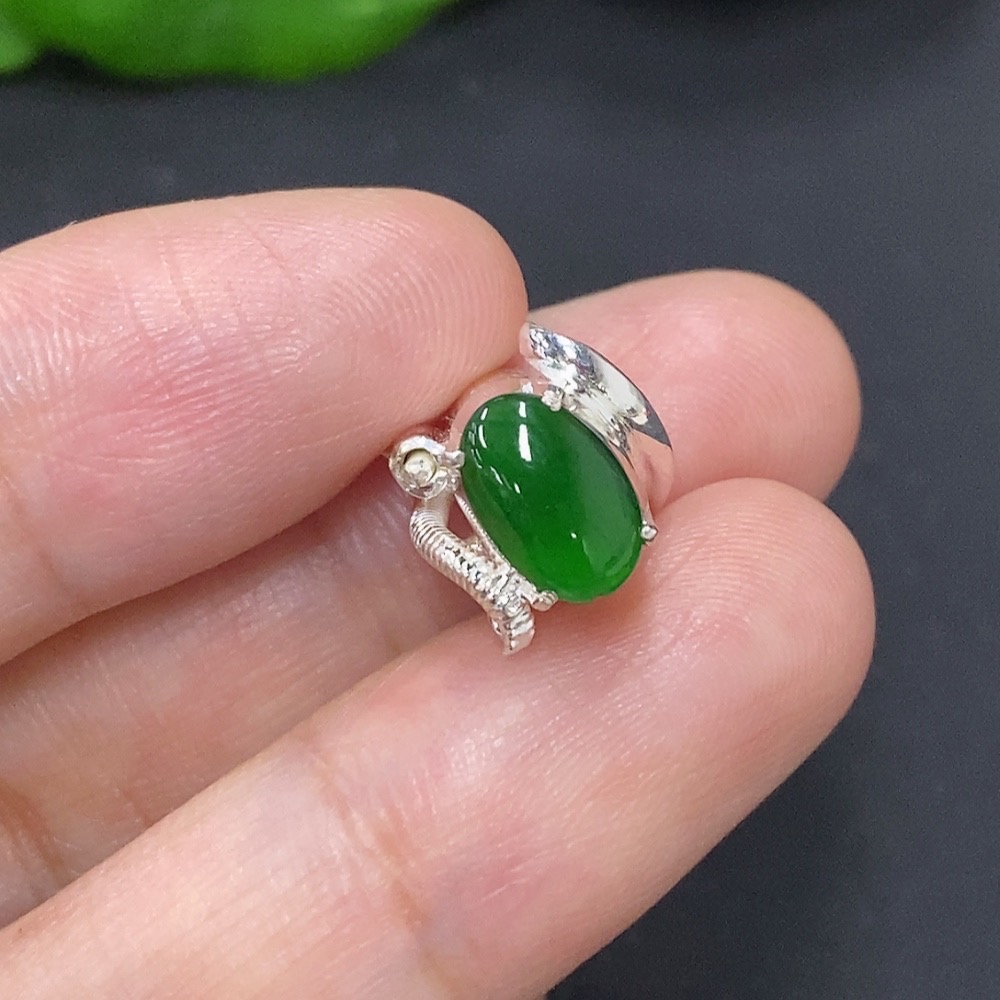 Jadeite Cabochon Non-Gold Inlaid Total Weight Approx. 3.9g