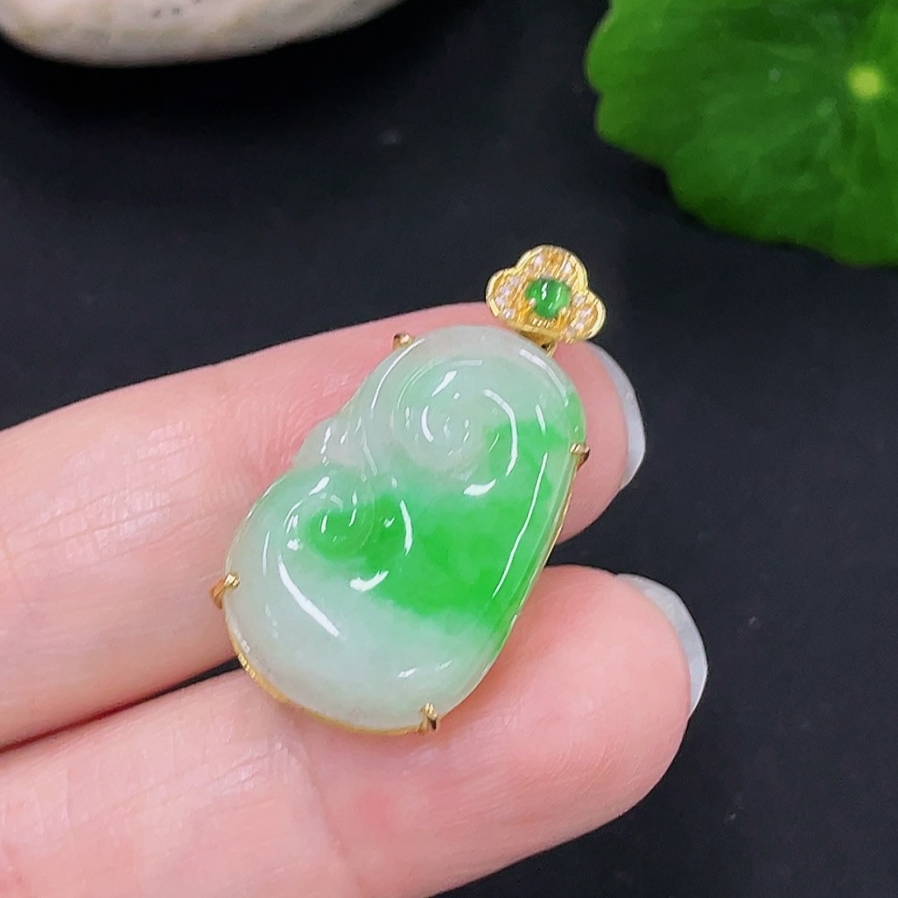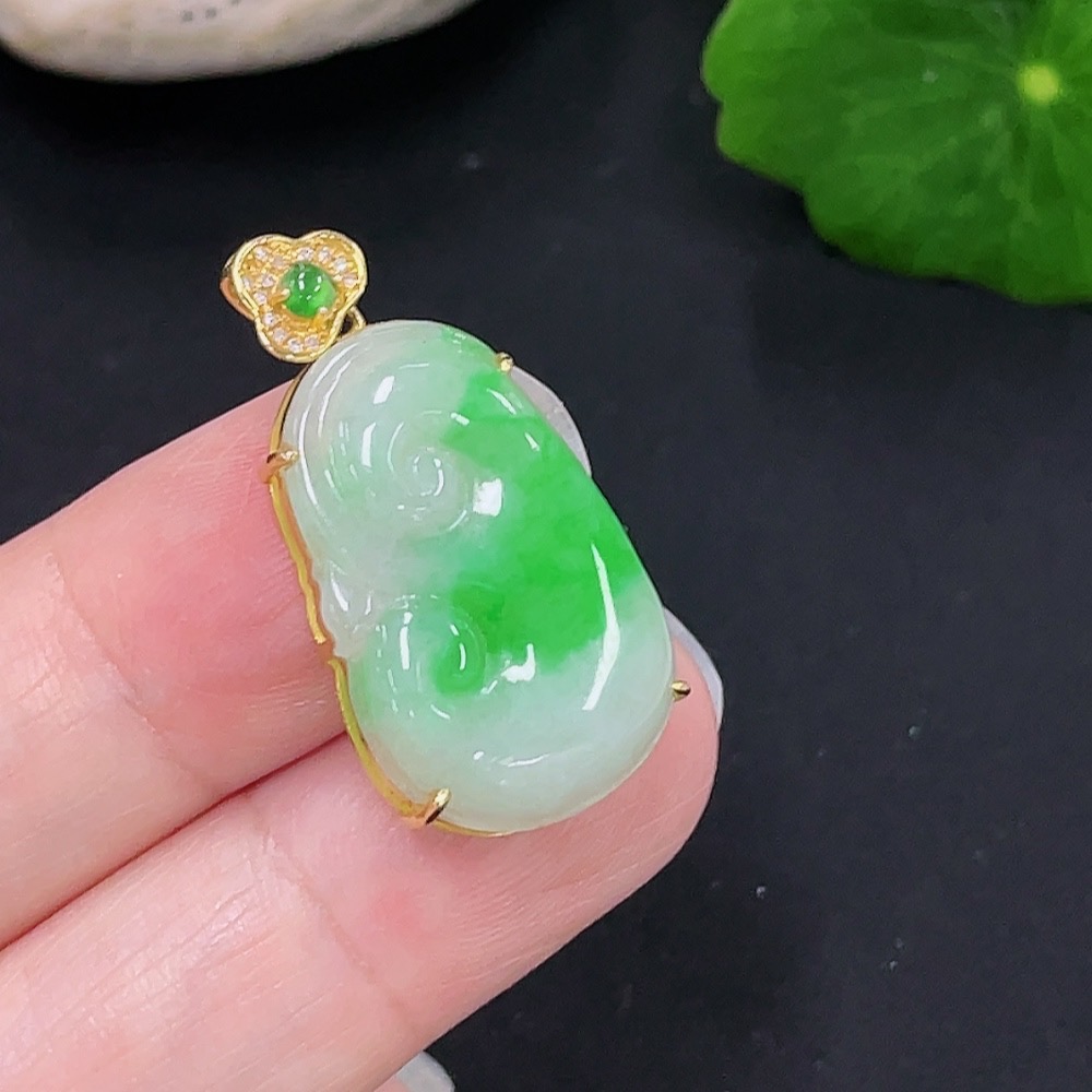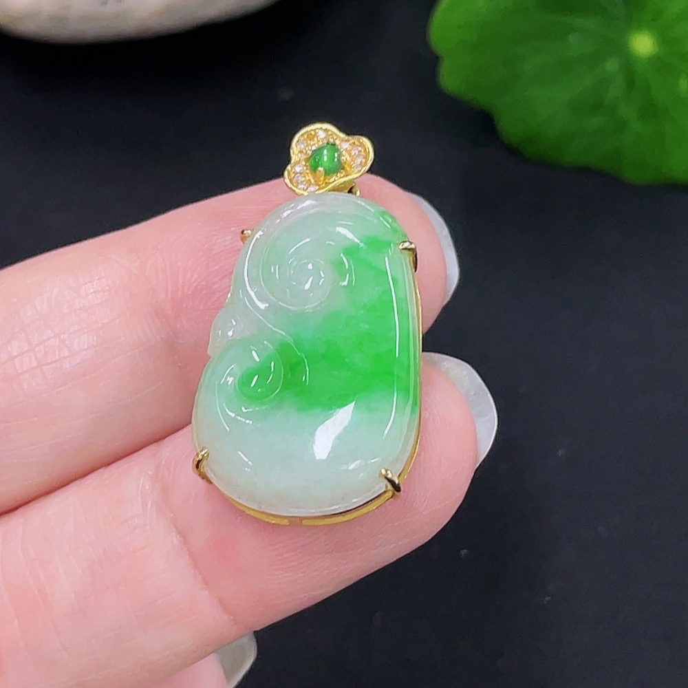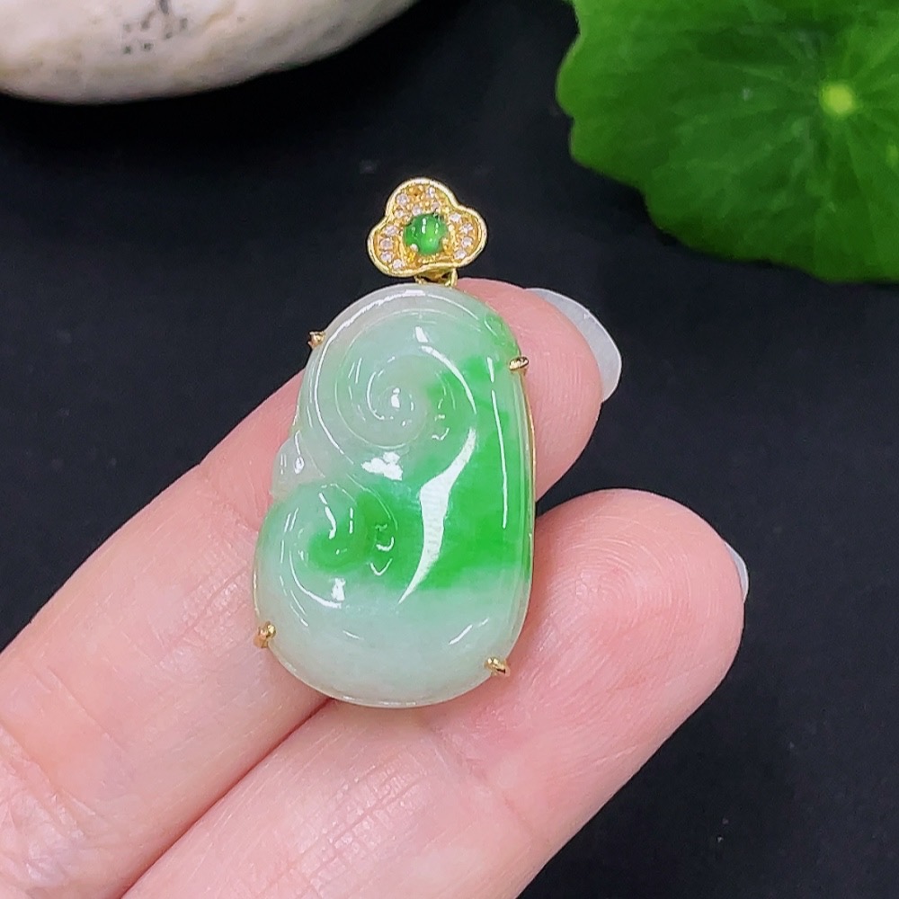 Jadeite Ruyi Pendant with 18K Gold Setting, No Diamond, Total Weight Approx. 3.25g
