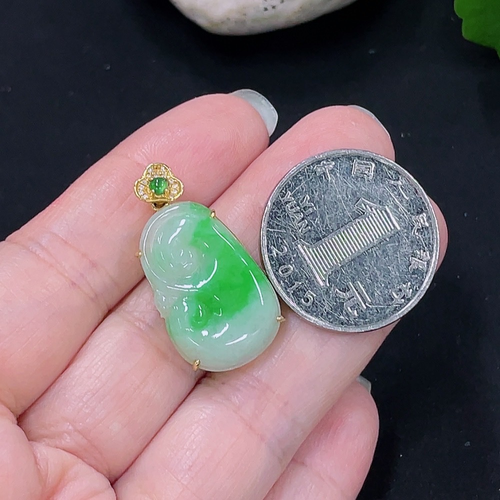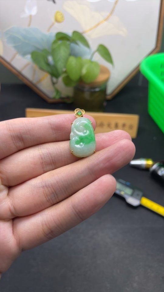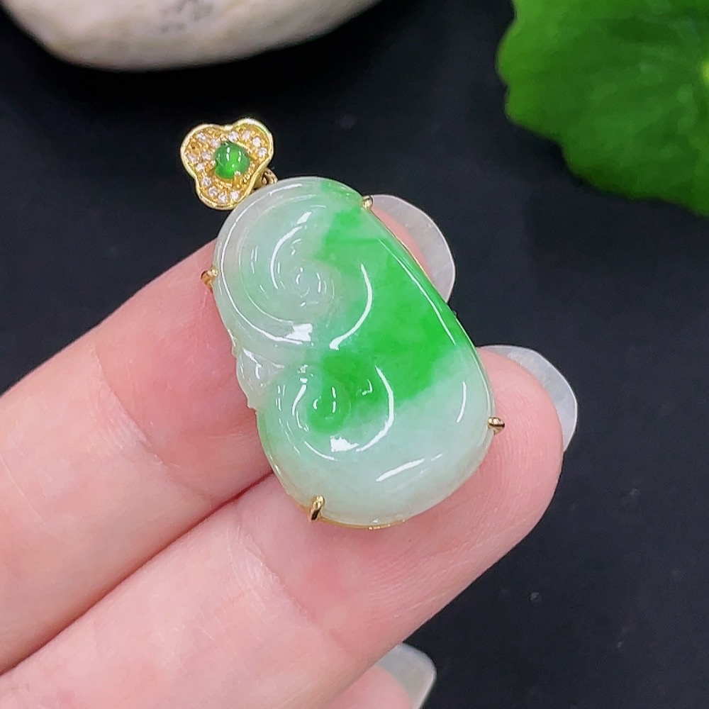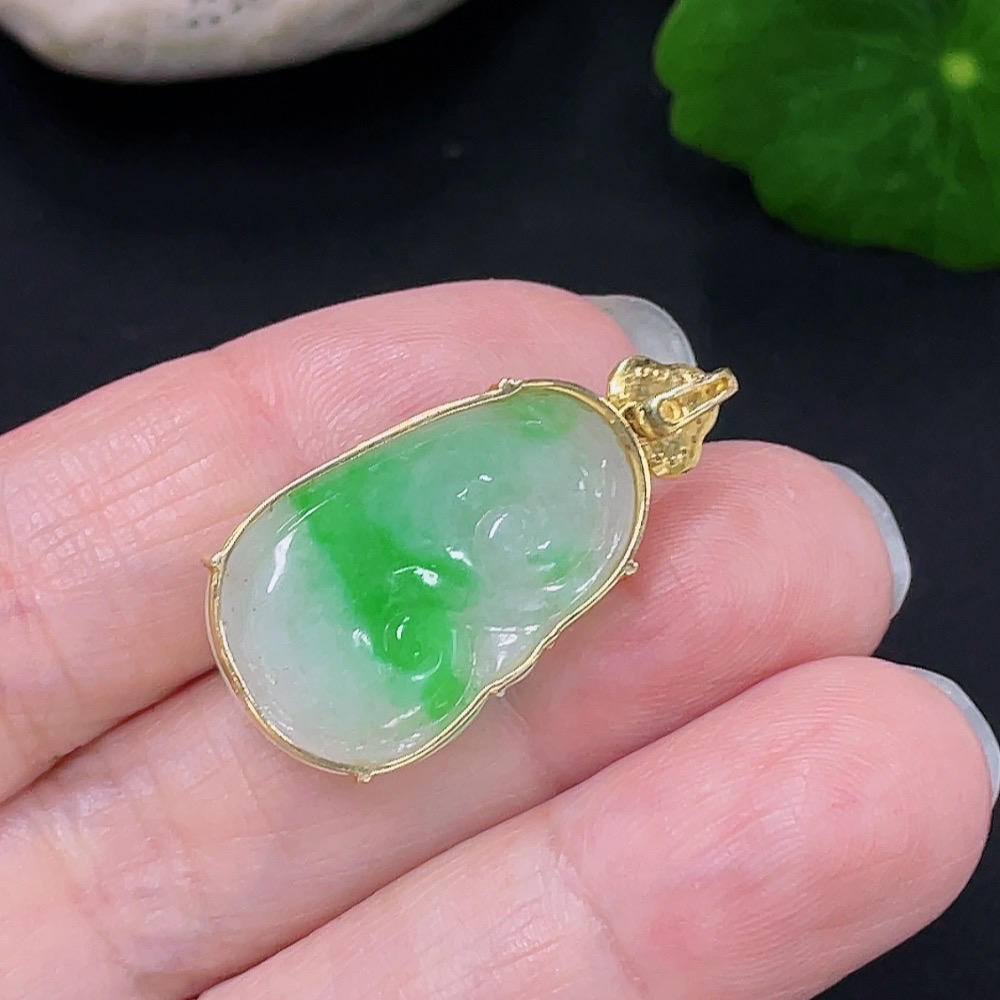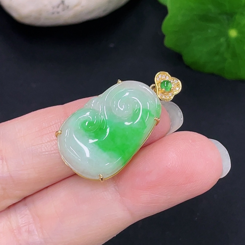 Jadeite Ruyi Pendant with 18K Gold Setting, No Diamond, Total Weight Approx. 3.25g