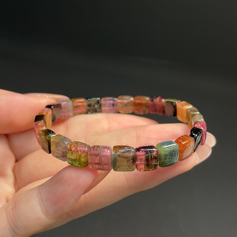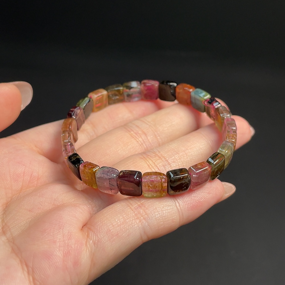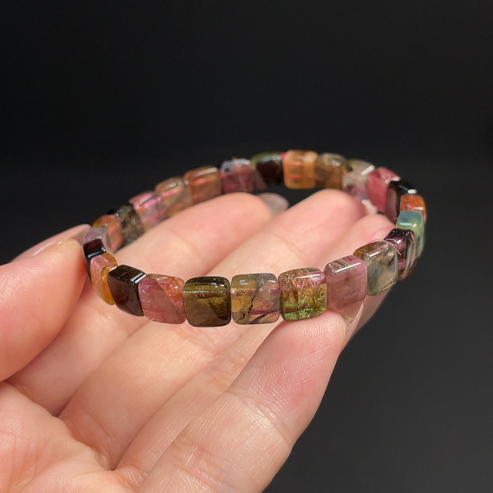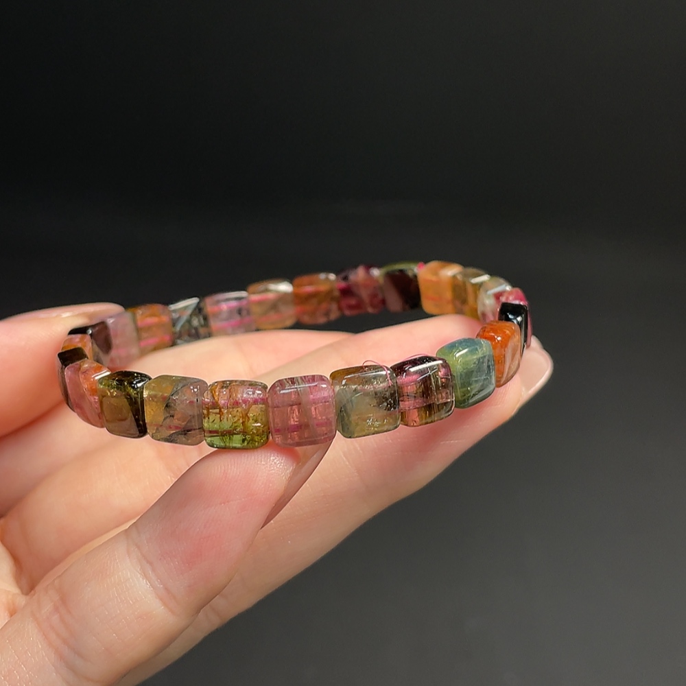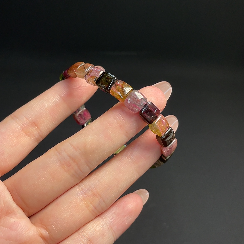 Tourmaline Bracelet with Visible Organic Inclusions, Total Weight Approx. 13.12g, Bead Size About 7.2mm
