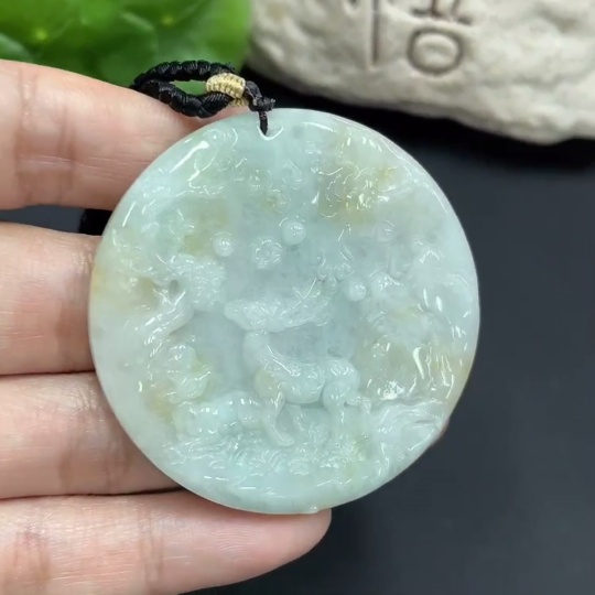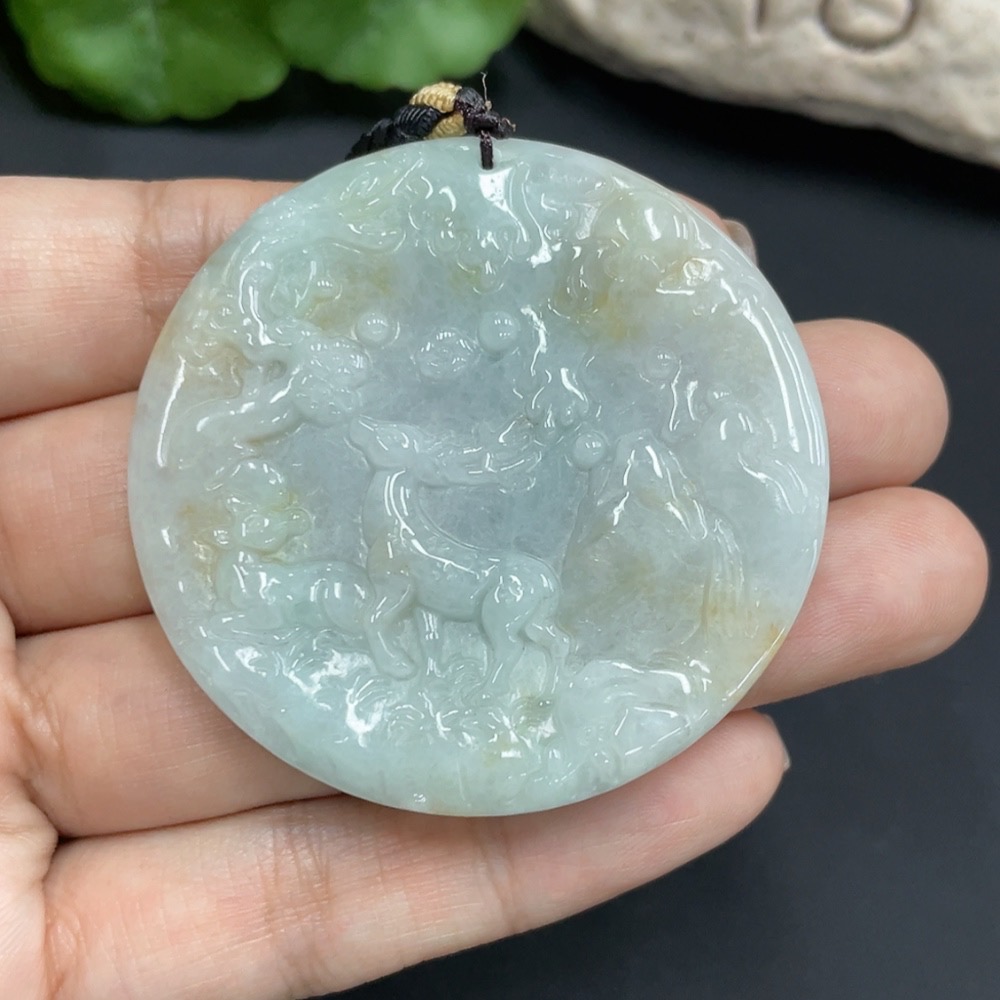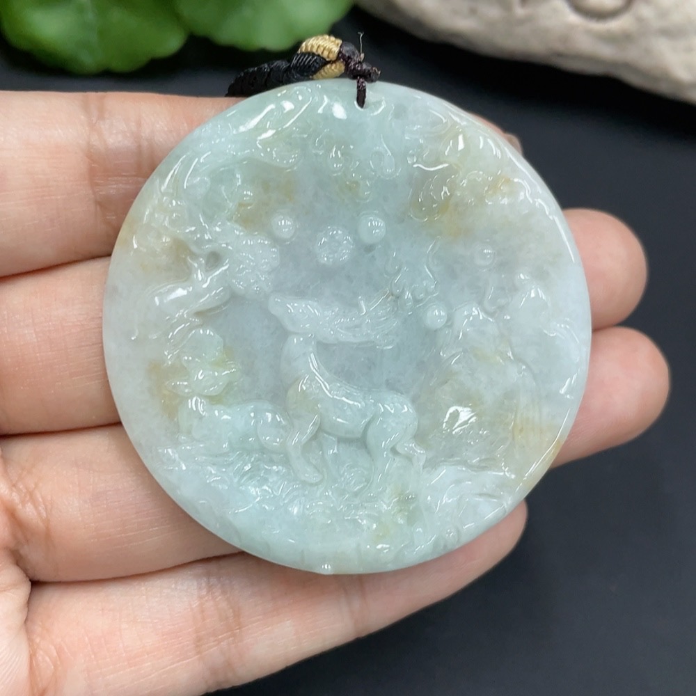 Jadeite Pendant "Deer with You" Total Weight 37.923g