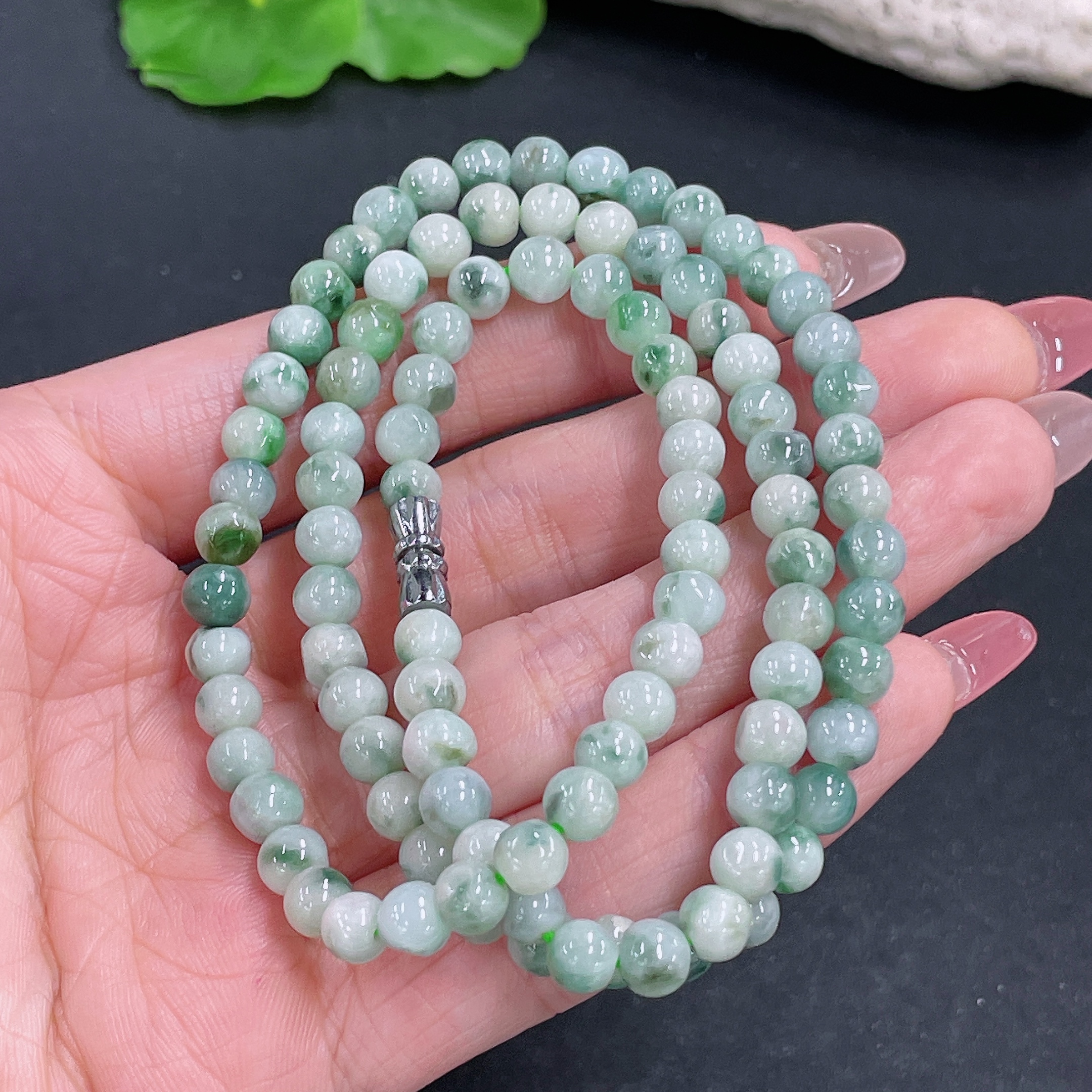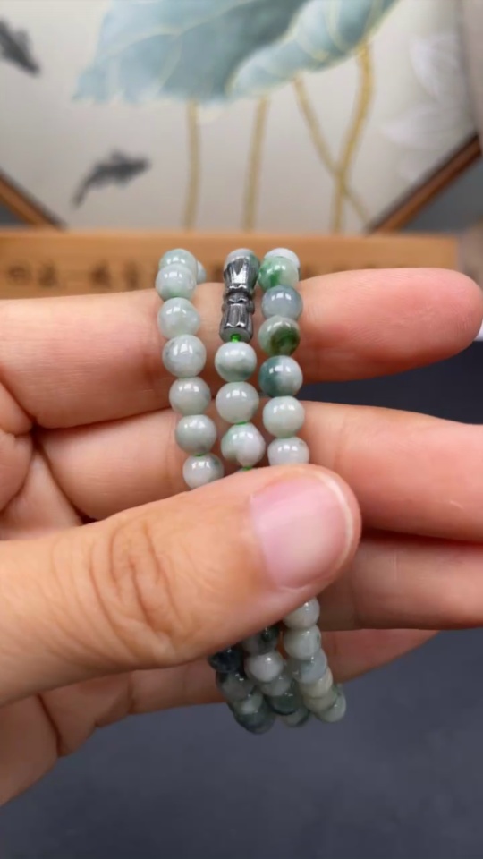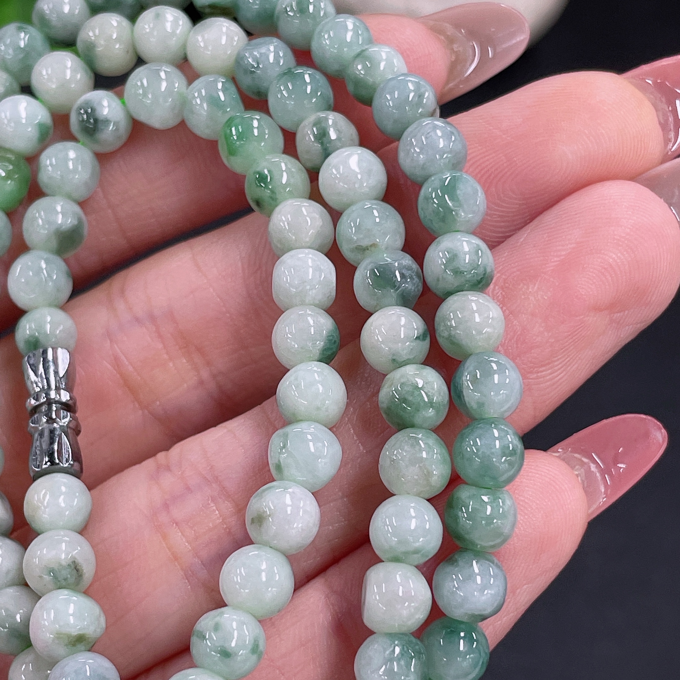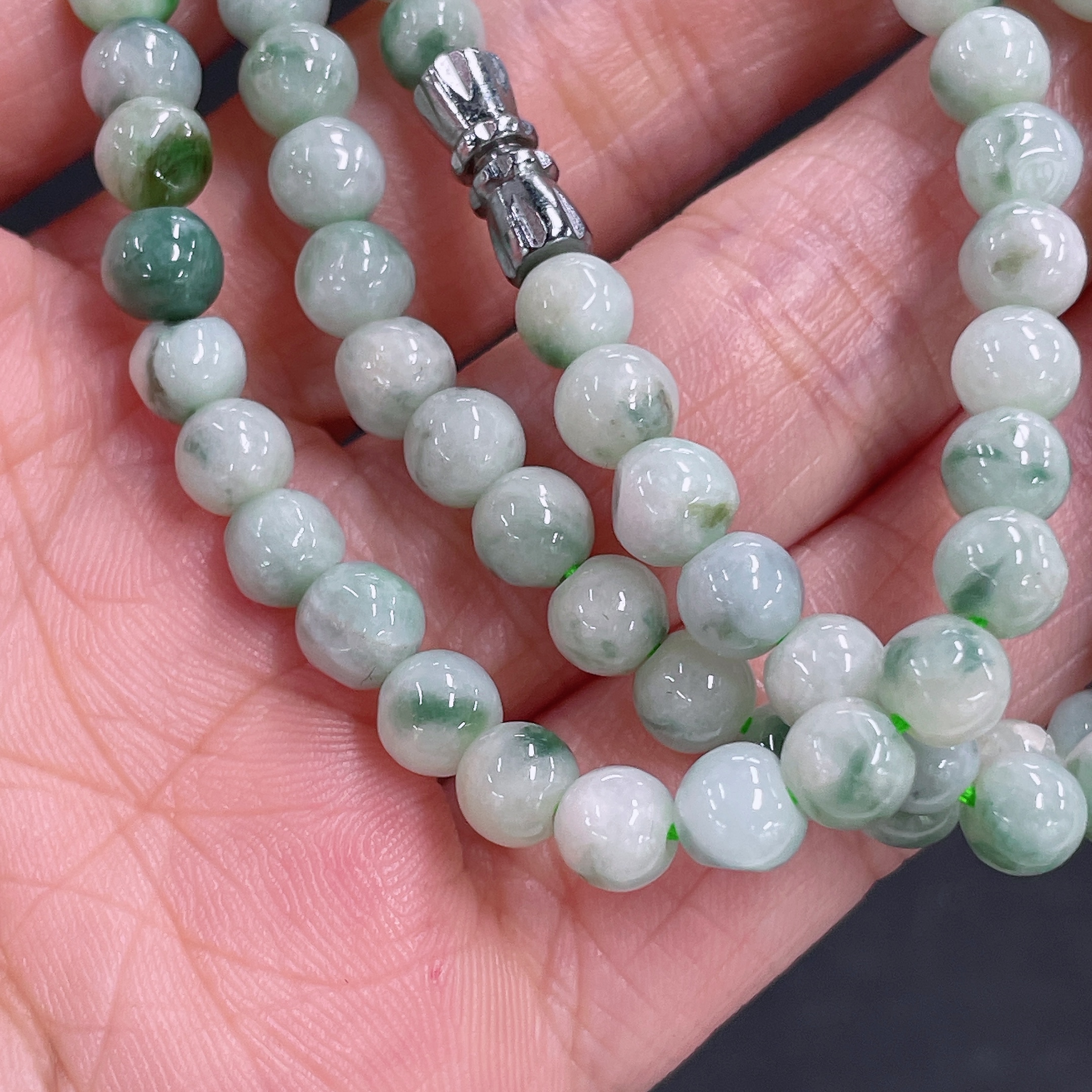 Jadeite bead strand approx. 5.5mm, total weight approx. 29.54g, containing other mineral components
