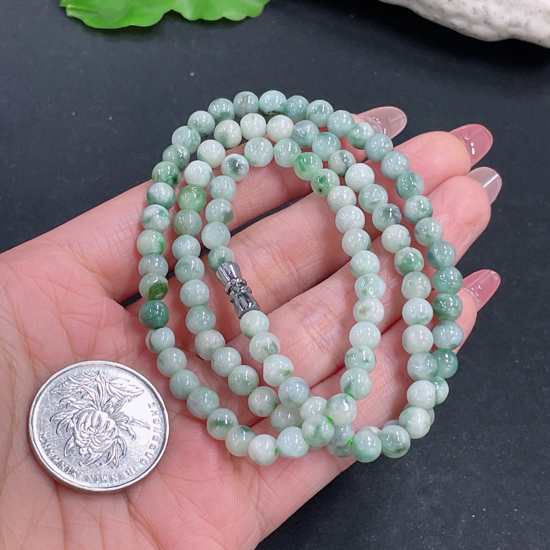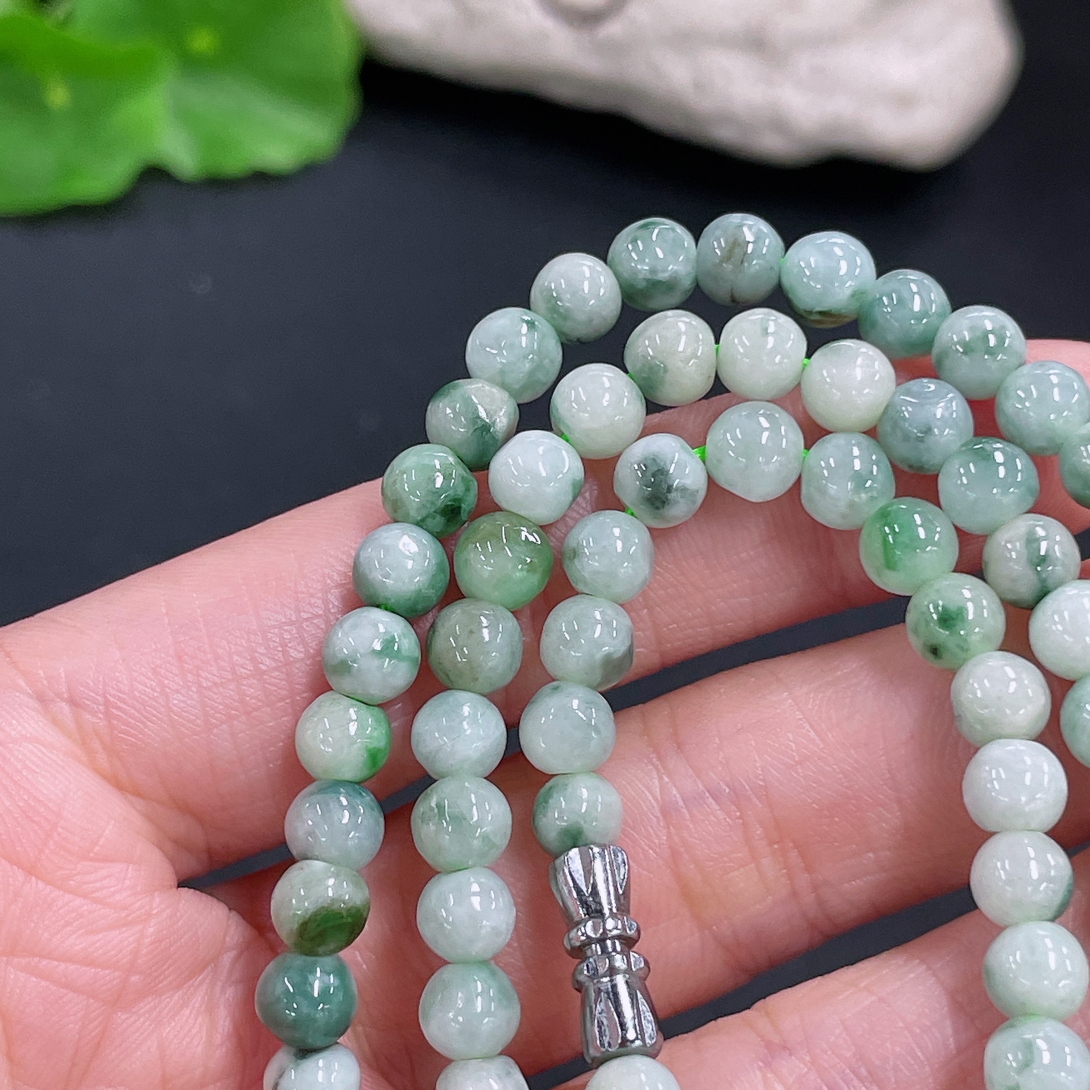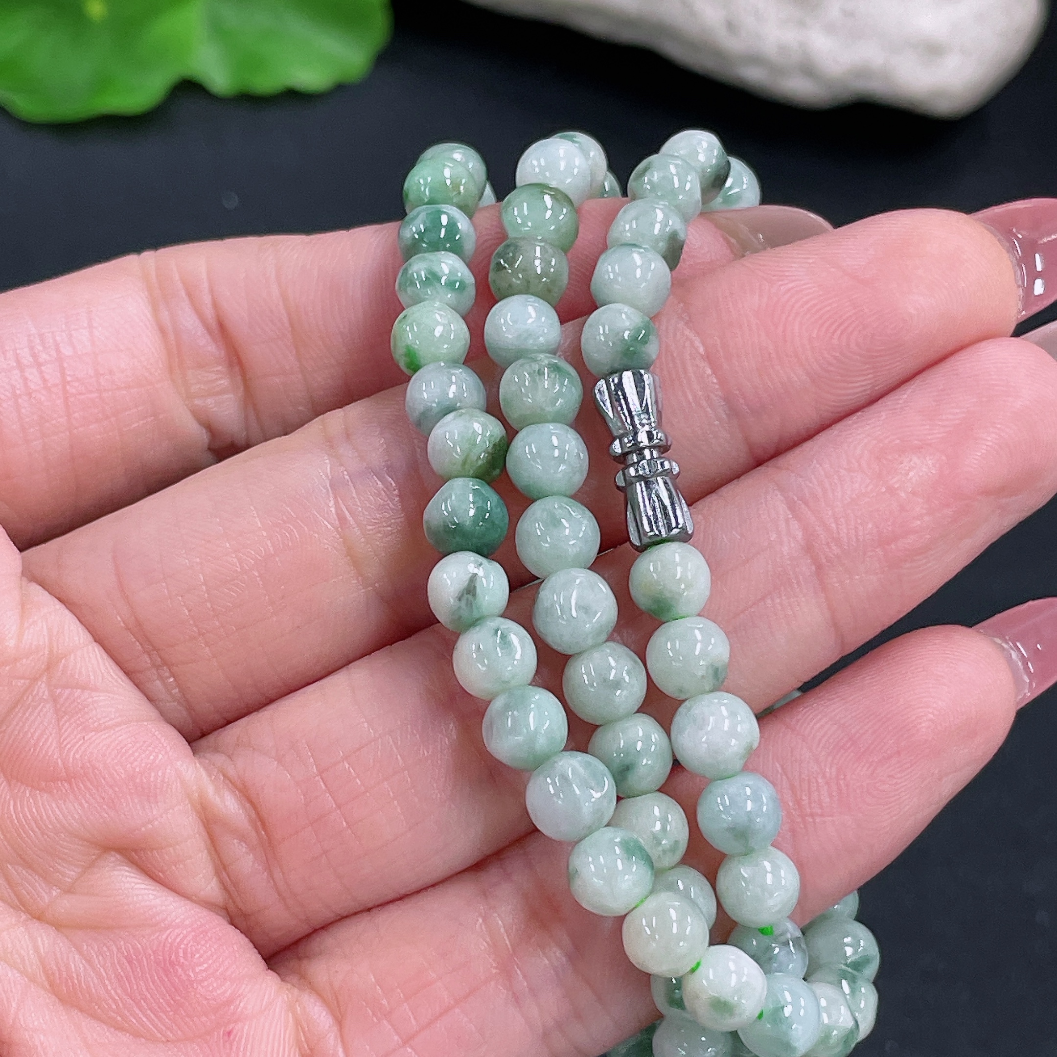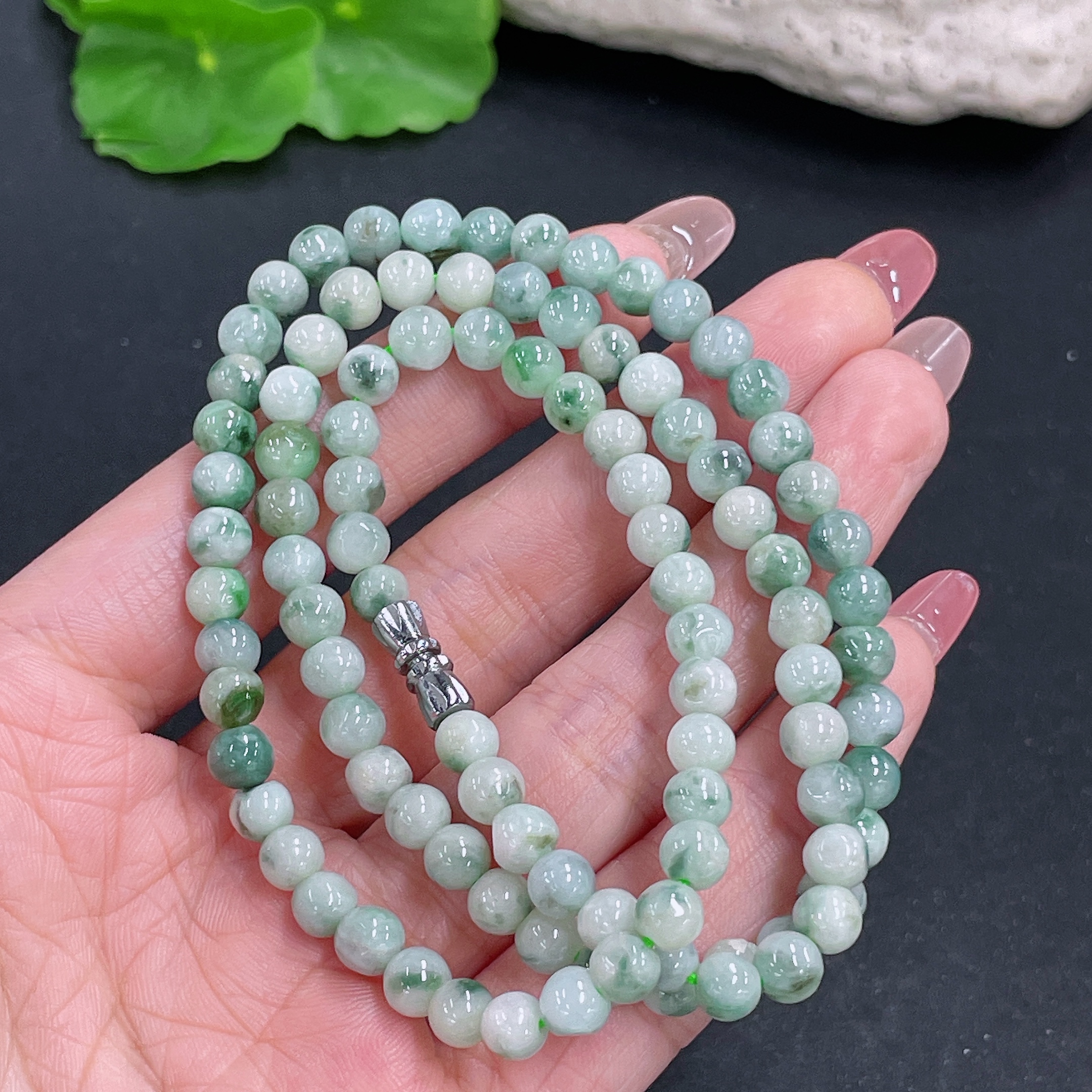 Jadeite bead strand approx. 5.5mm, total weight approx. 29.54g, containing other mineral components
