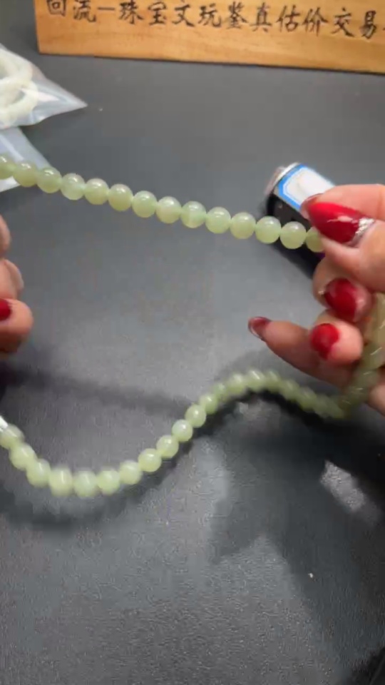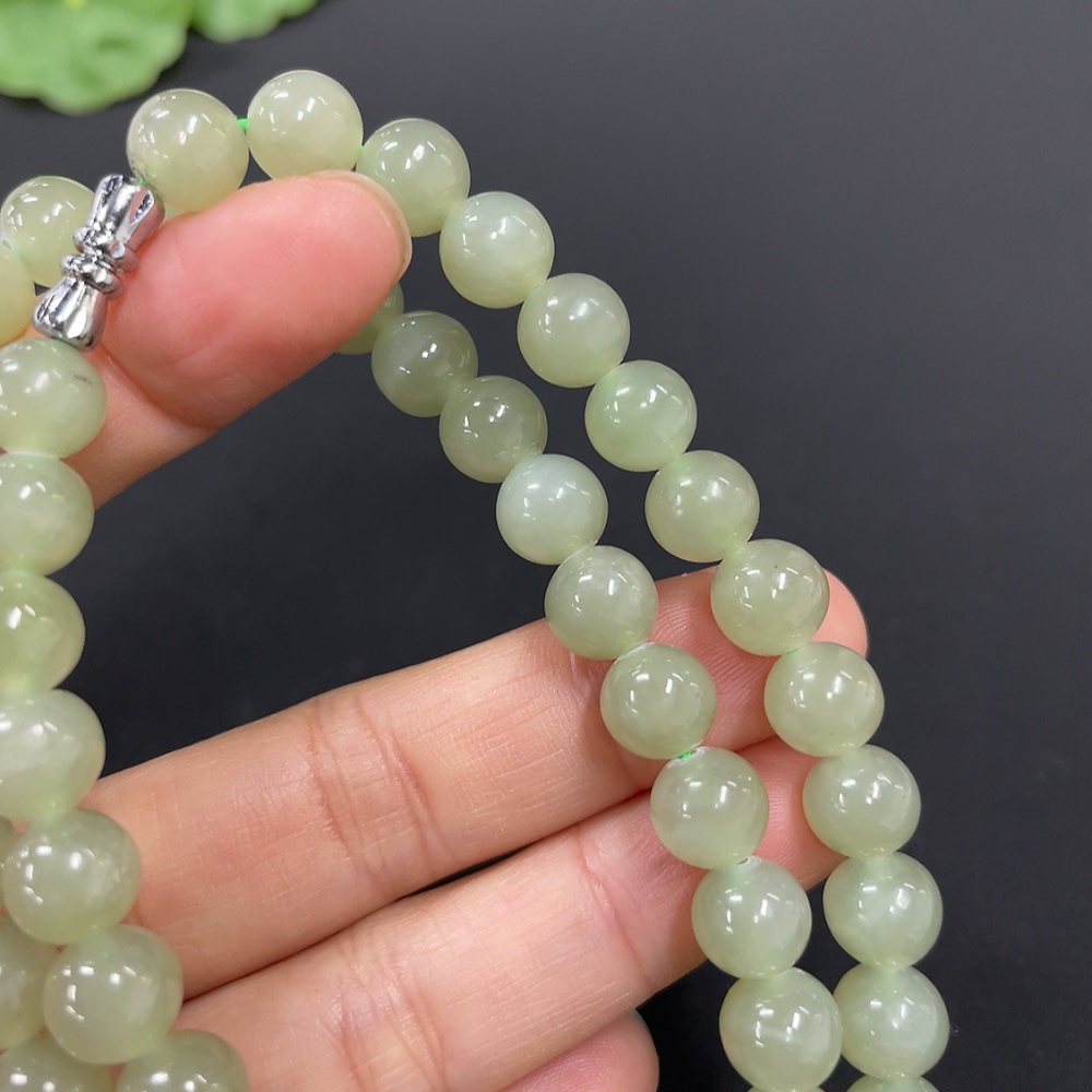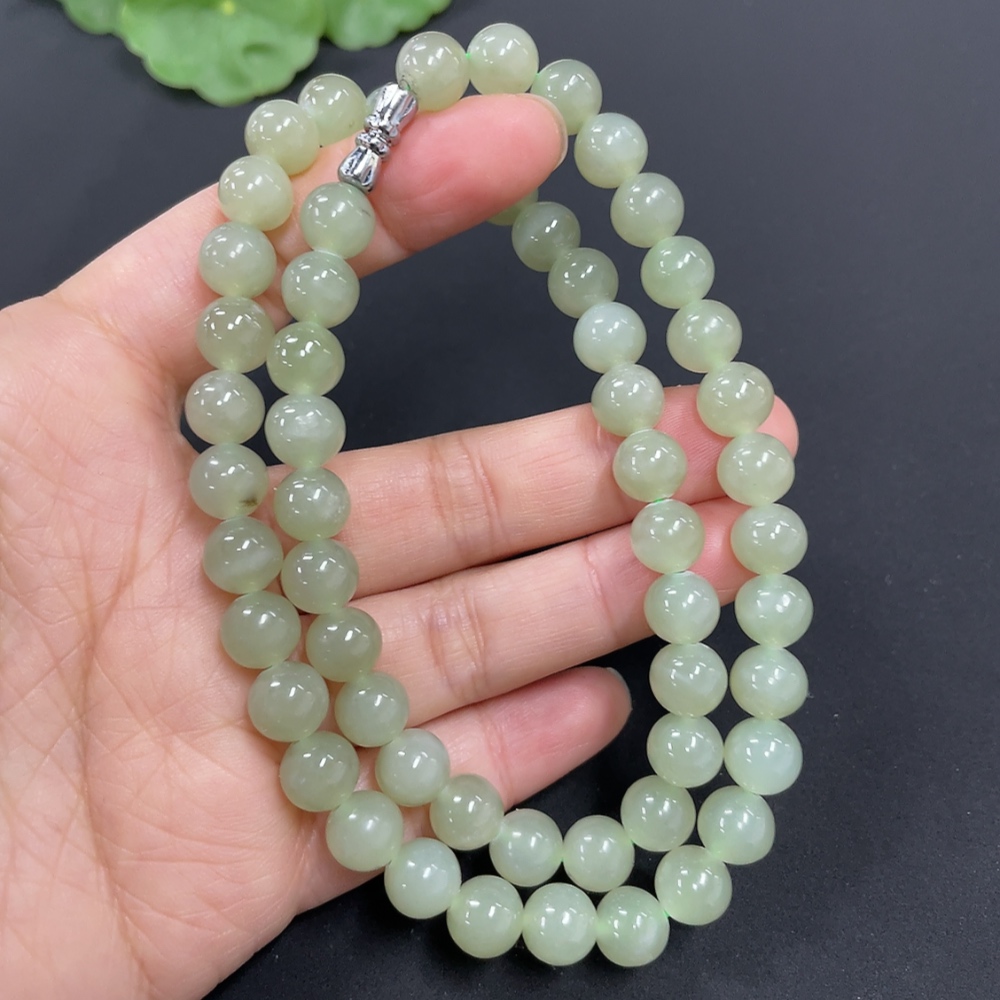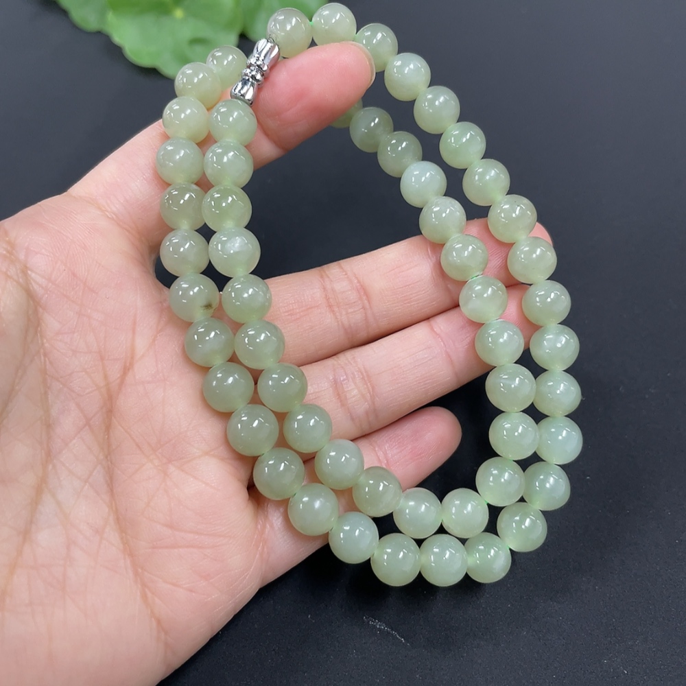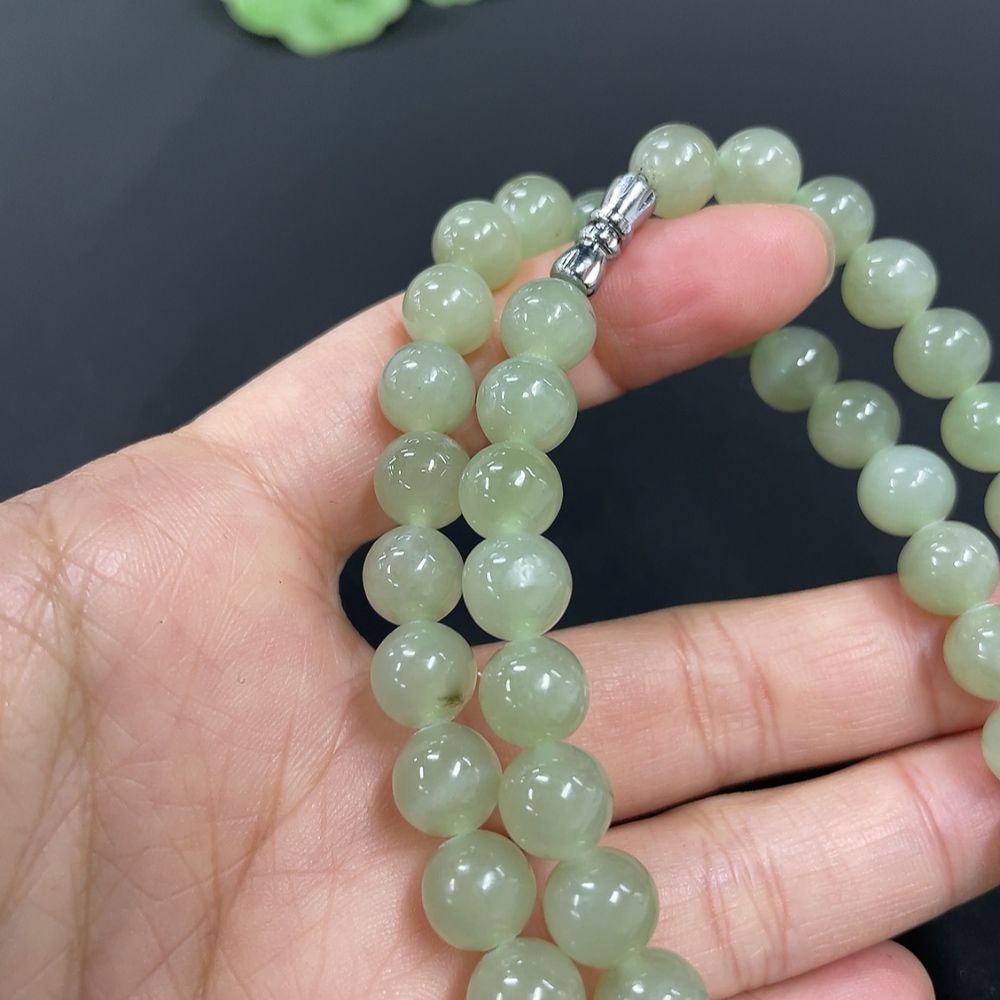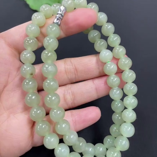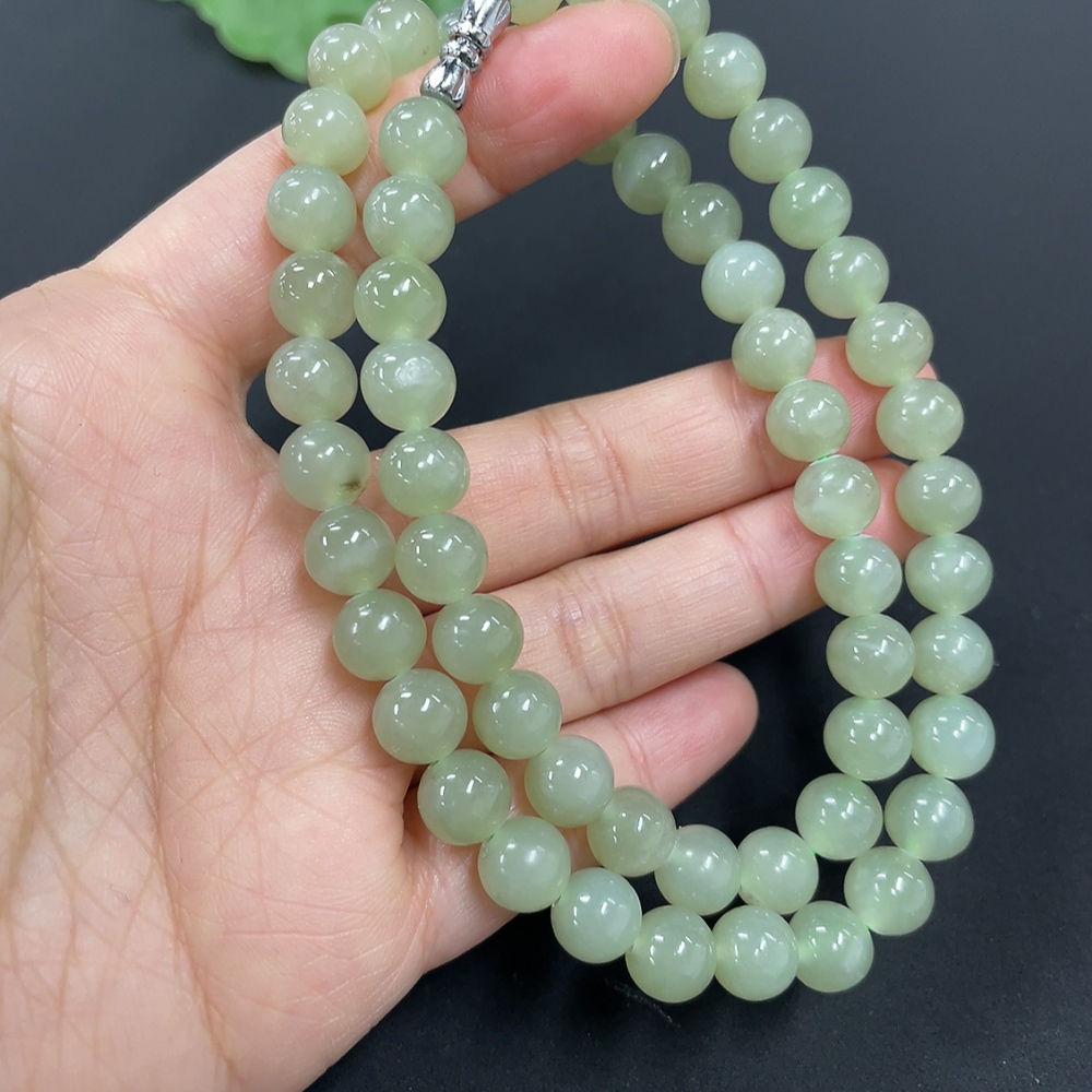 Hetian Jade Bead Necklace Approx. 7.7mm Total Weight Approx. 43.9g