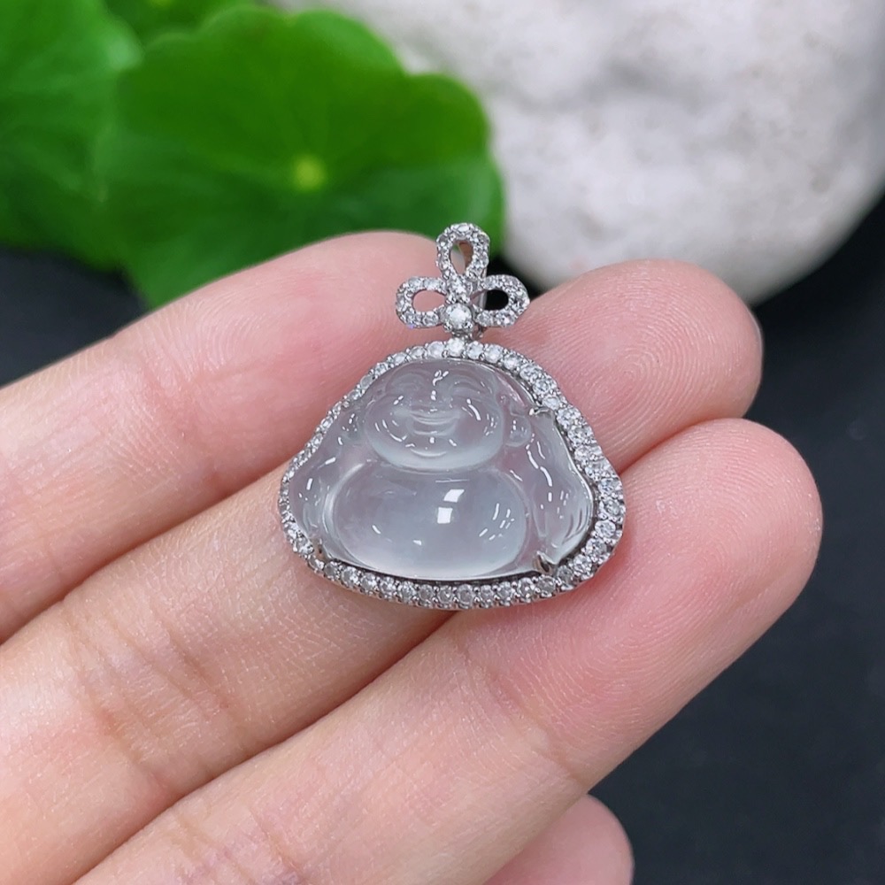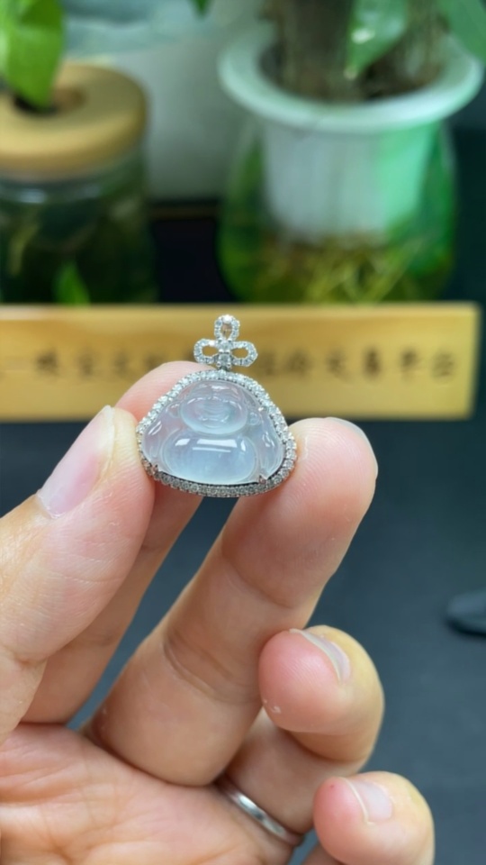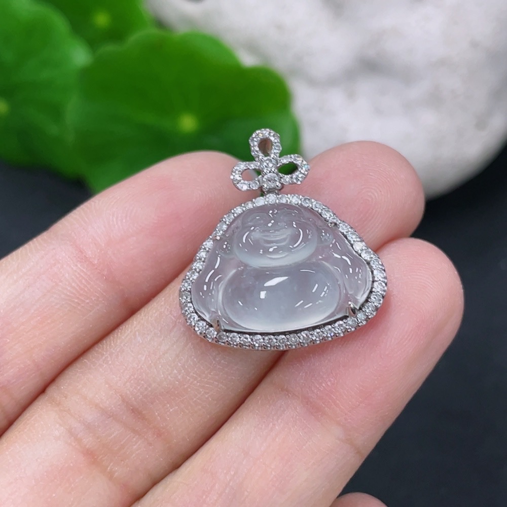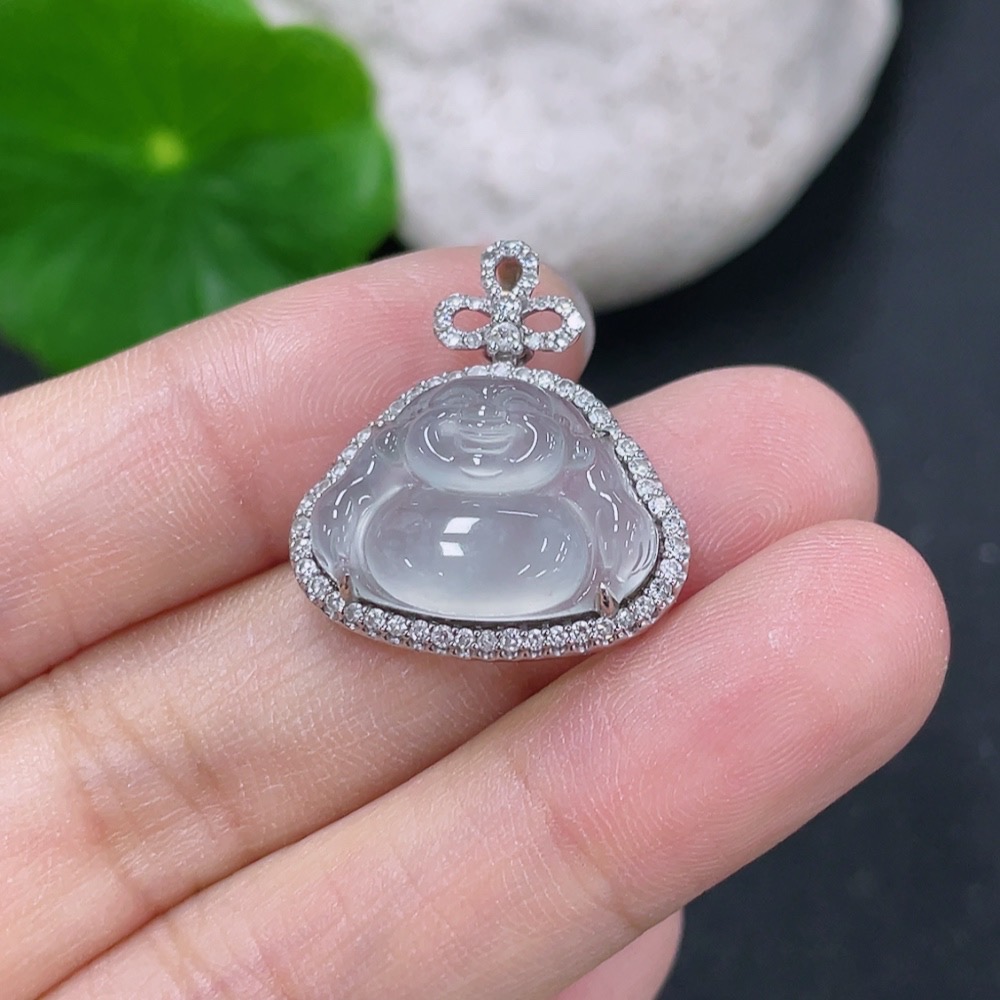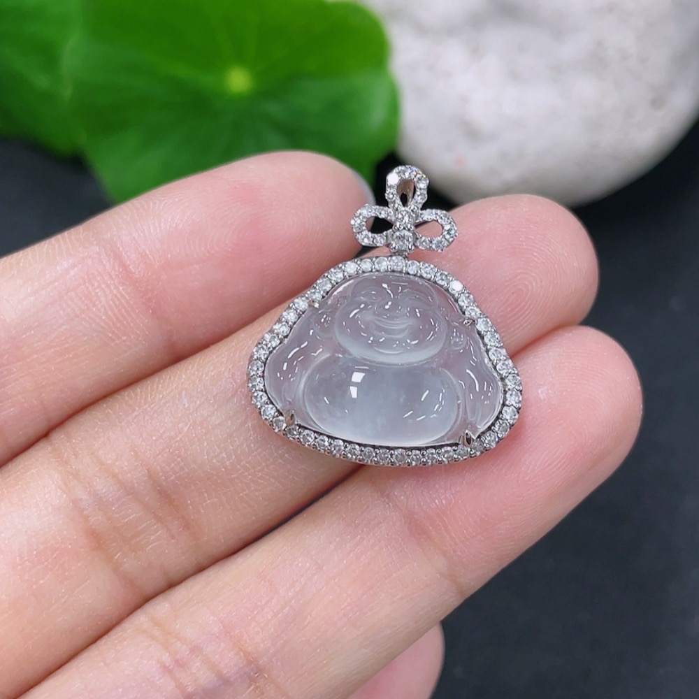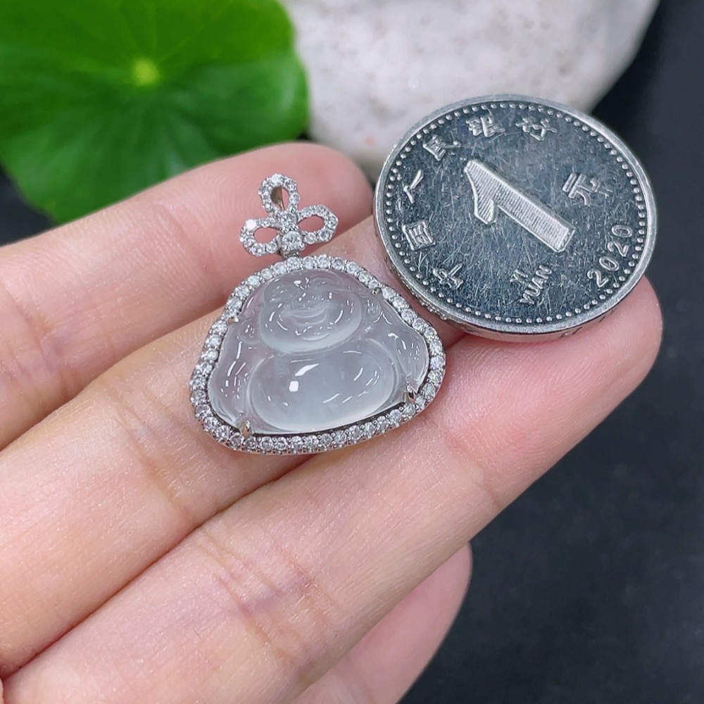 Jadeite Buddha Pendant with 18k Gold and Diamond Accents, Total Weight Approximately 3.03g