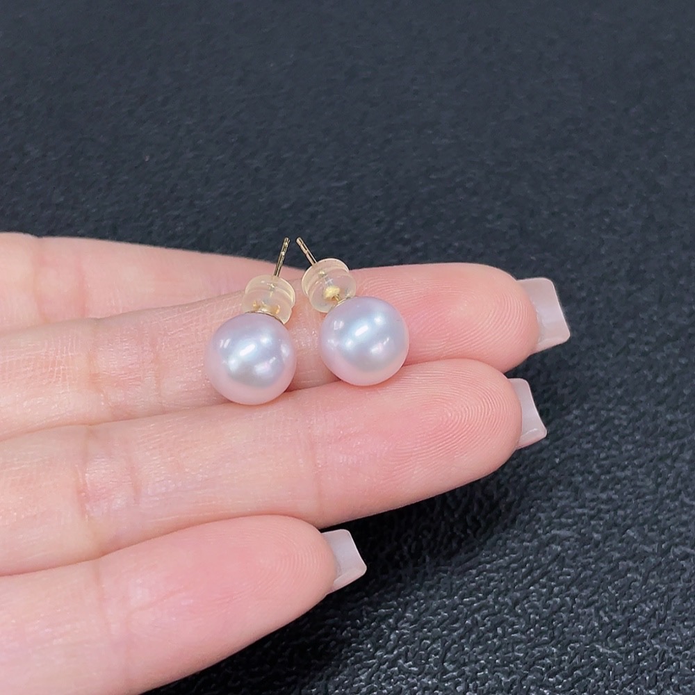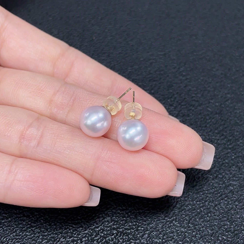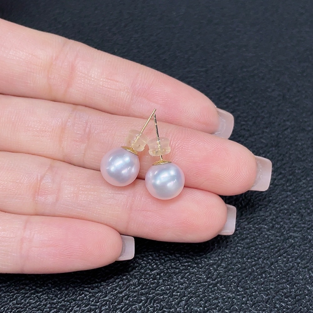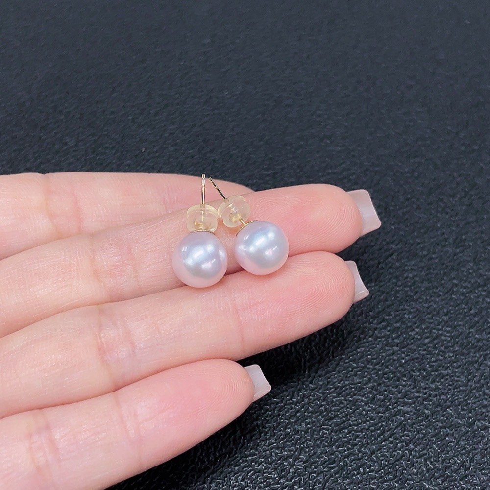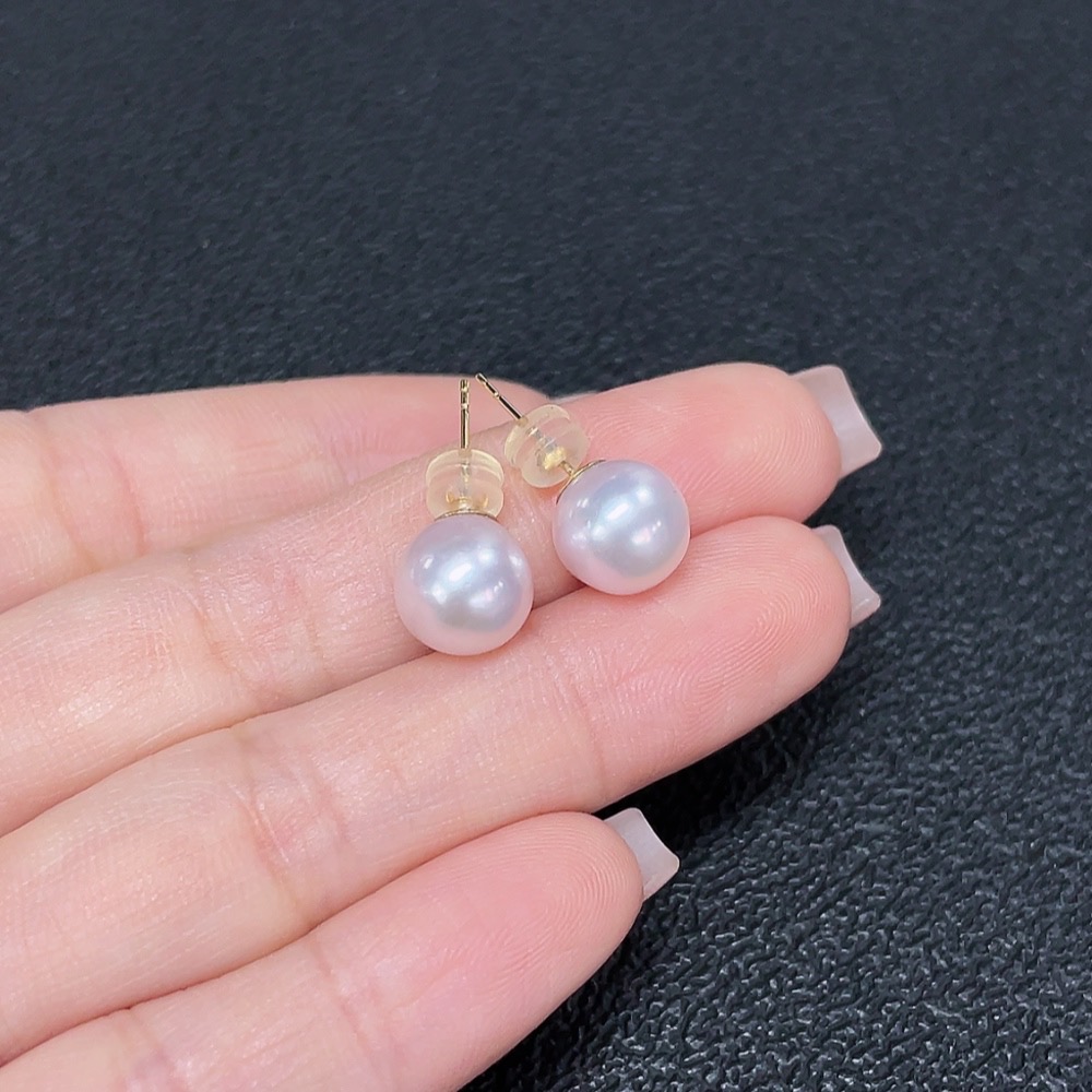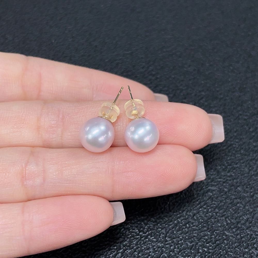 Seawater pearl earrings set in 18k gold, approximately 8.7mm in size, total weight about 2.18 grams