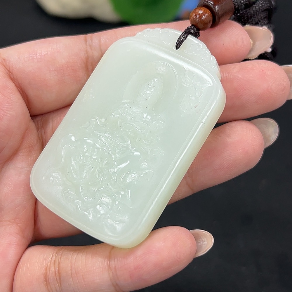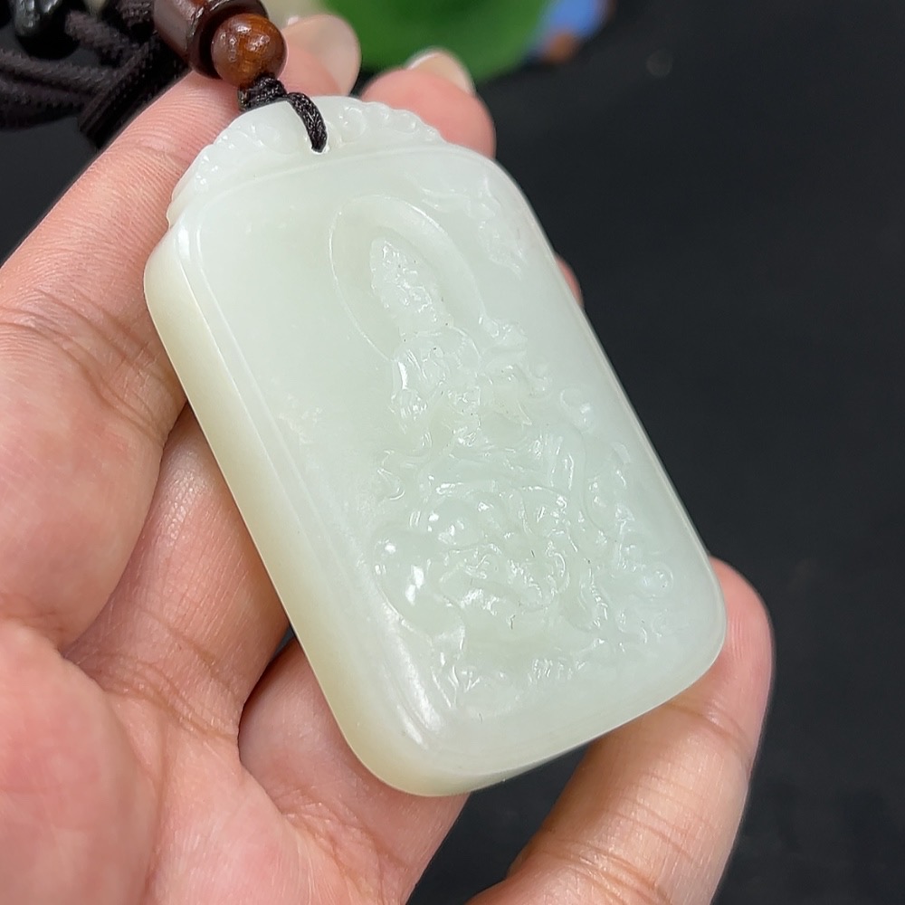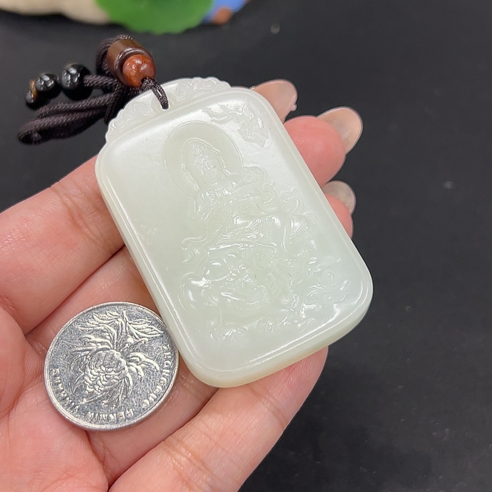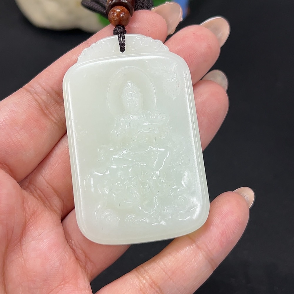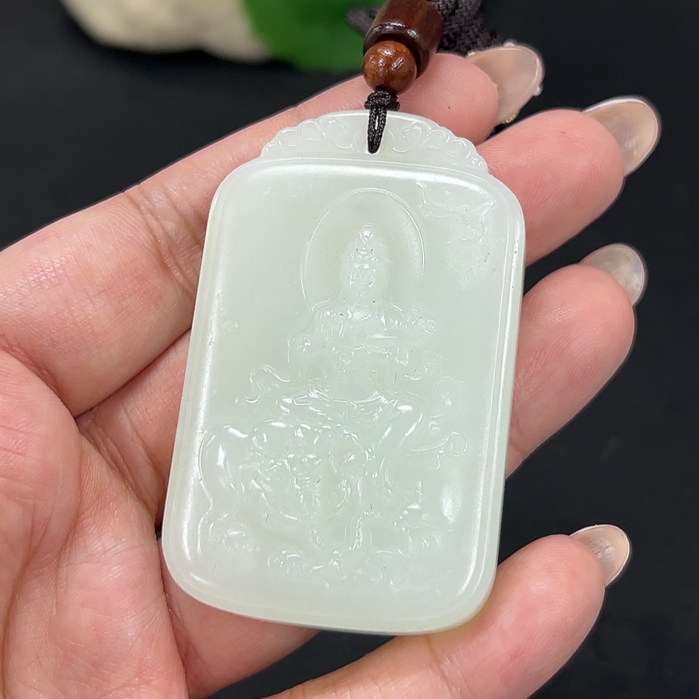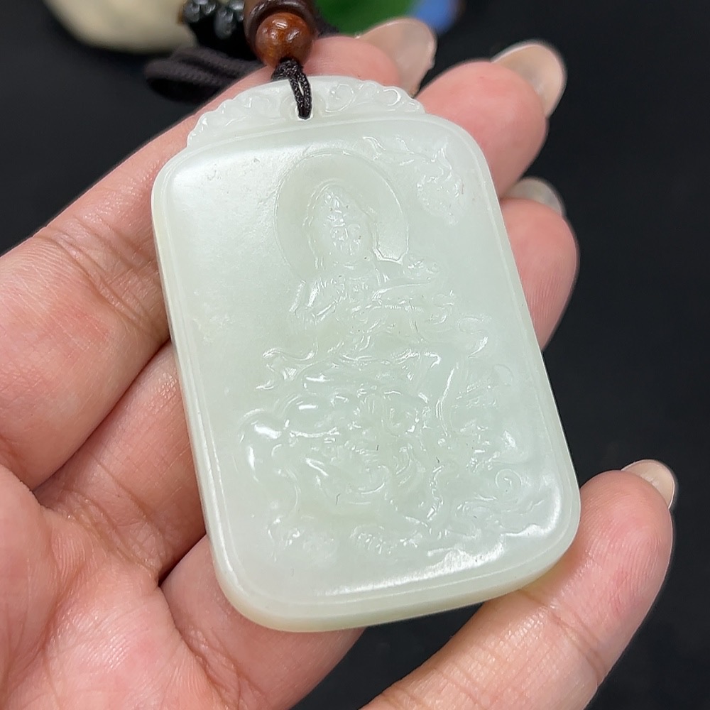 Hetian Jade Pendant - Samantabhadra Bodhisattva, Total Weight Approx. [with rope] 58.2g