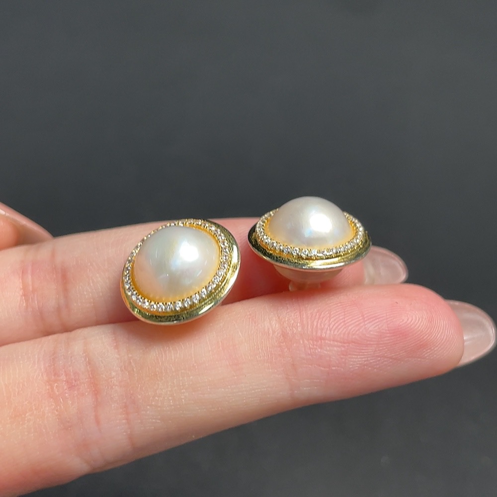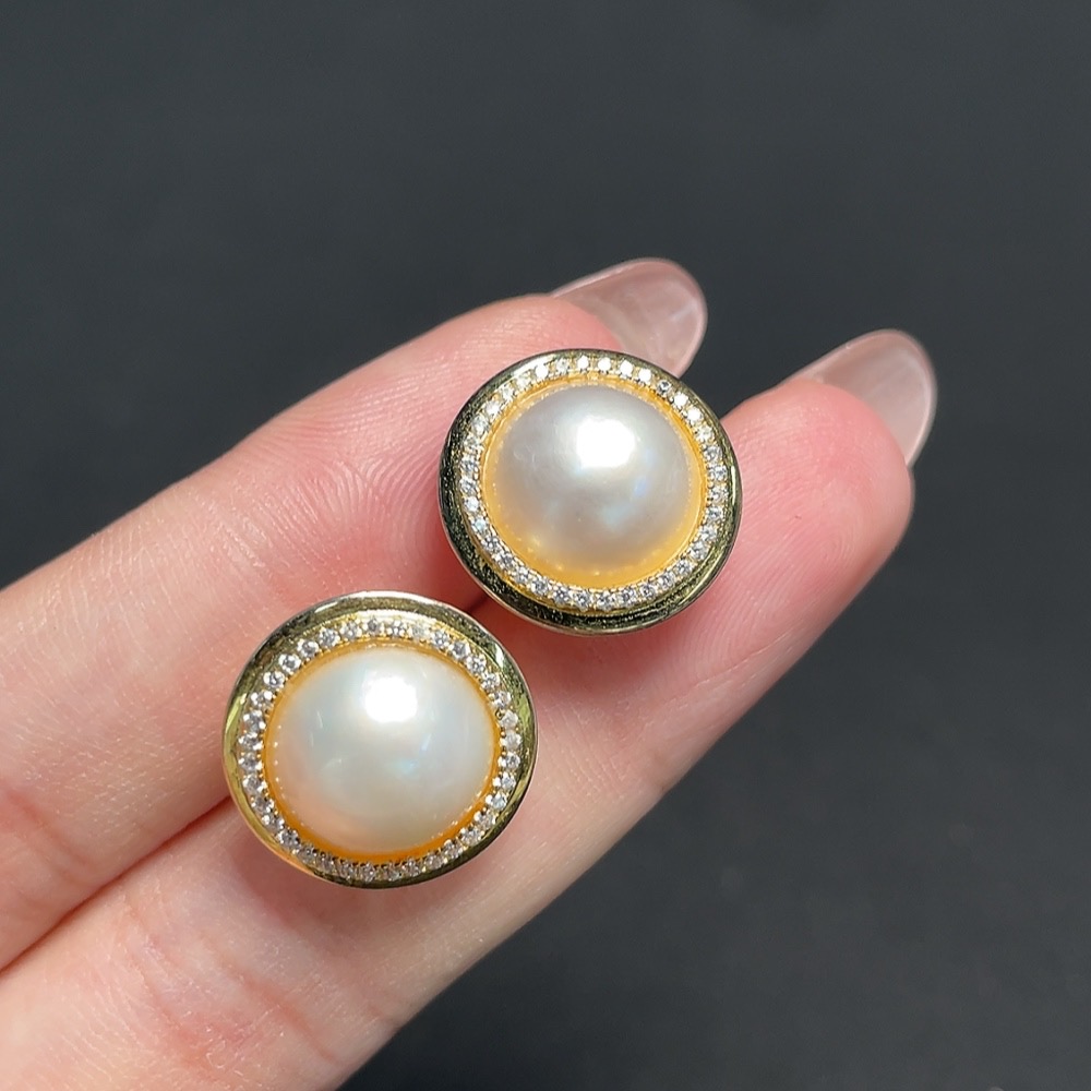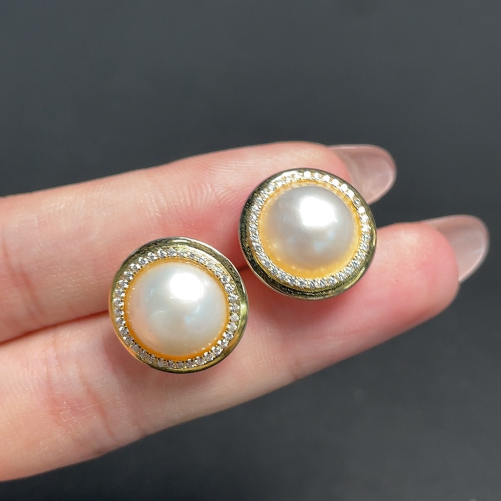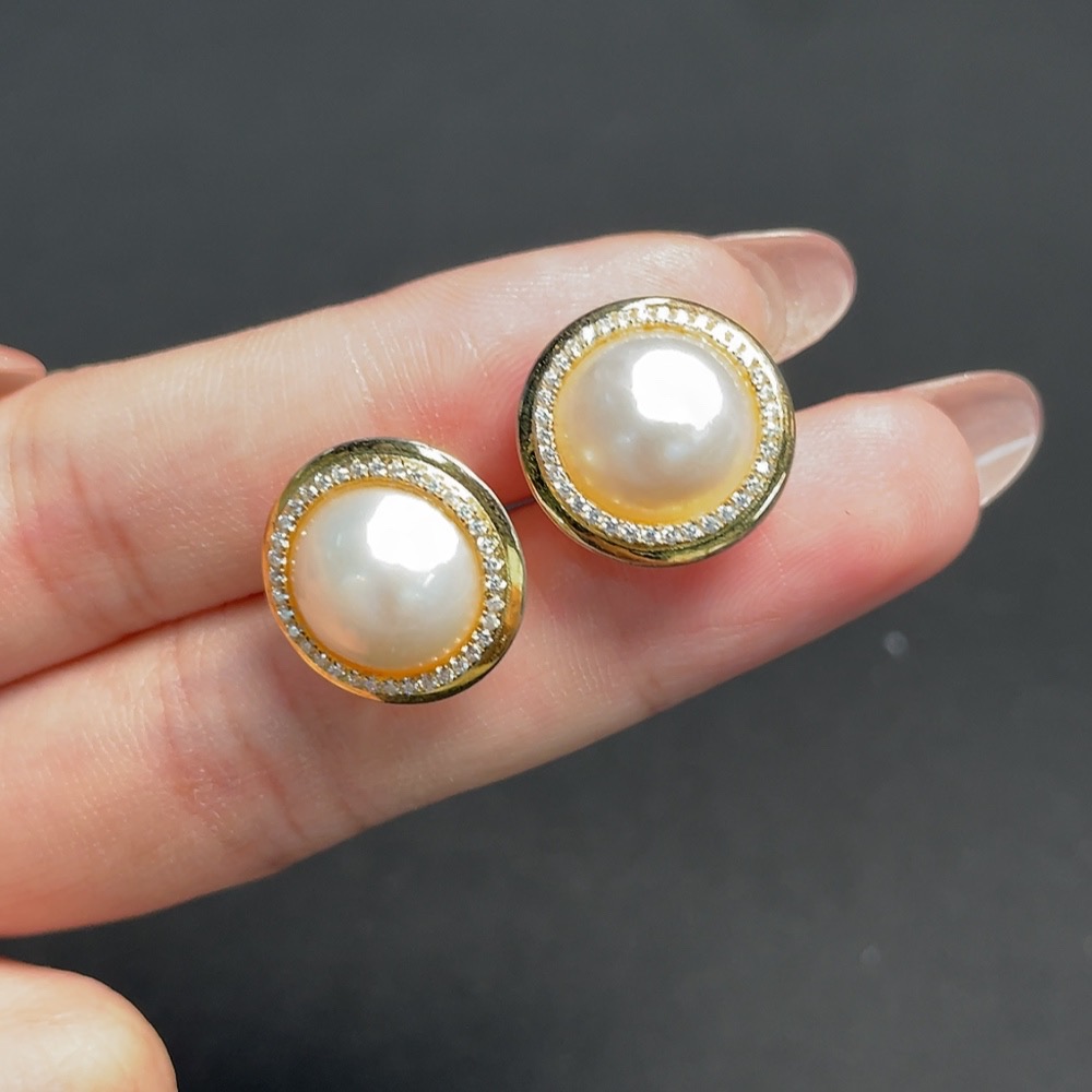 Mosaic Seawater Pearl Stud Earrings Non-Gold Setting Approximately 9.9mm Total Weight About 3.65g