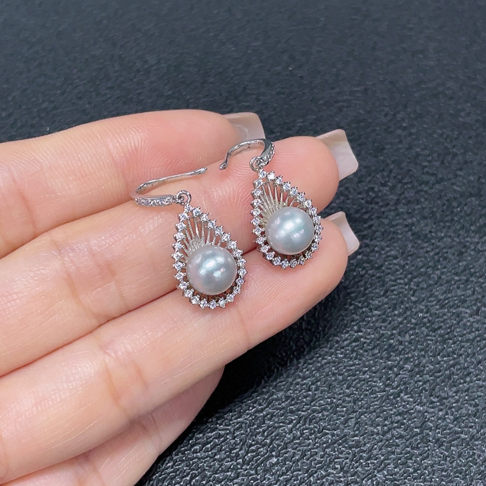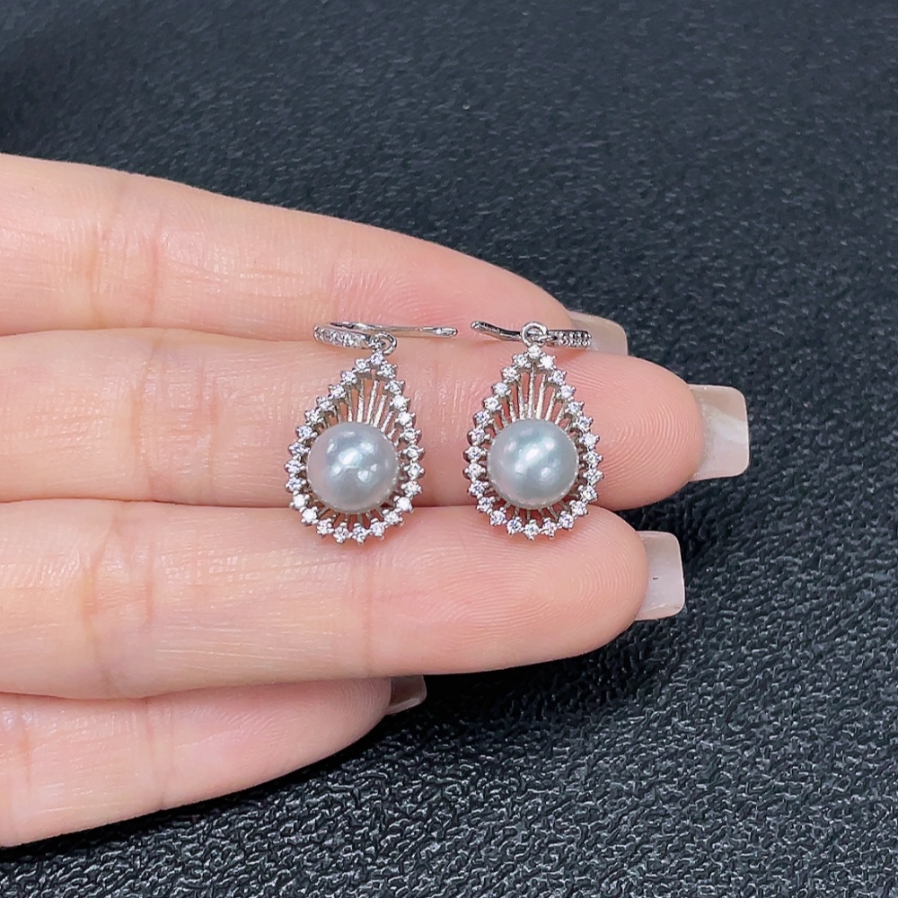 Seawater Pearl Earrings, Color Origin Undetermined, Non-Gold, Total Weight Approximately 3.29g, Size About 6.7mm