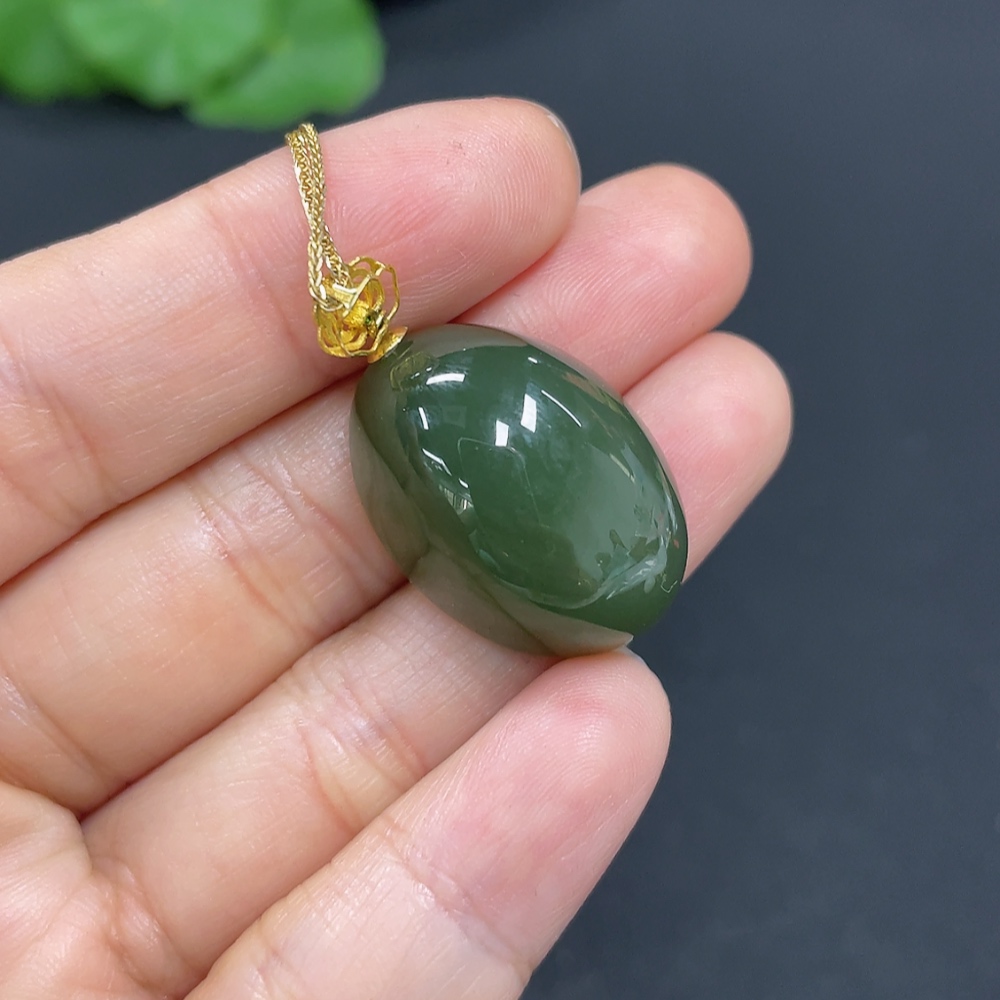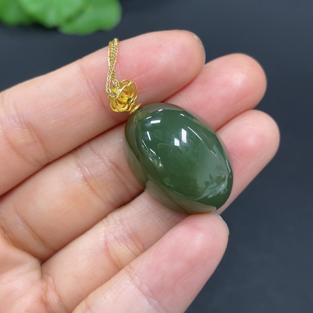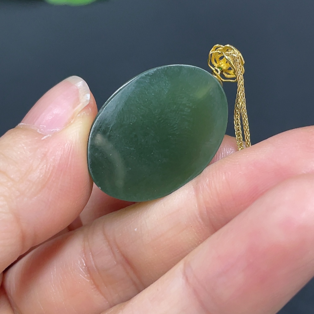 Hetian Jade Pendant with Egg-shaped Cabochon, 18K Gold Clasp, Non-Gold Chain (Total Weight Approximately 8.8g Including Chain)