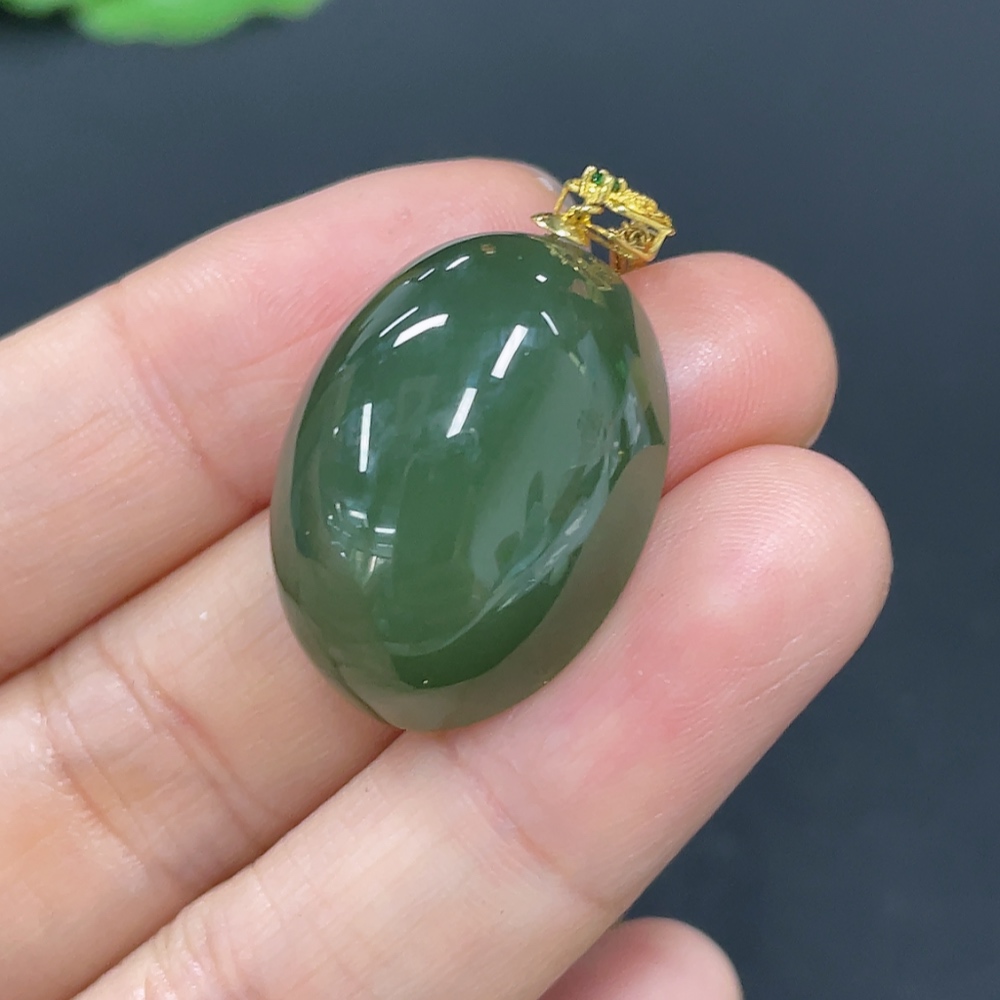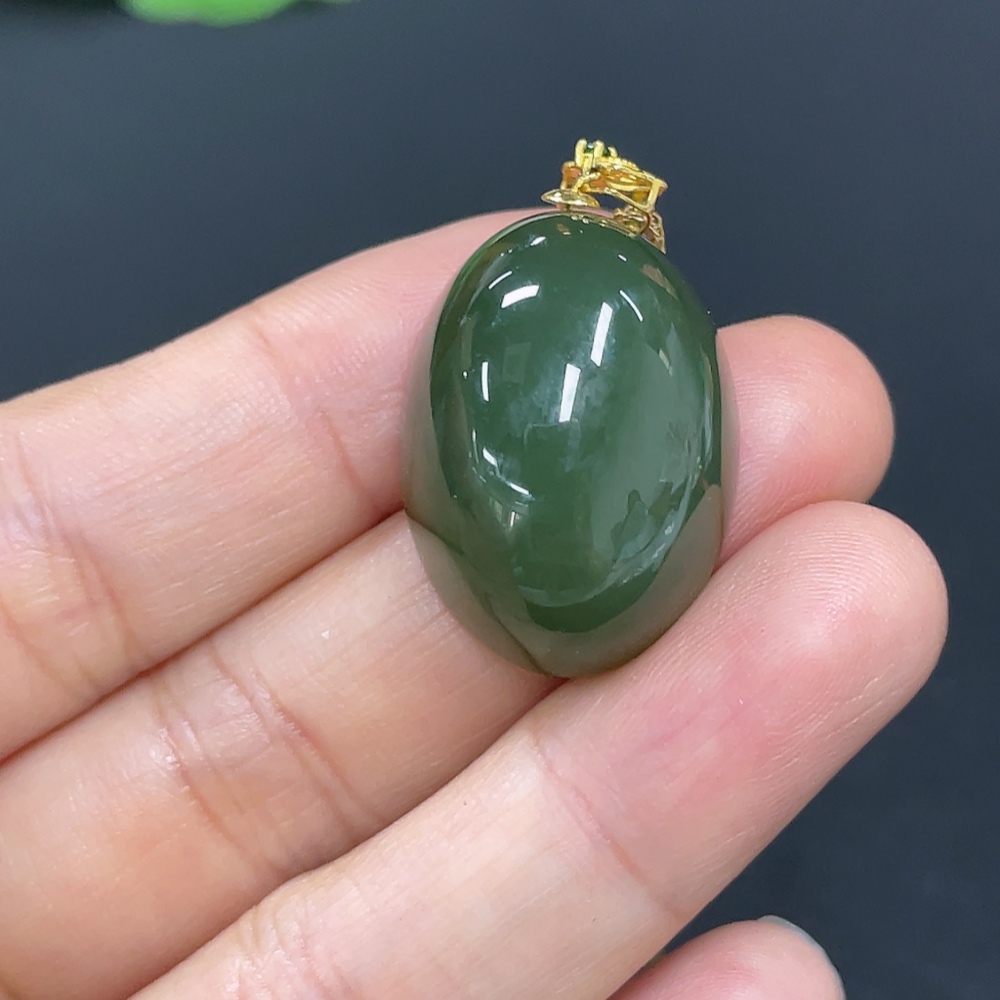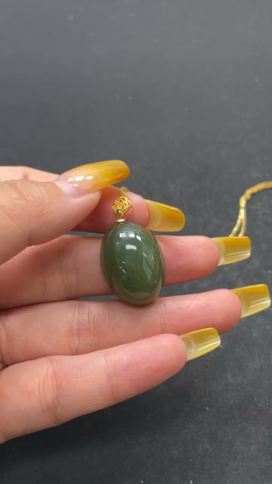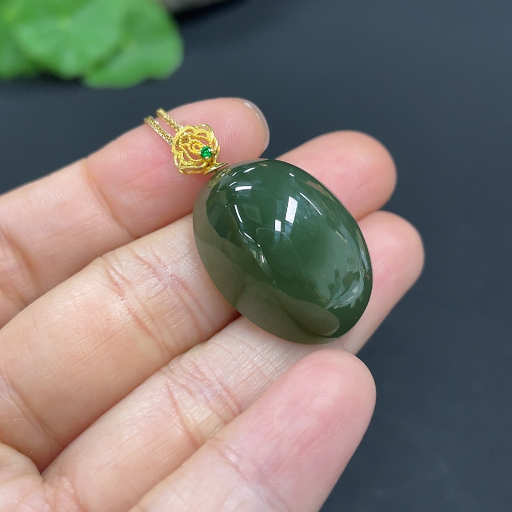 Hetian Jade Pendant with Egg-shaped Cabochon, 18K Gold Clasp, Non-Gold Chain (Total Weight Approximately 8.8g Including Chain)