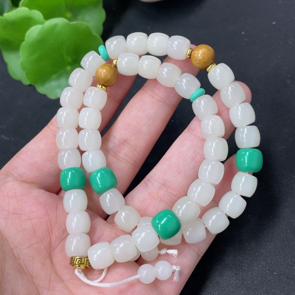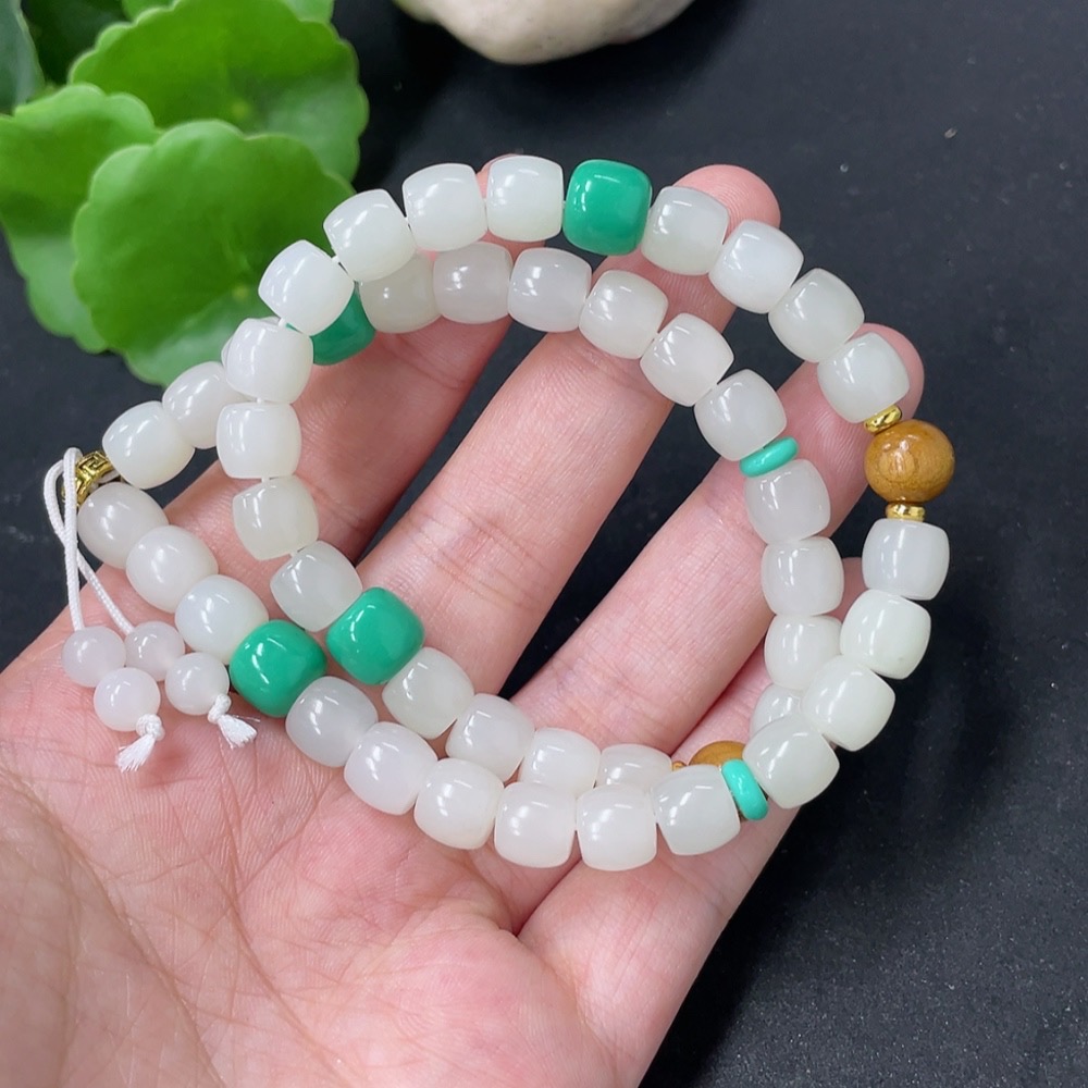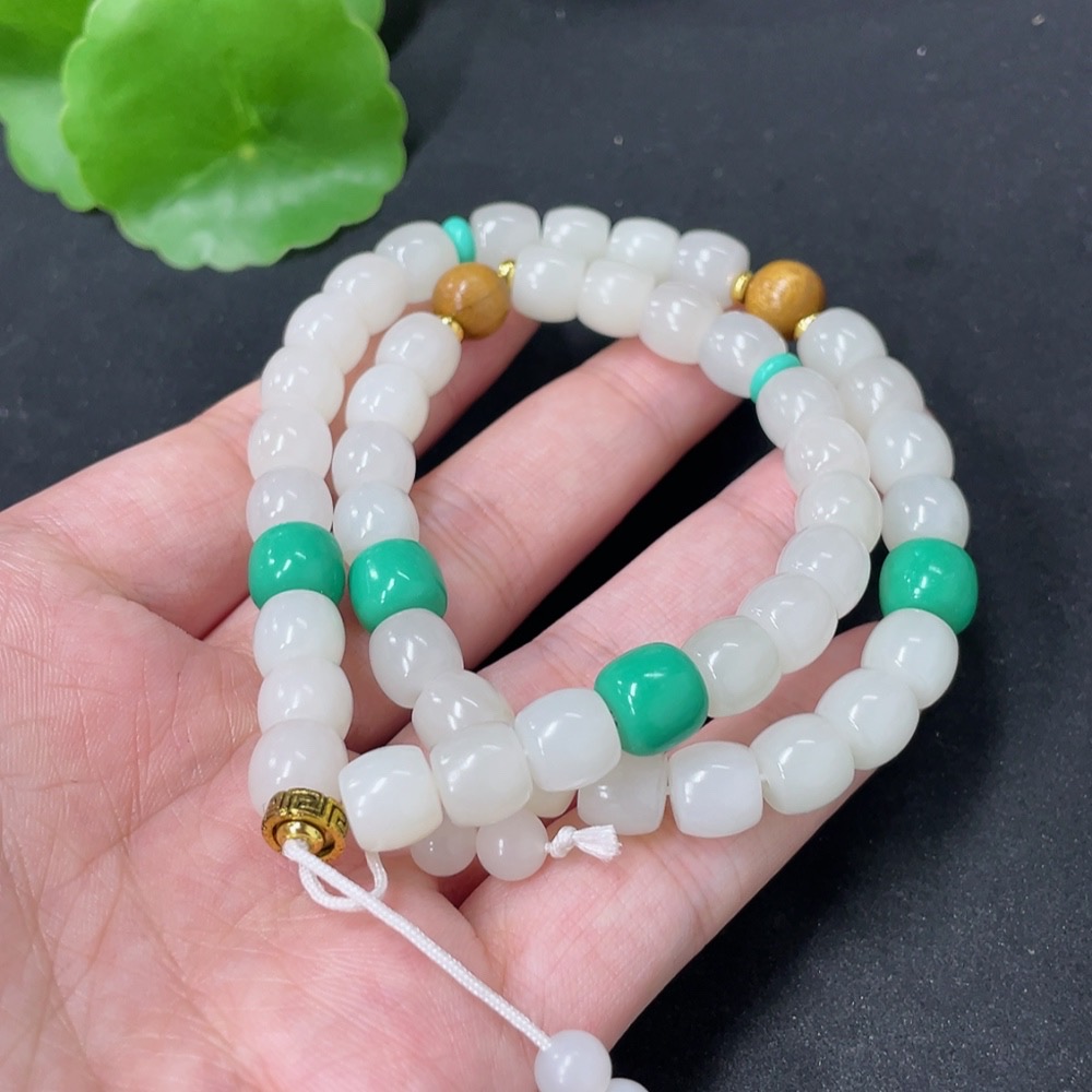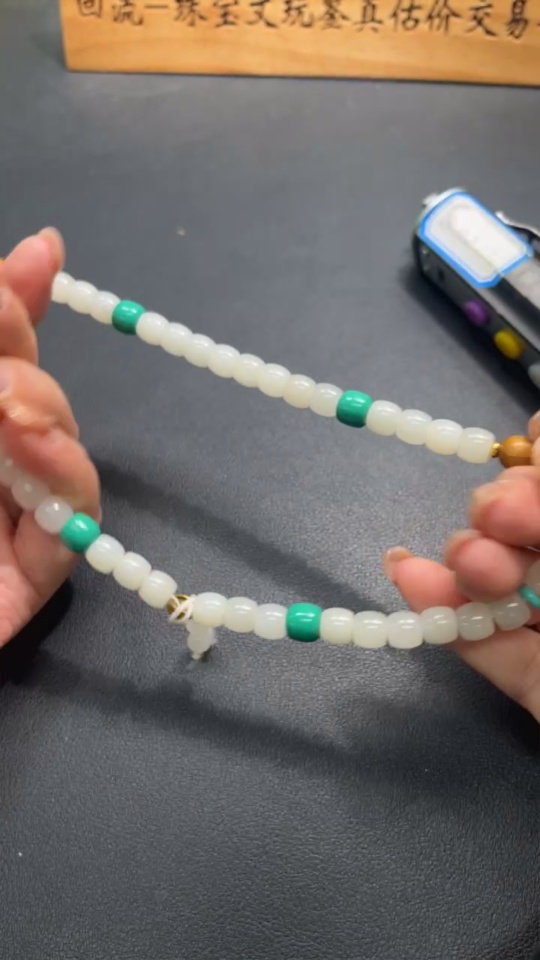Hetian Jade Bead Necklace, approx. 7.7mm, total weight approx. 43.2g, non-Hetian Jade beads, non-gold