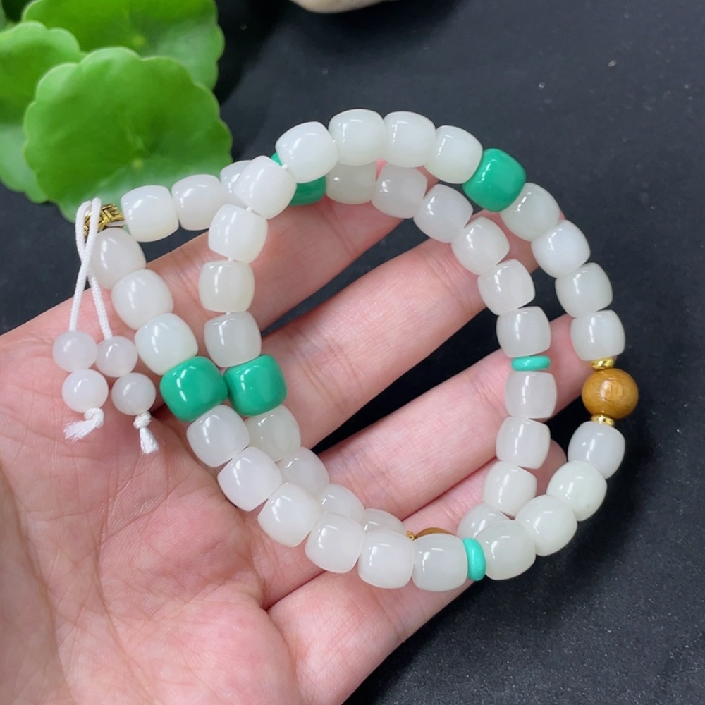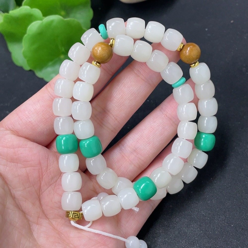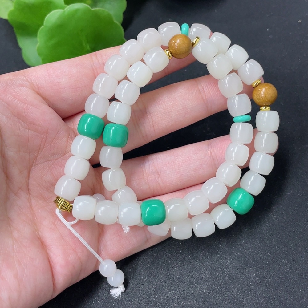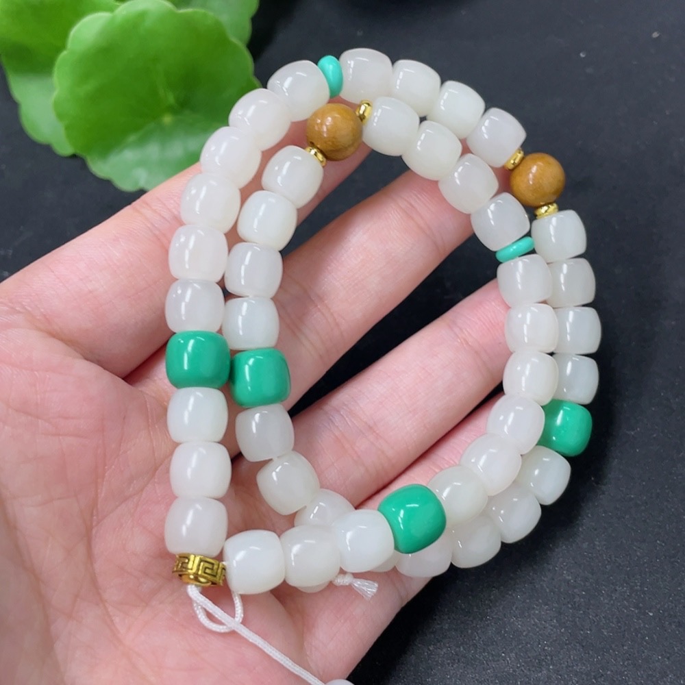 Hetian Jade Bead Necklace, approx. 7.7mm, total weight approx. 43.2g, non-Hetian Jade beads, non-gold