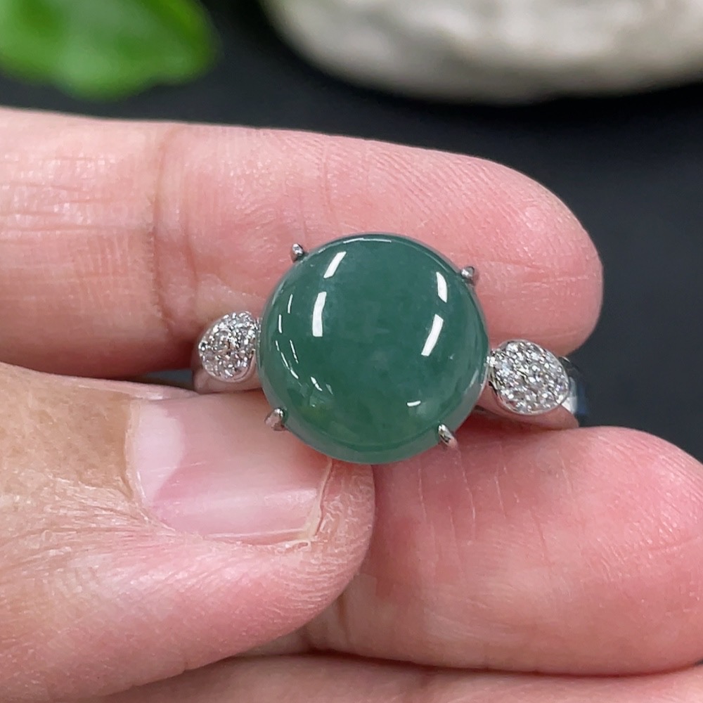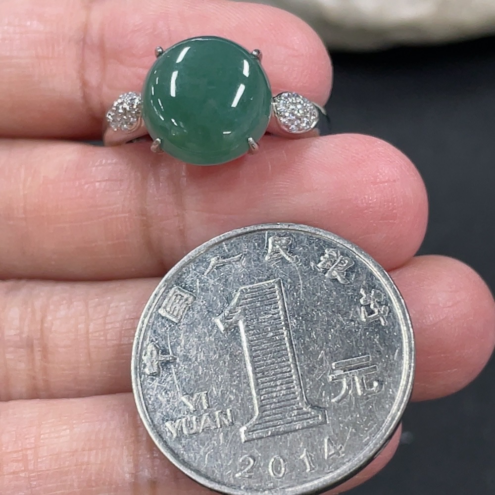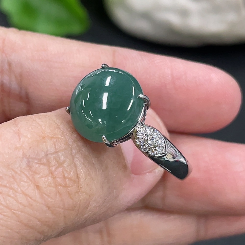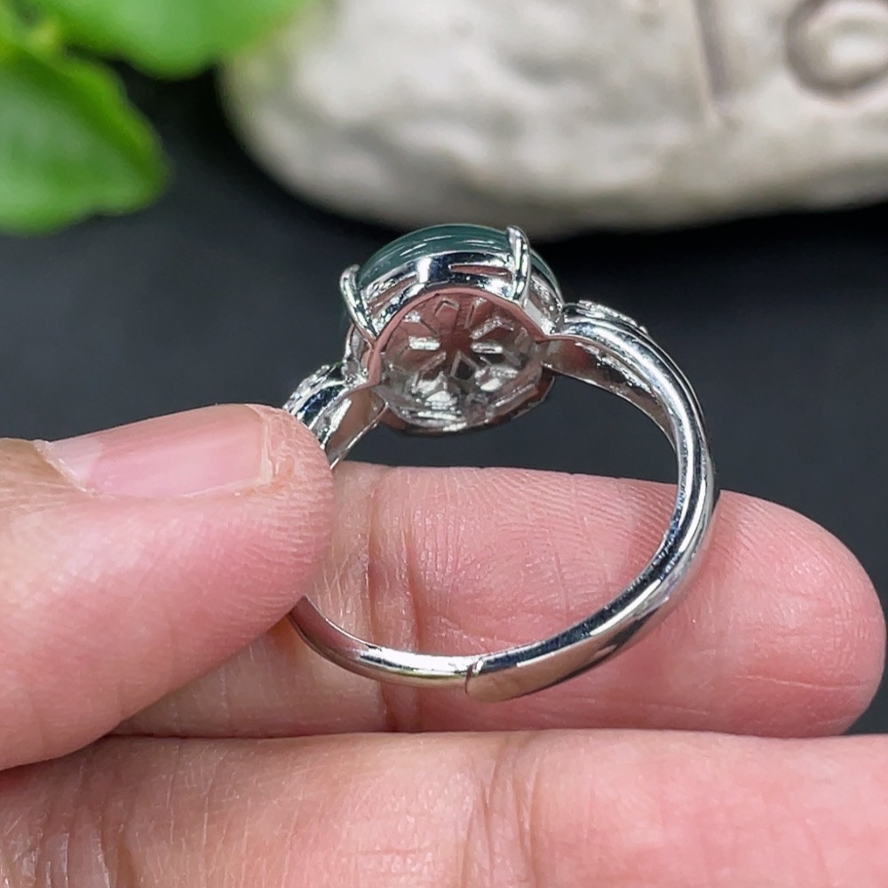 Jadeite Cabochon Inlaid Ring Non-Gold Adjustable Total Weight Approx. 3.65g