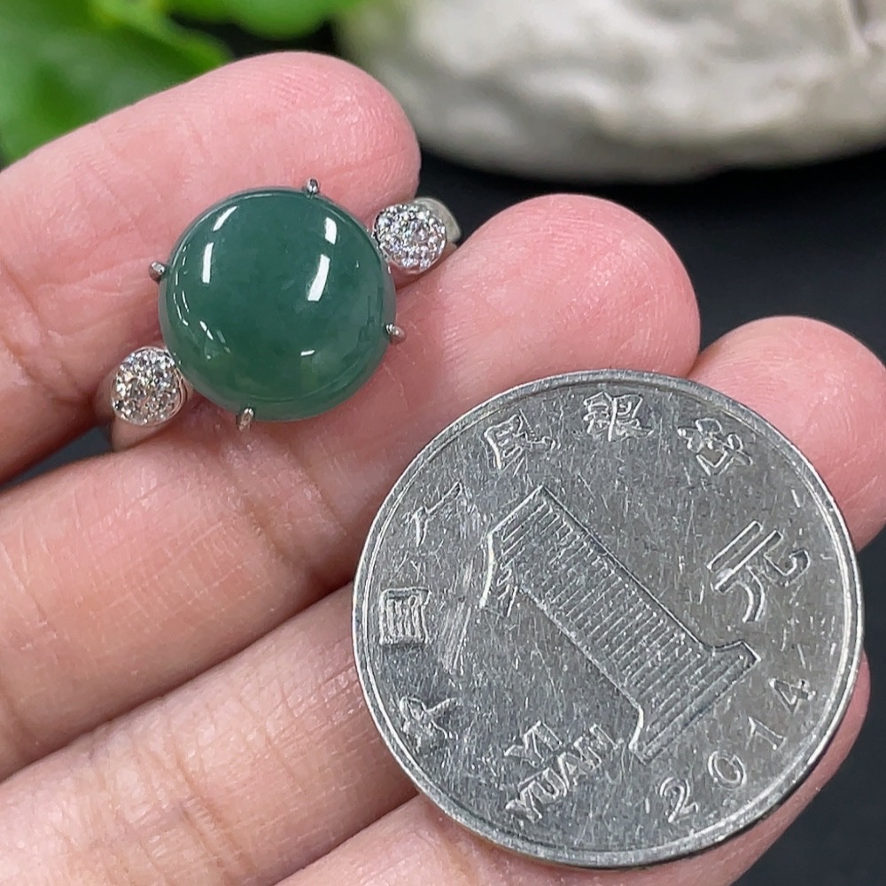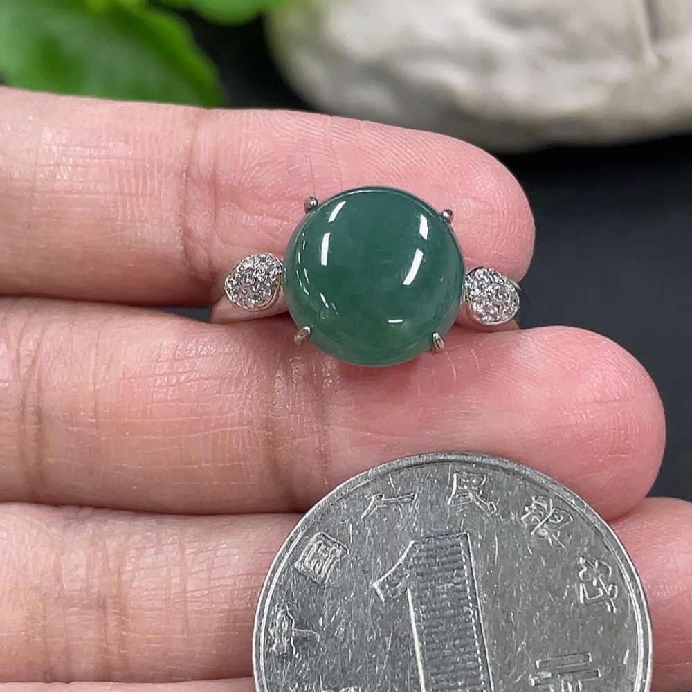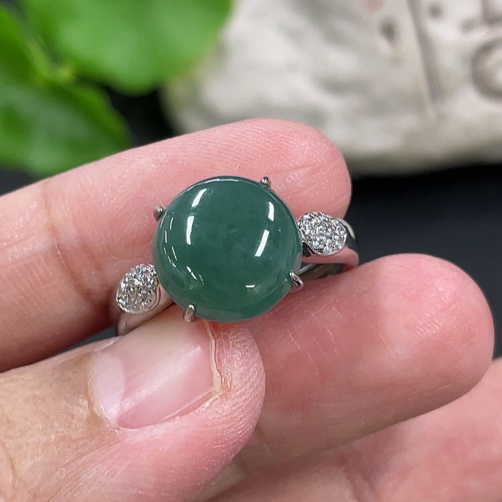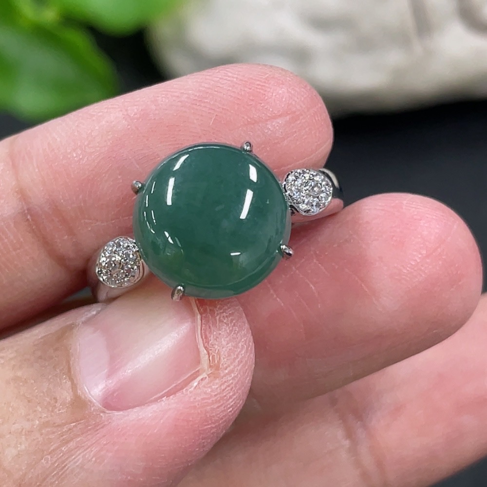 Jadeite Cabochon Inlaid Ring Non-Gold Adjustable Total Weight Approx. 3.65g