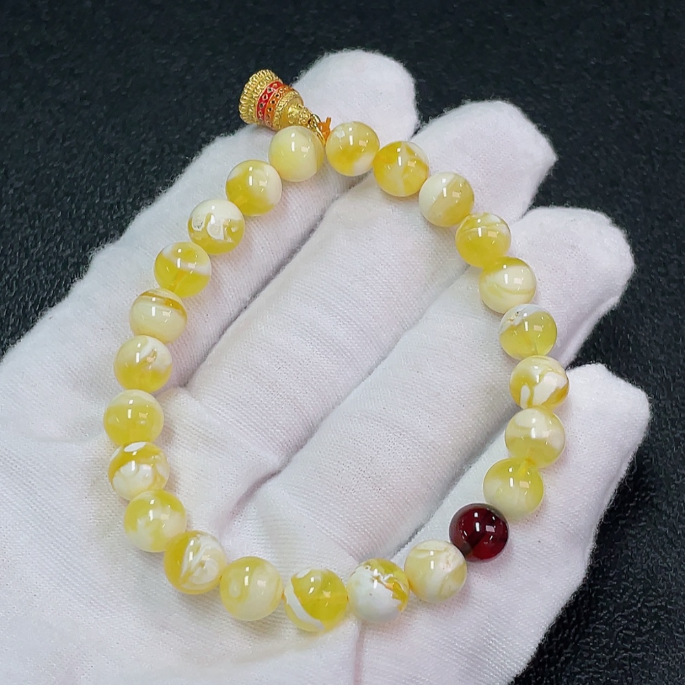 Amber Beeswax Bracelet Non-Gold Total Weight Approx. 7.11g Size About 7.6mm