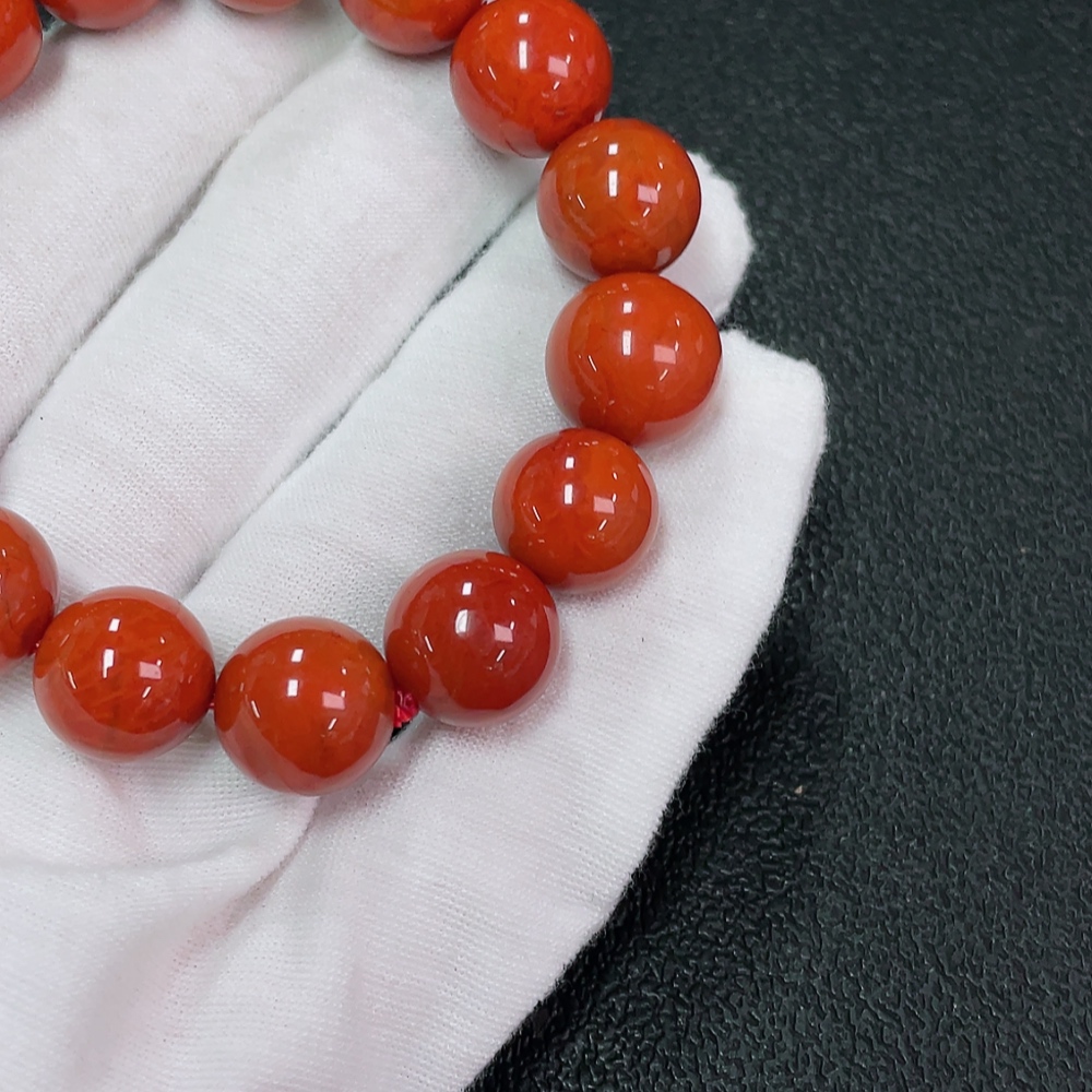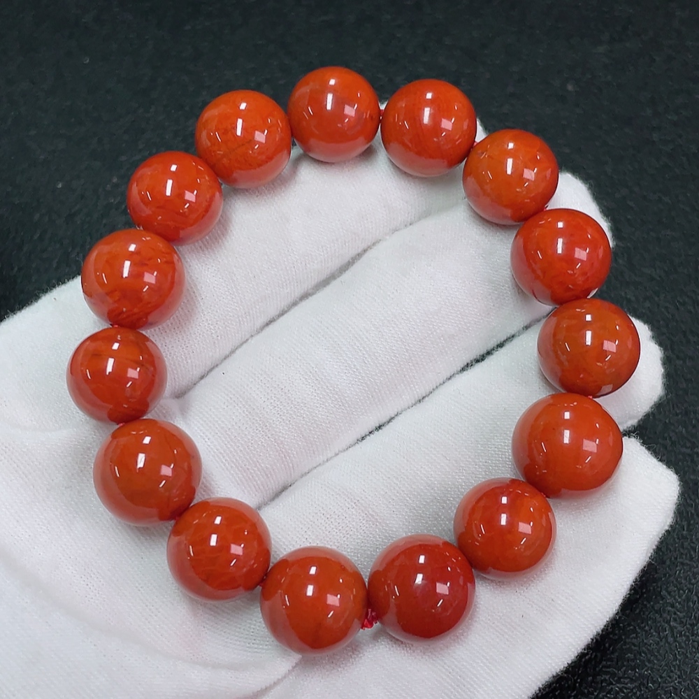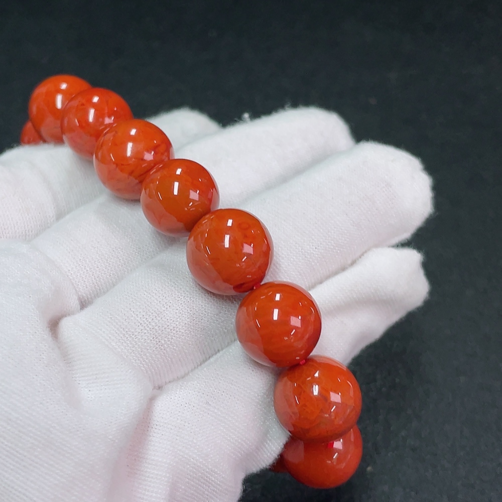 Red Agate Bracelet with Visible Organic Inclusions, Total Weight Approx. 45.89g, Size 13.1mm