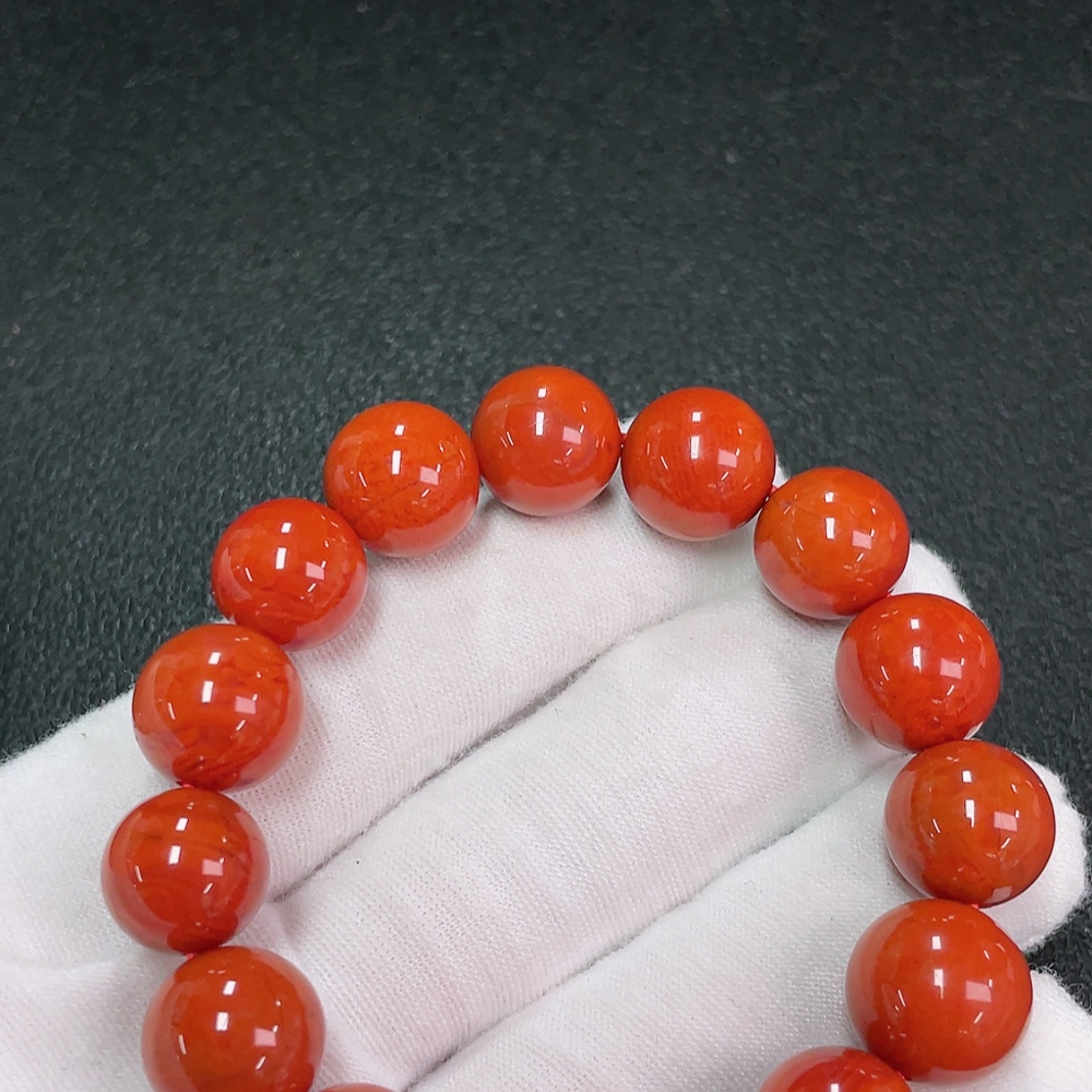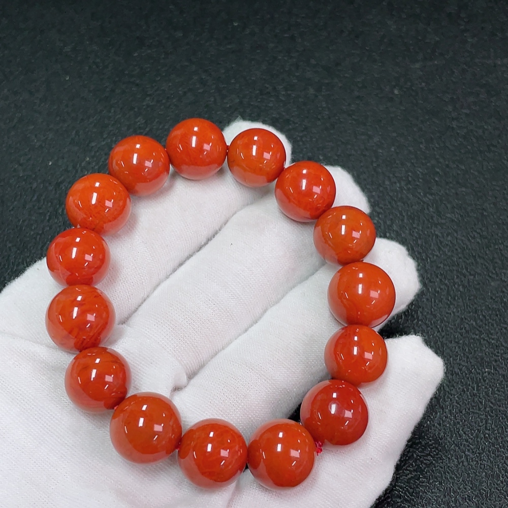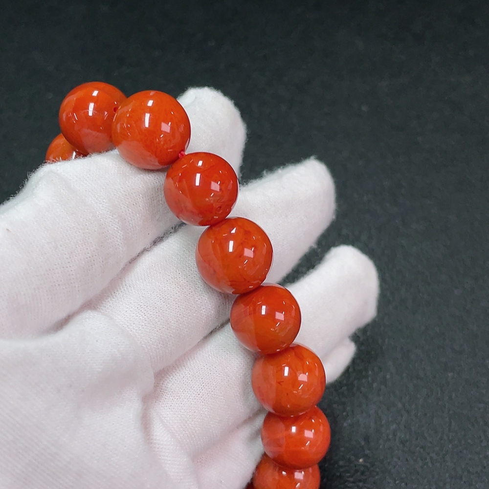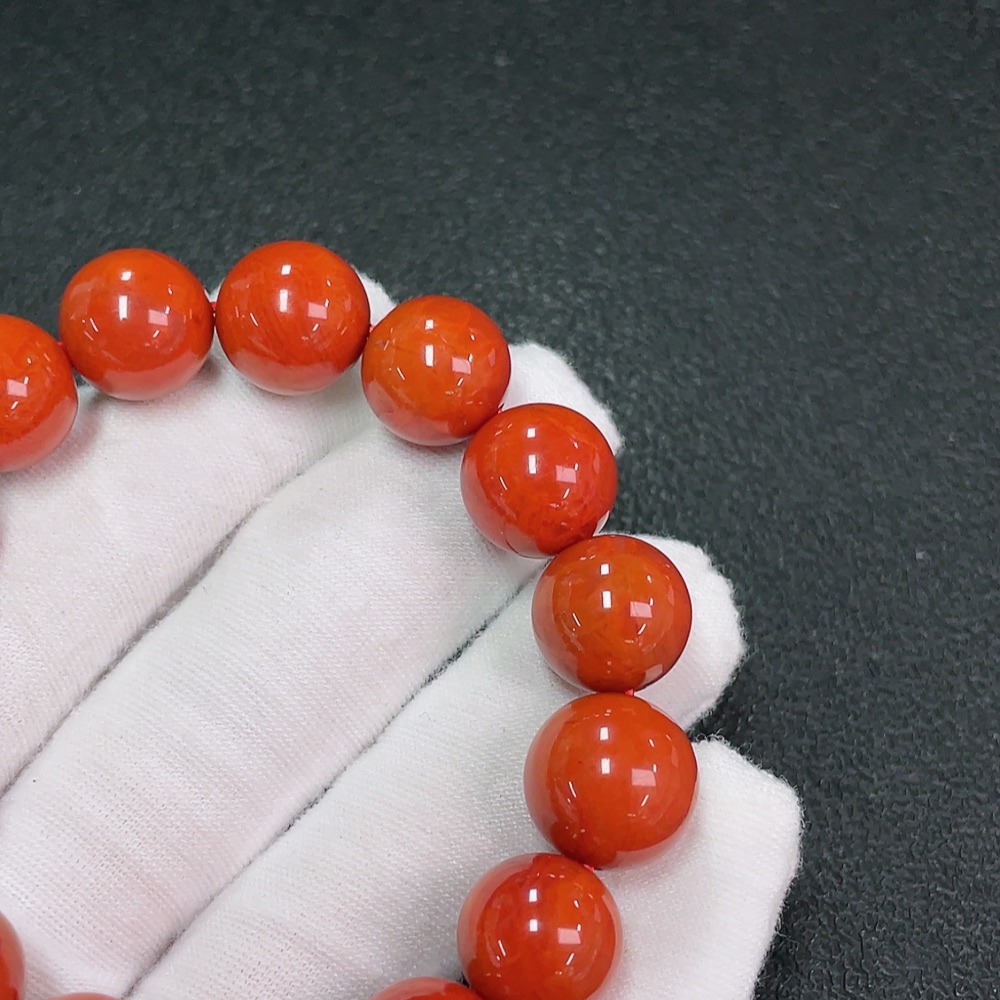 Red Agate Bracelet with Visible Organic Inclusions, Total Weight Approx. 45.89g, Size 13.1mm