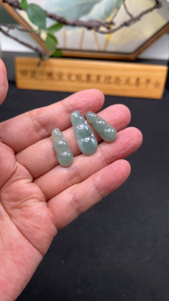 Jadeite Lucky Bean Inlaid Piece Sell as a Lot Total Weight Approx. 5.56g